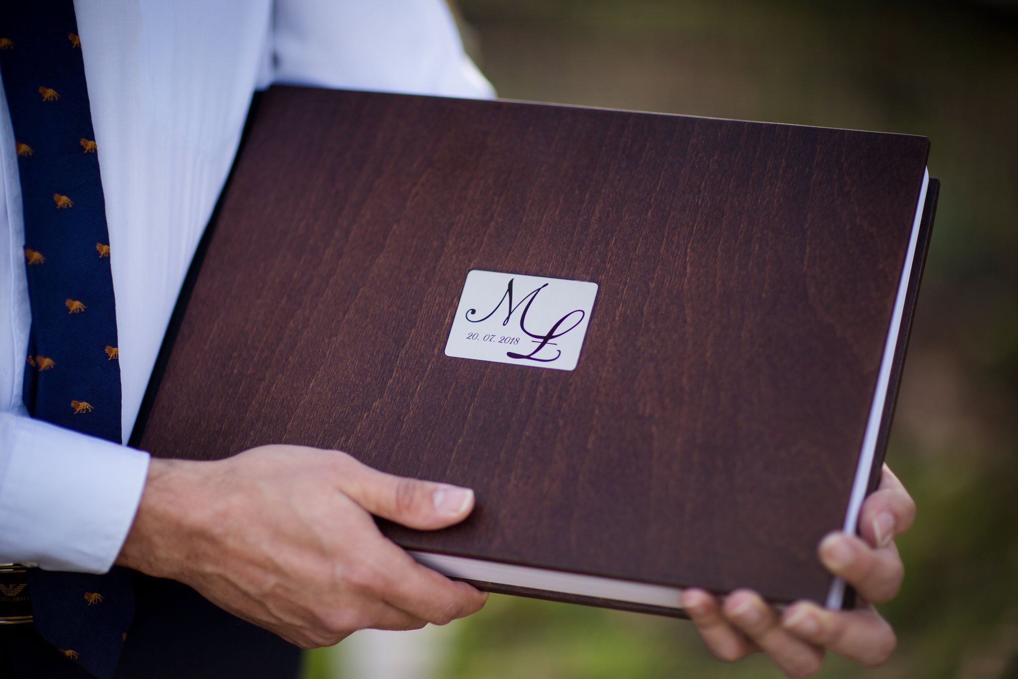 Parom lubiącym niestandardowe rozwiązania proponuję złocone lub srebrzone stemple na okładce fotoalbumu. Stemple przedstawiają ich imiona, bądź inicjały oraz datę uroczystości. Ekskluzywnym sposobem na personalizacje jest również nadruk UV. Jego wypukłe litery są świetne w dotyku i wspaniałe dla oka, dostępne w czerni, bieli oraz brązie. Skromniejszym rozwiązaniem są grawery laserowe i inicjały na metalu transferowym. W swojej ofercie posiadam również złocenia boków fotoalbumów oraz unikalne dedykacje, wkładane w jednej rozkładówkę.
