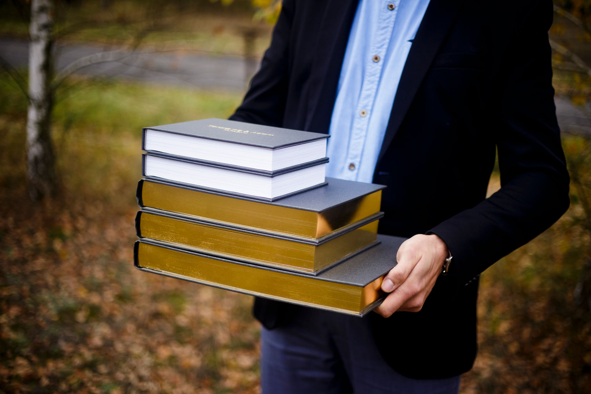 Dla wymagających Par, pragnących cieszyć się swoimi zdjęciami z najbliższymi, mamy w ofercie bogate komplety fotoalbumów. Para wówczas zamawia 5 fotoalbumów. Pierwszy i największy jest dla nich, dwa mniejsze dla rodziców, dwa najmniejsze dla światków/rodzeństwa. Jest to doskonała formą podziękowań dla najbliższych oraz niesamowita pamiątka dla całej rodziny.