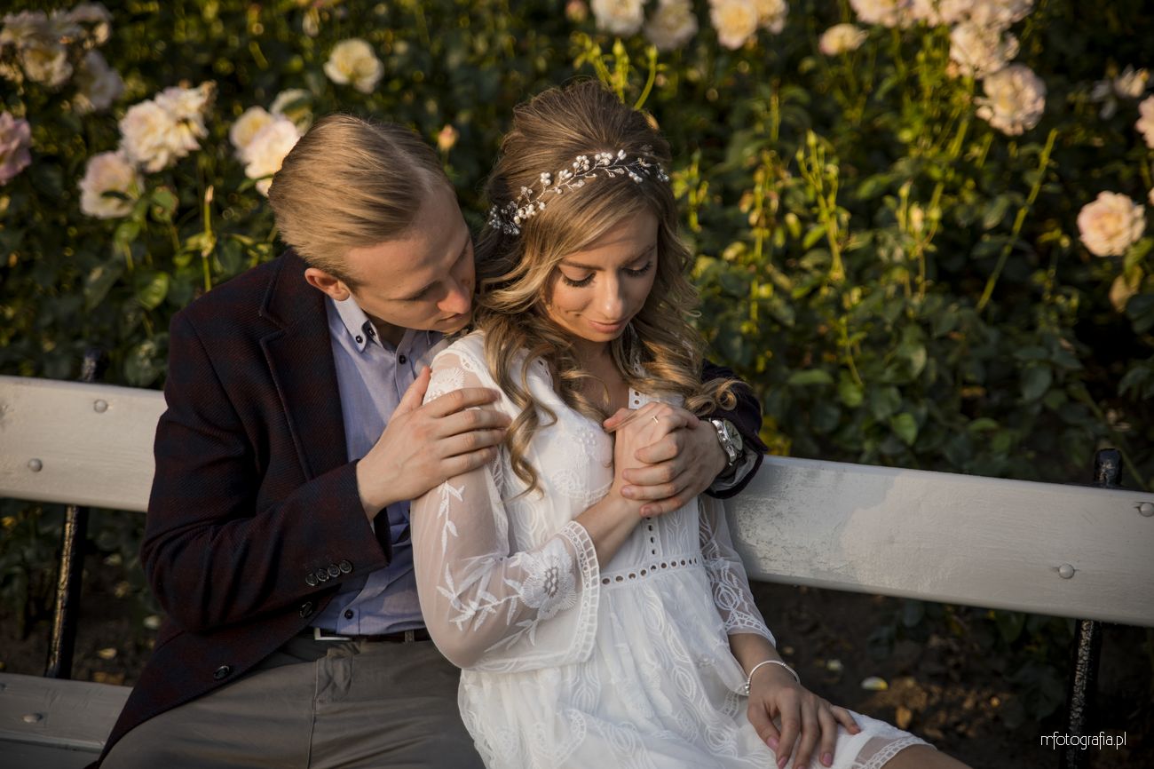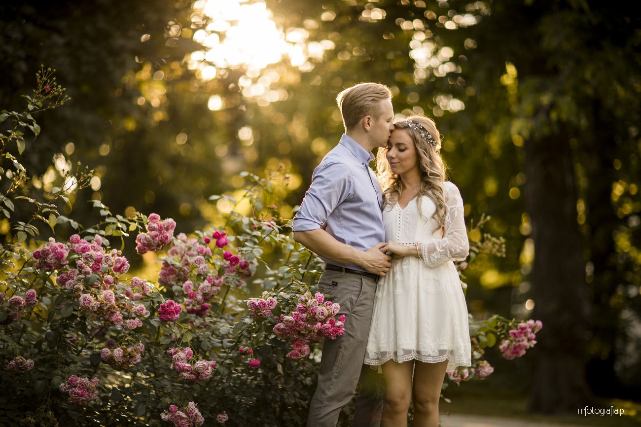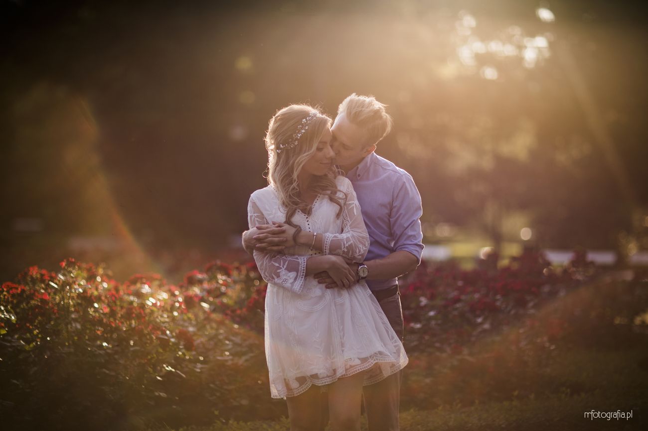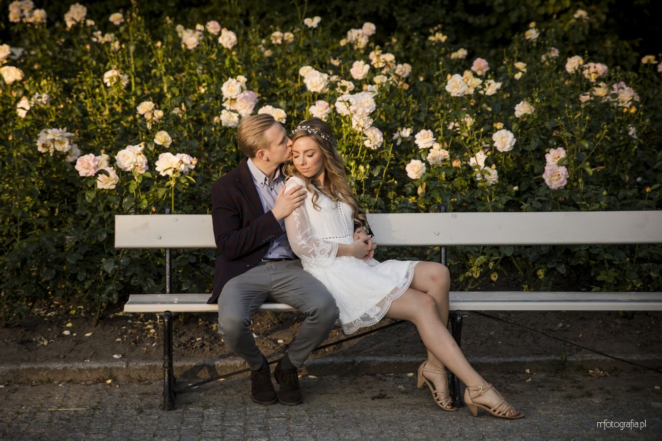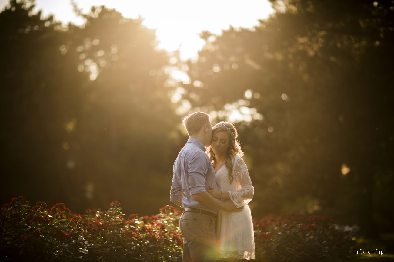 Park Ujazdowski pod koniec lipca oczarowuje wieloma kwitnącymi krzewami i rodzinną atmosferą. Odpoczywający wkoło ludzie, ukradkiem uśmiechali się do nas i obserwowali progres w sesji zdjęciowej, która okazała się być ekspresowa (1,5h). Moją parę na szczęście nie krępowała obecność innych osób. Skutecznie skupili się na sobie i miło upływającym czasie. Momentami udało mi się mieć wrażenie, że jestem tylko dodatkiem do wspólnie spędzonych ostatnich chwil narzeczeństwa. Bingo, bo właśnie o to chodzi w mojej pracy 🙂 Wtedy chwytam naturalność i prawdziwe przyciąganie.