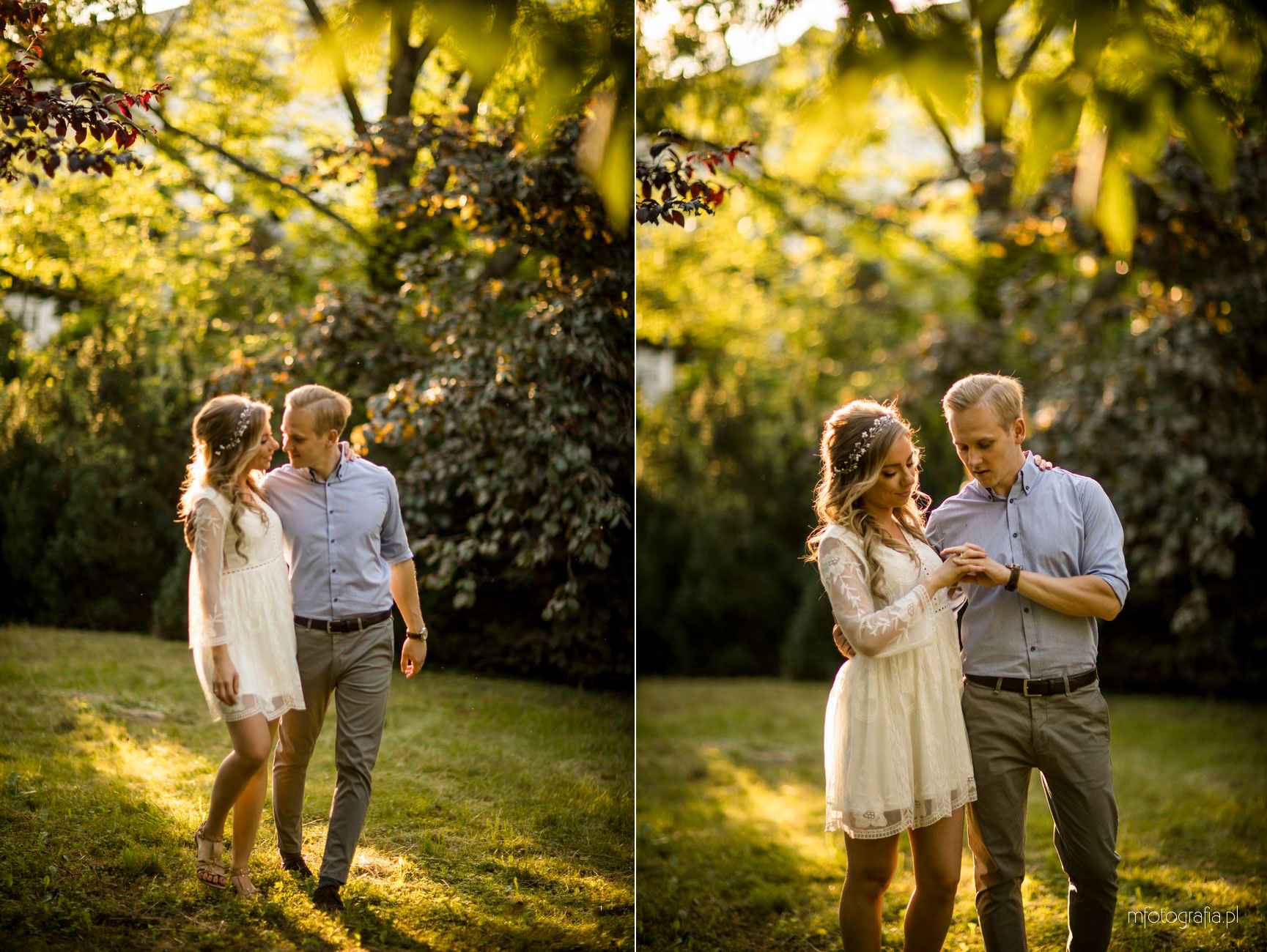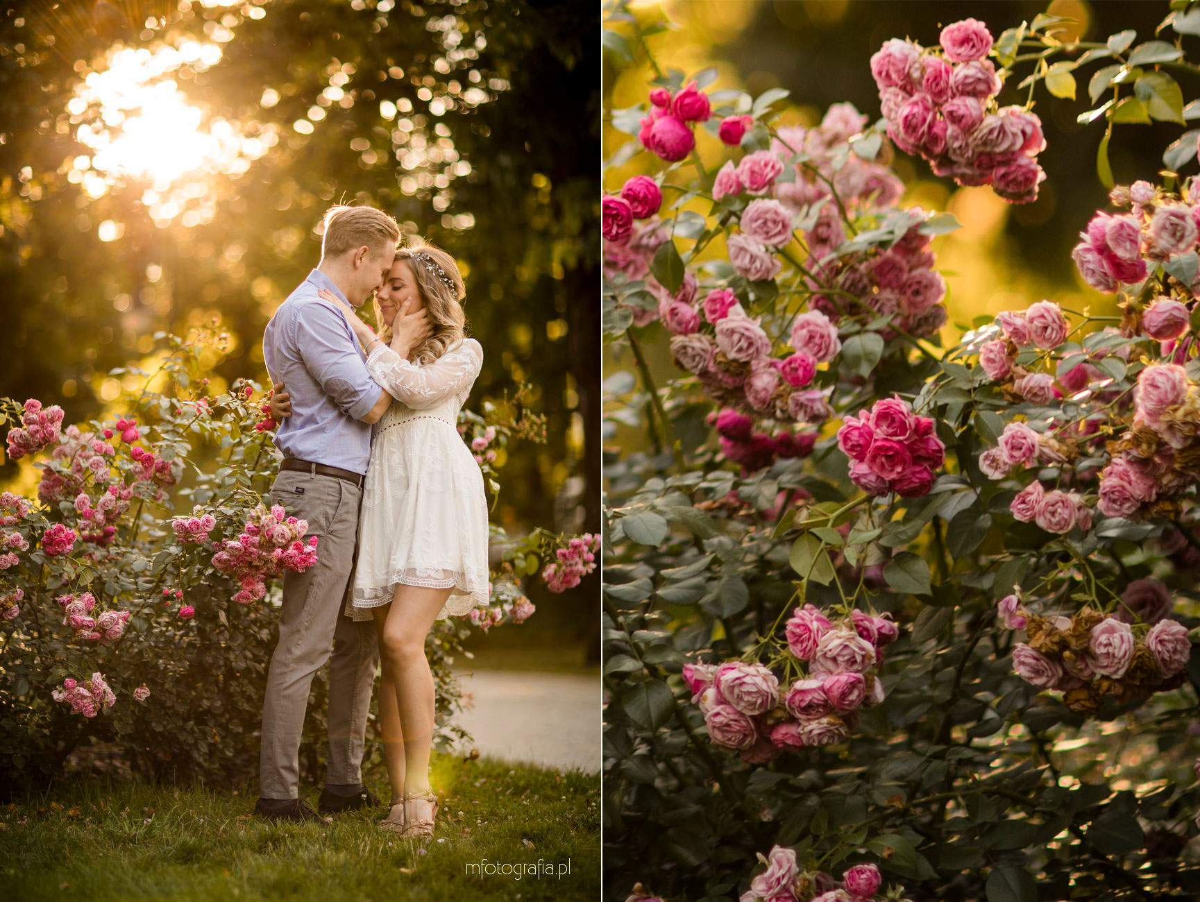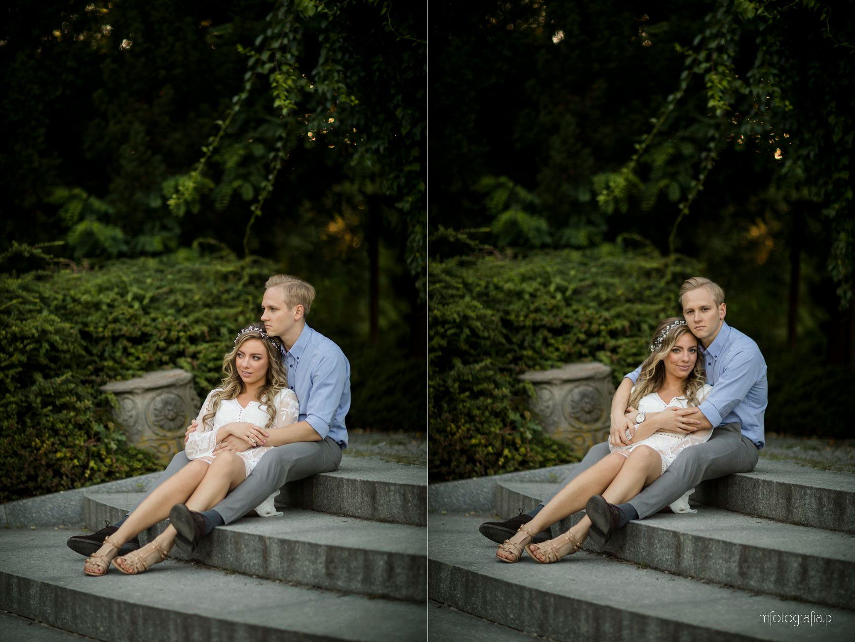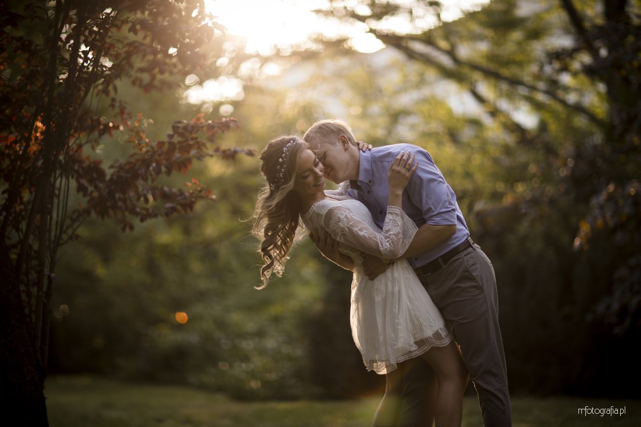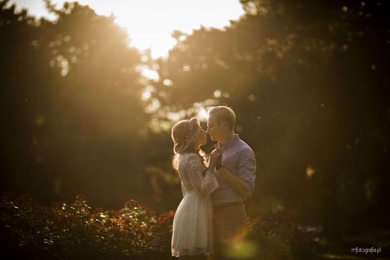Park Ujazdowski pod koniec lipca oczarowuje wieloma kwitnącymi krzewami i rodzinną atmosferą. Odpoczywający wkoło ludzie, ukradkiem uśmiechali się do nas i obserwowali progres w sesji zdjęciowej, która okazała się być ekspresowa (1,5h). Moją parę na szczęście nie krępowała obecność innych osób. Skutecznie skupili się na sobie i miło upływającym czasie. Momentami udało mi się mieć wrażenie, że jestem tylko dodatkiem do wspólnie spędzonych ostatnich chwil narzeczeństwa. Bingo, bo właśnie o to chodzi w mojej pracy 🙂 Wtedy chwytam naturalność i prawdziwe przyciąganie.