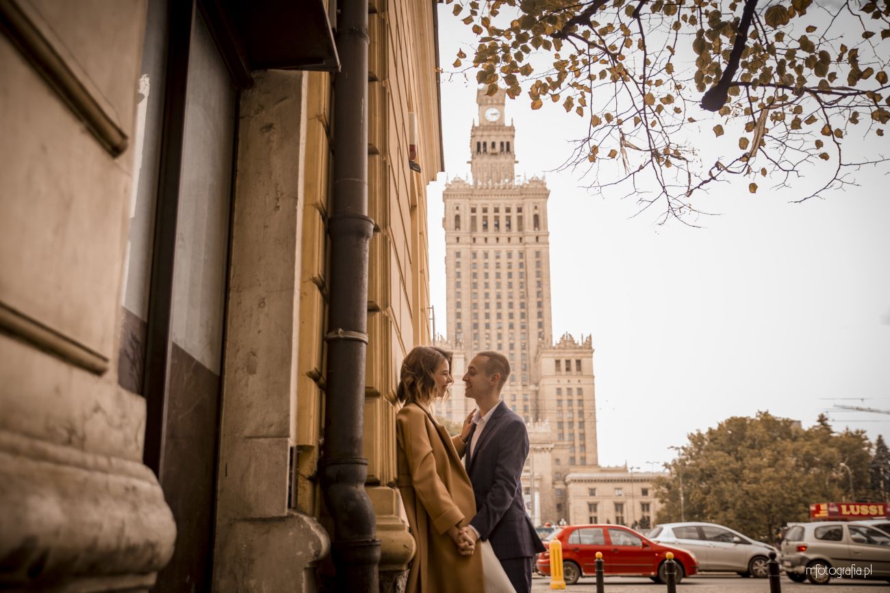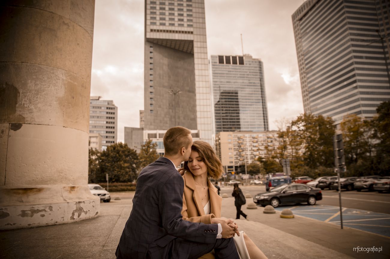 Nowoczesna sesja narzeczeńska w Centrum Warszawy
