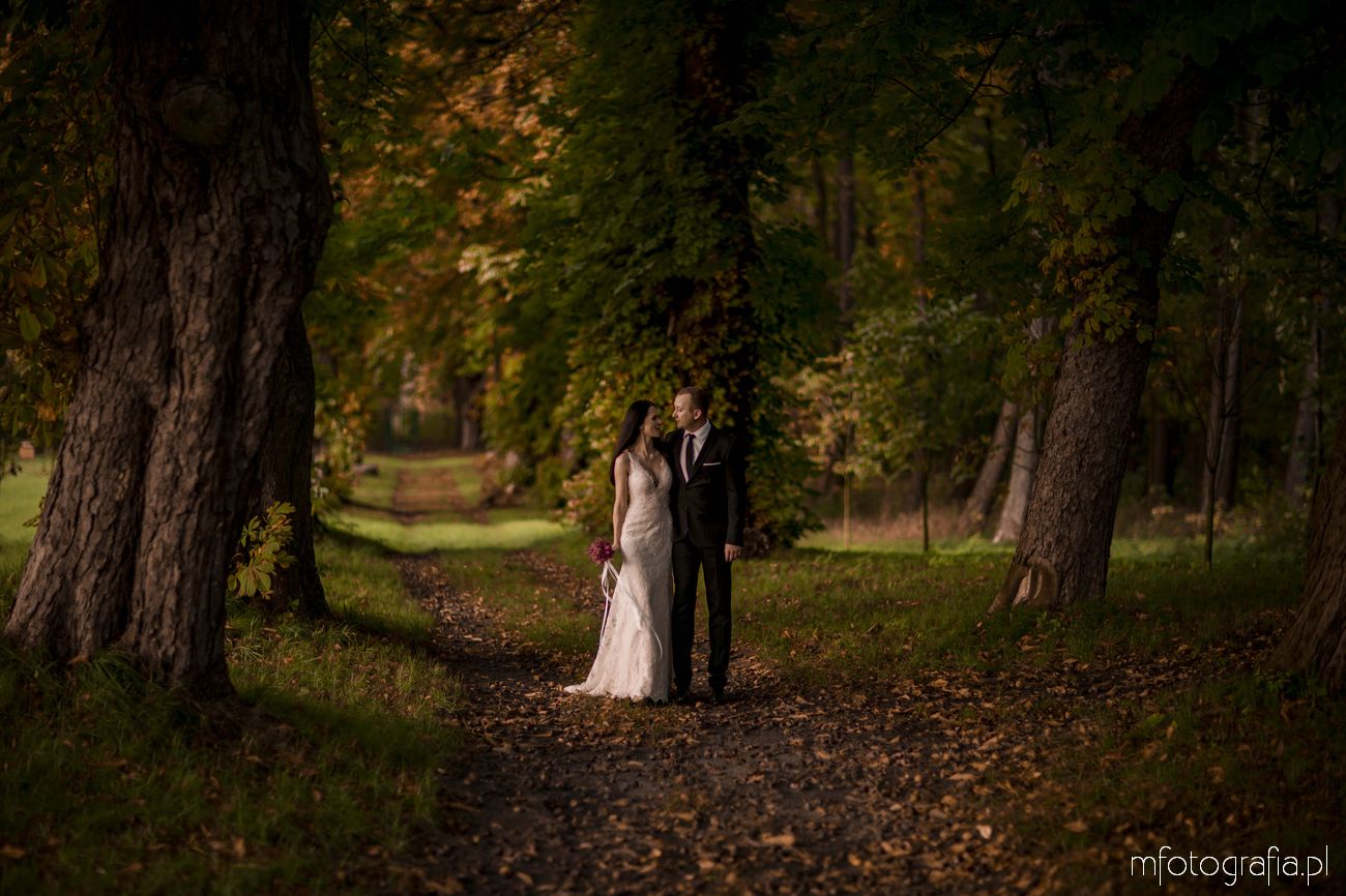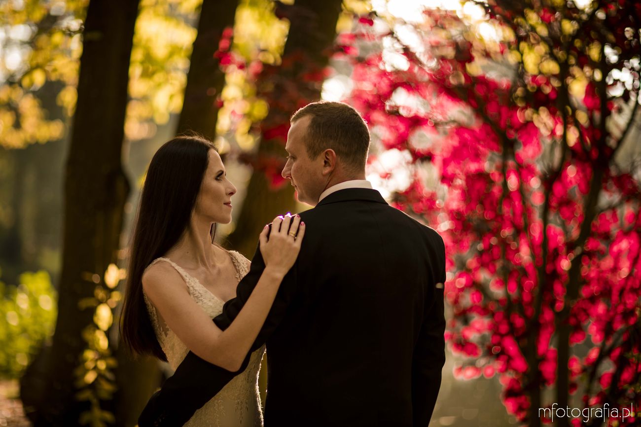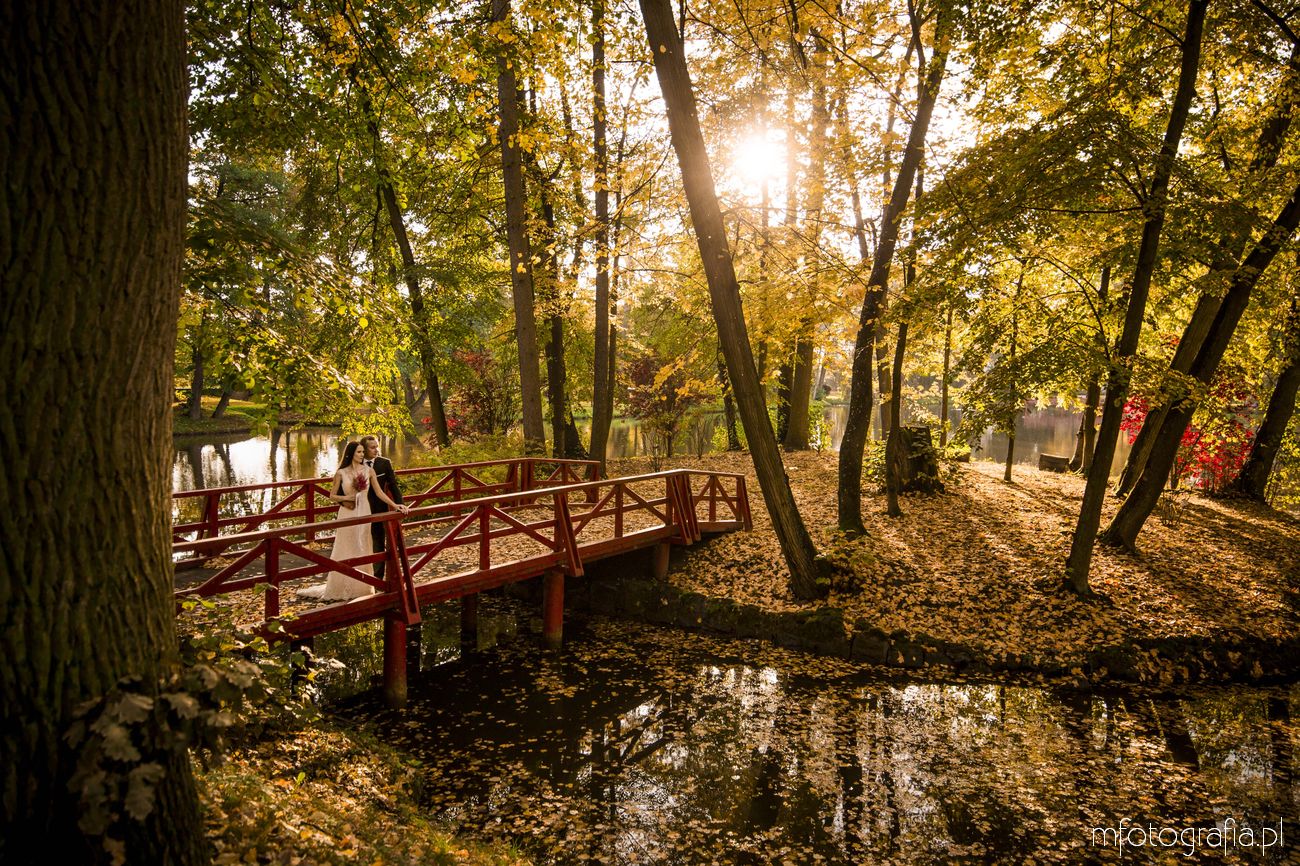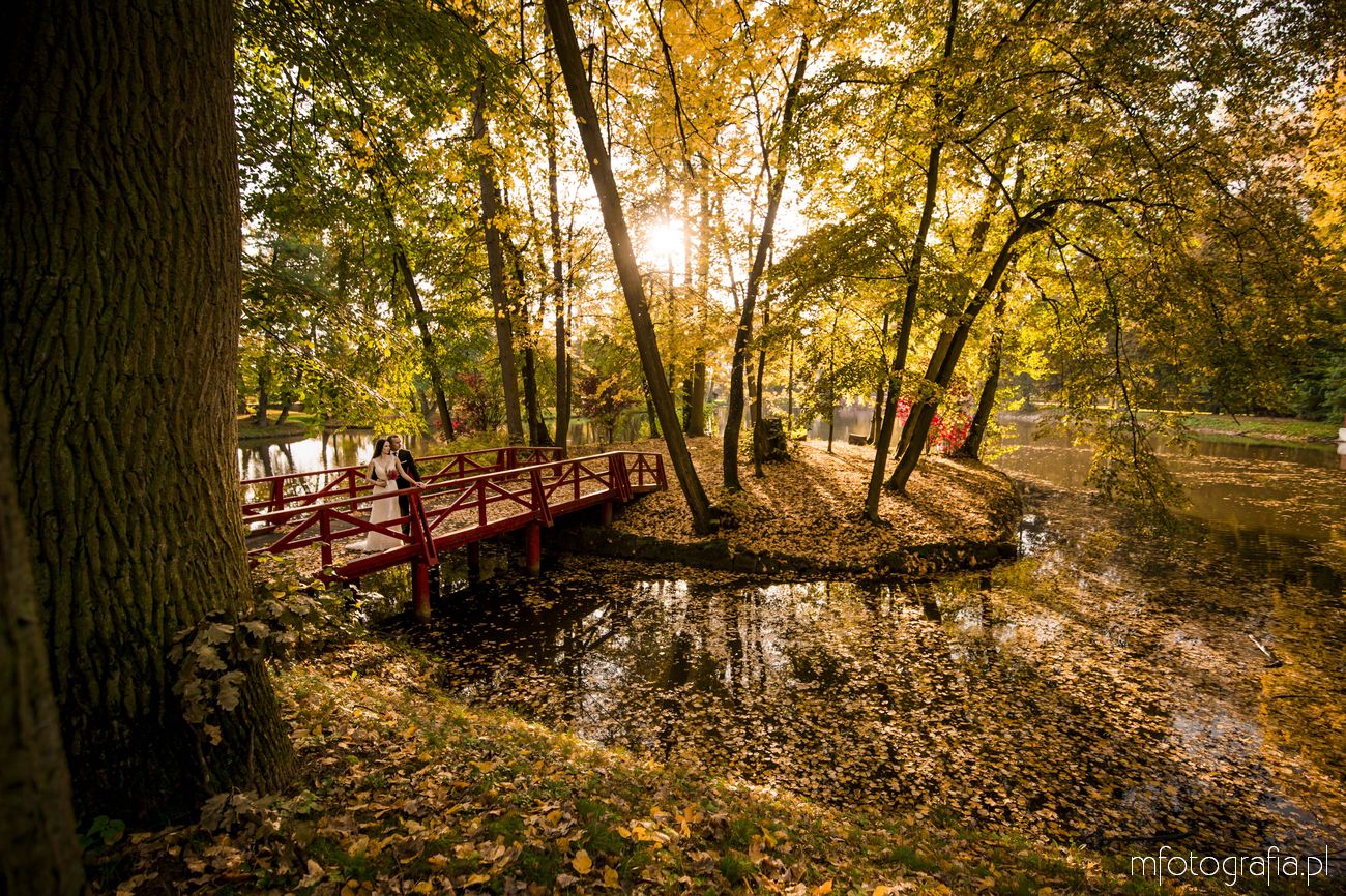 Pragnę przedstawić wszystkim odwiedzającym moją stronę jesienną poślubną sesję zdjęciową Pauliny i Sławka, która odbyła się w urokliwym ogrodzie Pałacu w Małej Wsi. Pogoda była wymarzona, zaświeciło słońce. Jesień urzekała pełną paletą złoto pomarańczowych barw. Pałac Mała Wieś przywitał nas rozkwieconym ogrodem różanym i parkiem angielskim, który obsypał się wtedy spadającymi kasztanami. Wszędzie pachniało polską złotą jesienią, a promienie zachodzącego słońca pobudziły nasycone kolory. Było naprawdę cudownie! Zapraszam do wpisu!