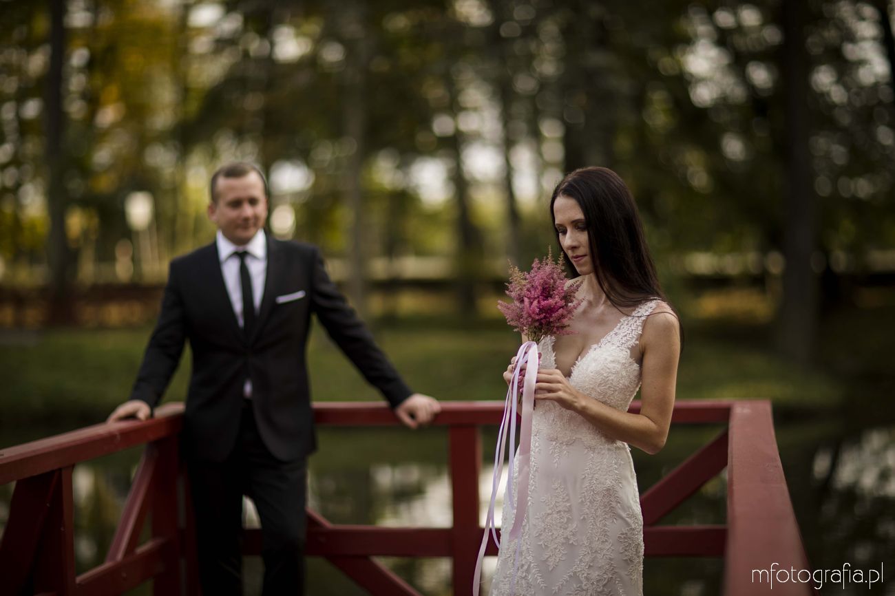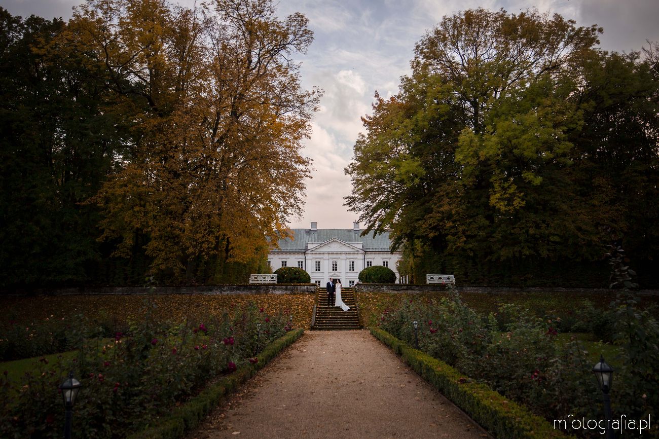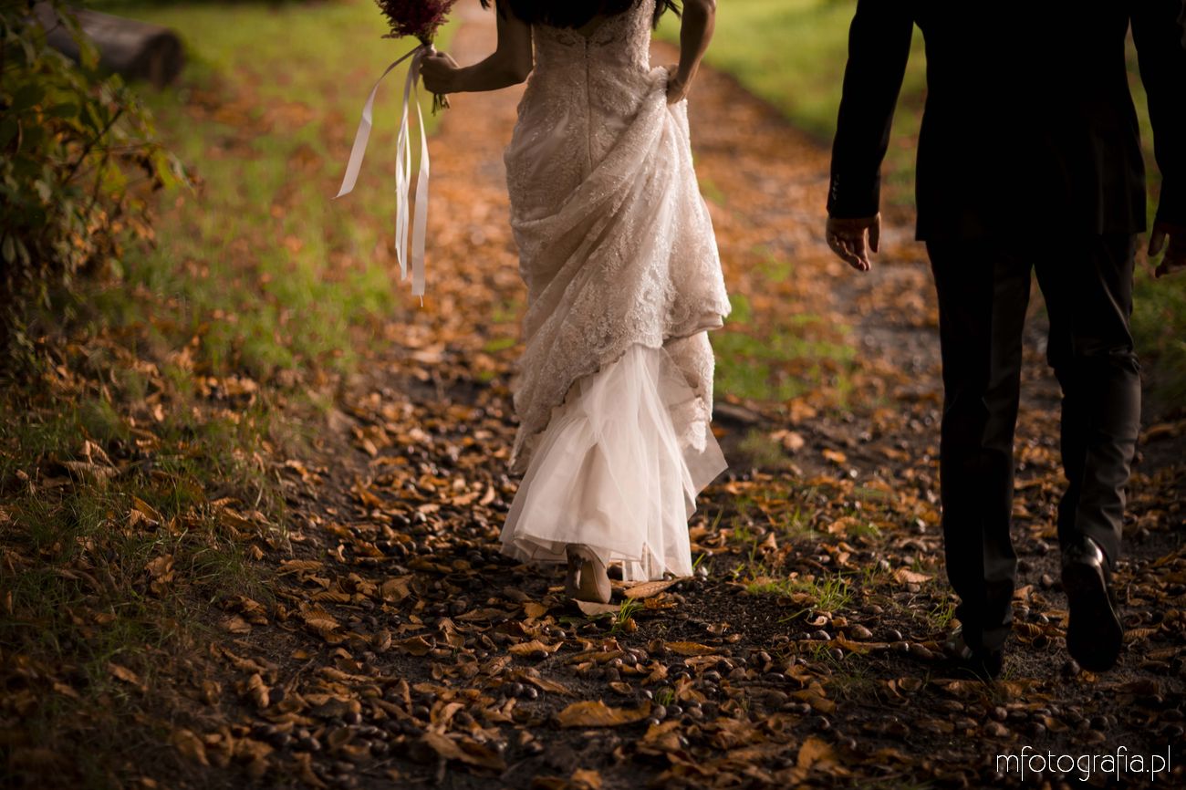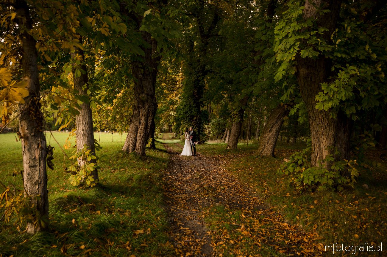 Pragnę przedstawić wszystkim odwiedzającym moją stronę jesienną poślubną sesję zdjęciową Pauliny i Sławka, która odbyła się w urokliwym ogrodzie Pałacu w Małej Wsi. Pogoda była wymarzona, zaświeciło słońce. Jesień urzekała pełną paletą złoto pomarańczowych barw. Pałac Mała Wieś przywitał nas rozkwieconym ogrodem różanym i parkiem angielskim, który obsypał się wtedy spadającymi kasztanami. Wszędzie pachniało polską złotą jesienią, a promienie zachodzącego słońca pobudziły nasycone kolory. Było naprawdę cudownie! Zapraszam do wpisu!