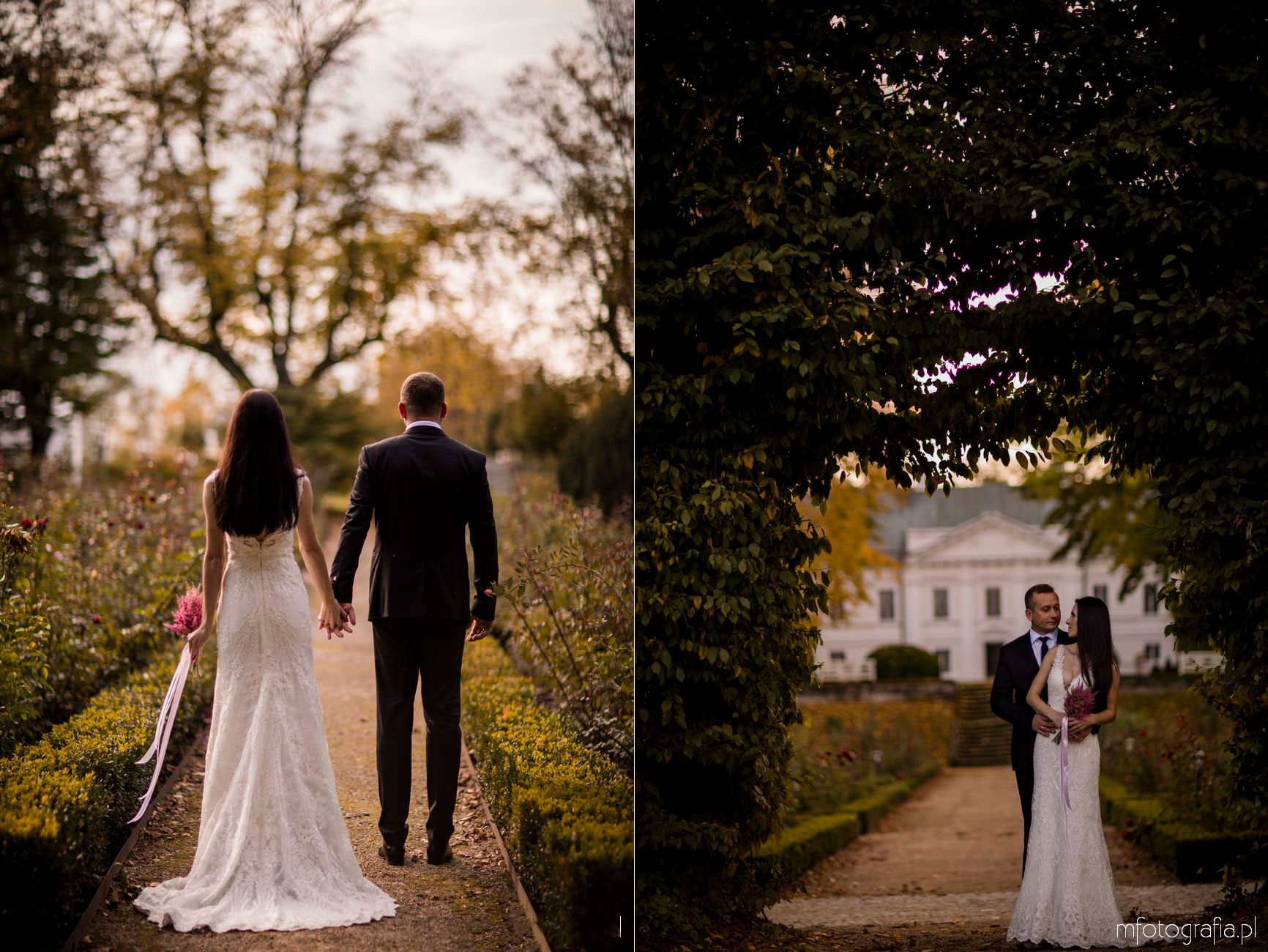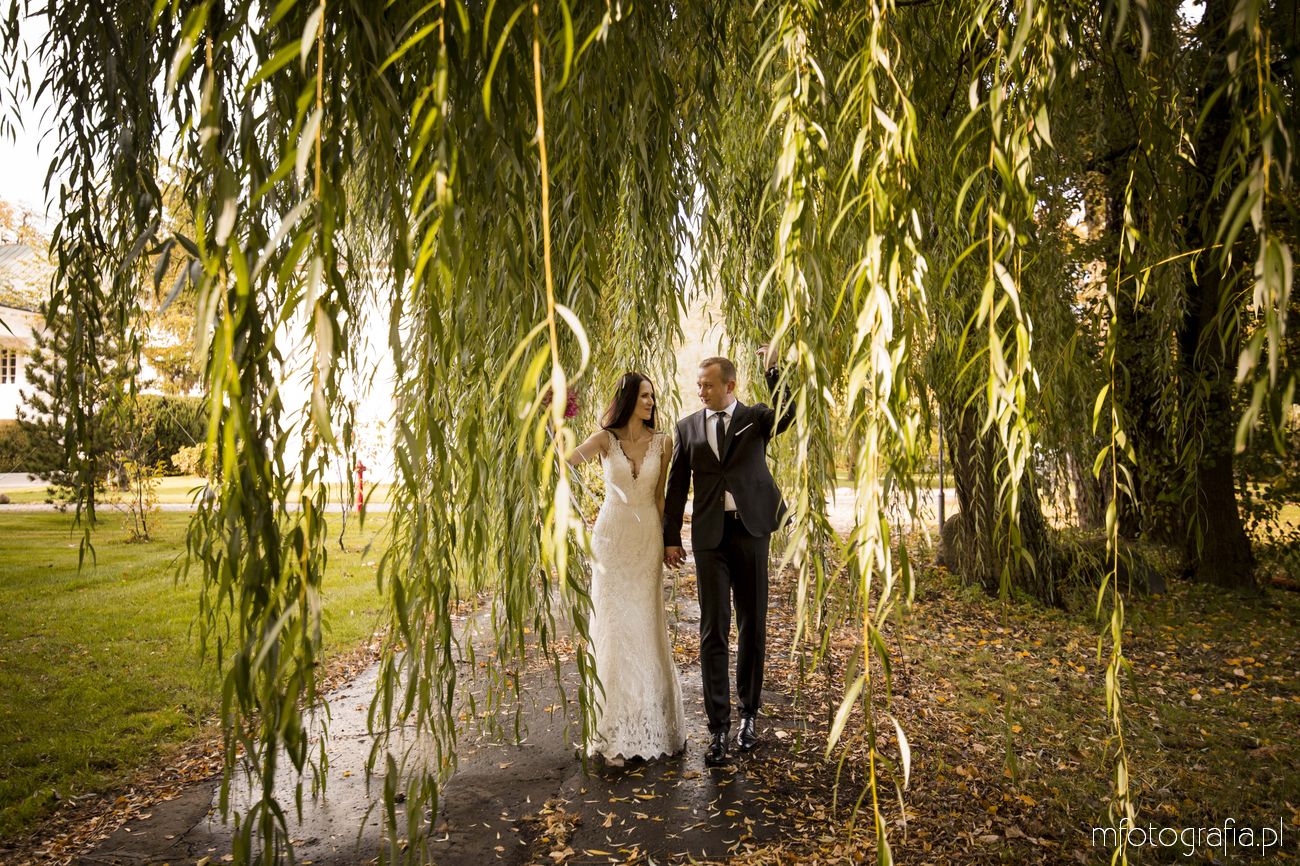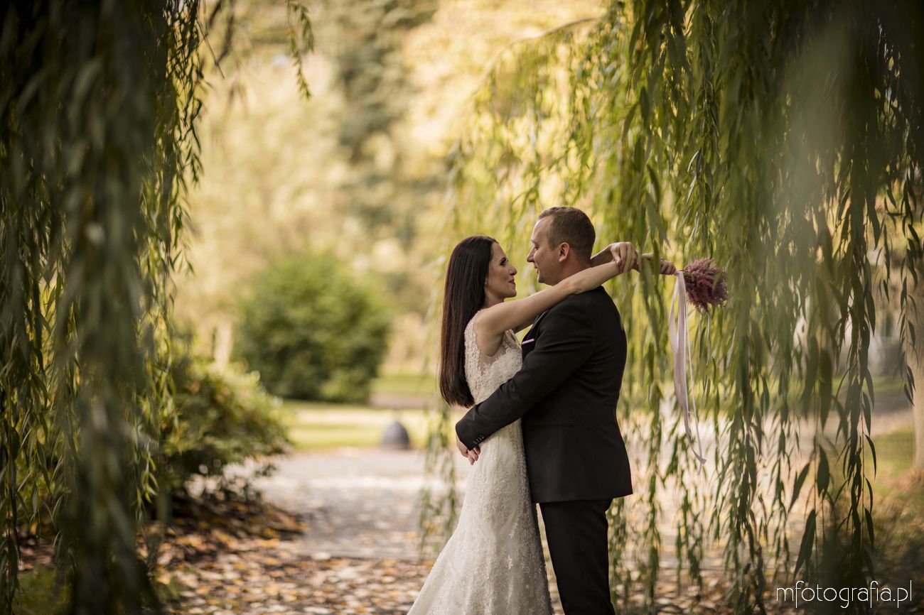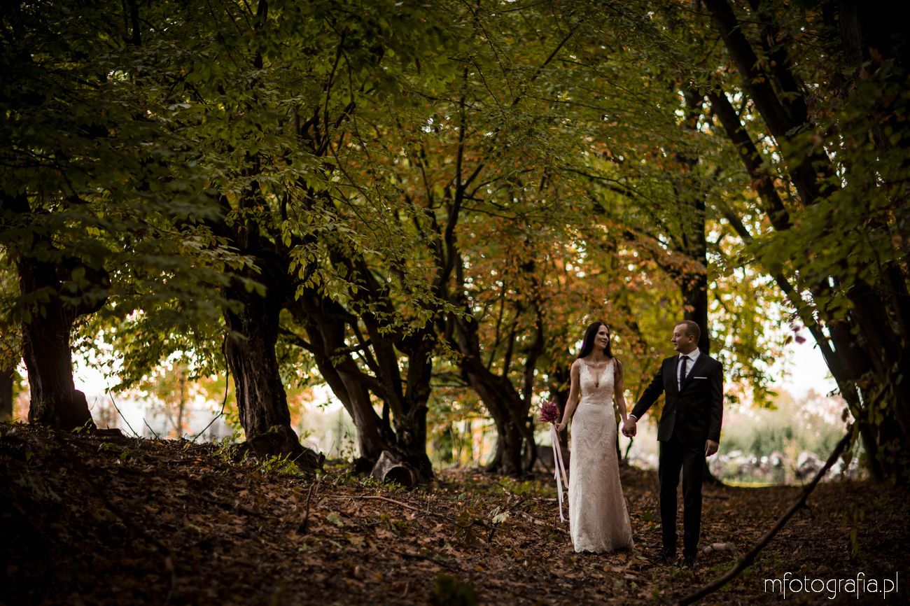 Pragnę przedstawić wszystkim odwiedzającym moją stronę jesienną poślubną sesję zdjęciową Pauliny i Sławka, która odbyła się w urokliwym ogrodzie Pałacu w Małej Wsi. Pogoda była wymarzona, zaświeciło słońce. Jesień urzekała pełną paletą złoto pomarańczowych barw. Pałac Mała Wieś przywitał nas rozkwieconym ogrodem różanym i parkiem angielskim, który obsypał się wtedy spadającymi kasztanami. Wszędzie pachniało polską złotą jesienią, a promienie zachodzącego słońca pobudziły nasycone kolory. Było naprawdę cudownie! Zapraszam do wpisu!