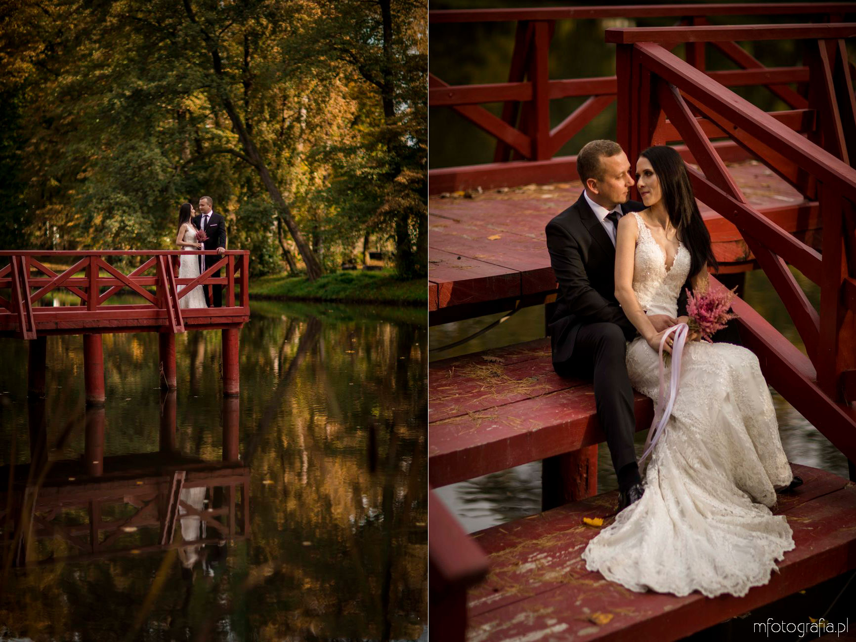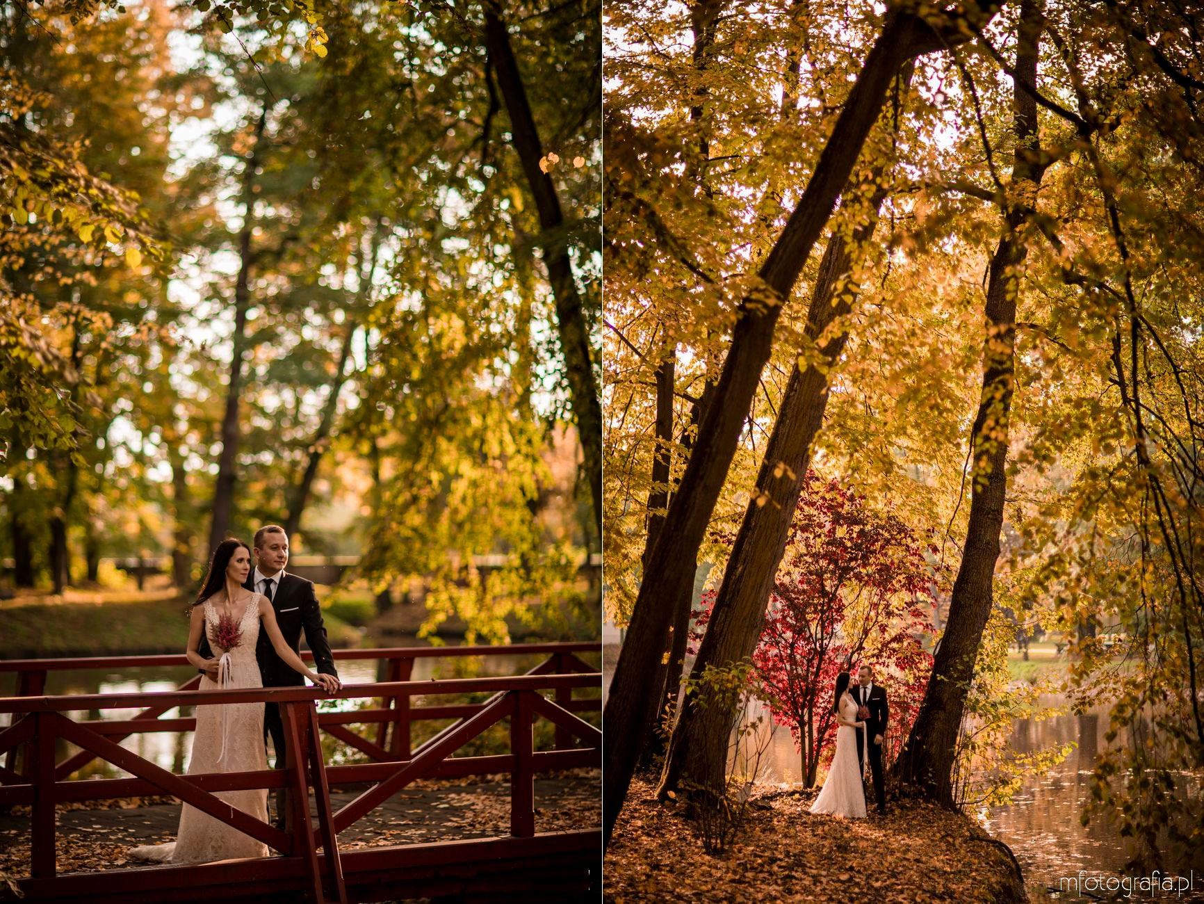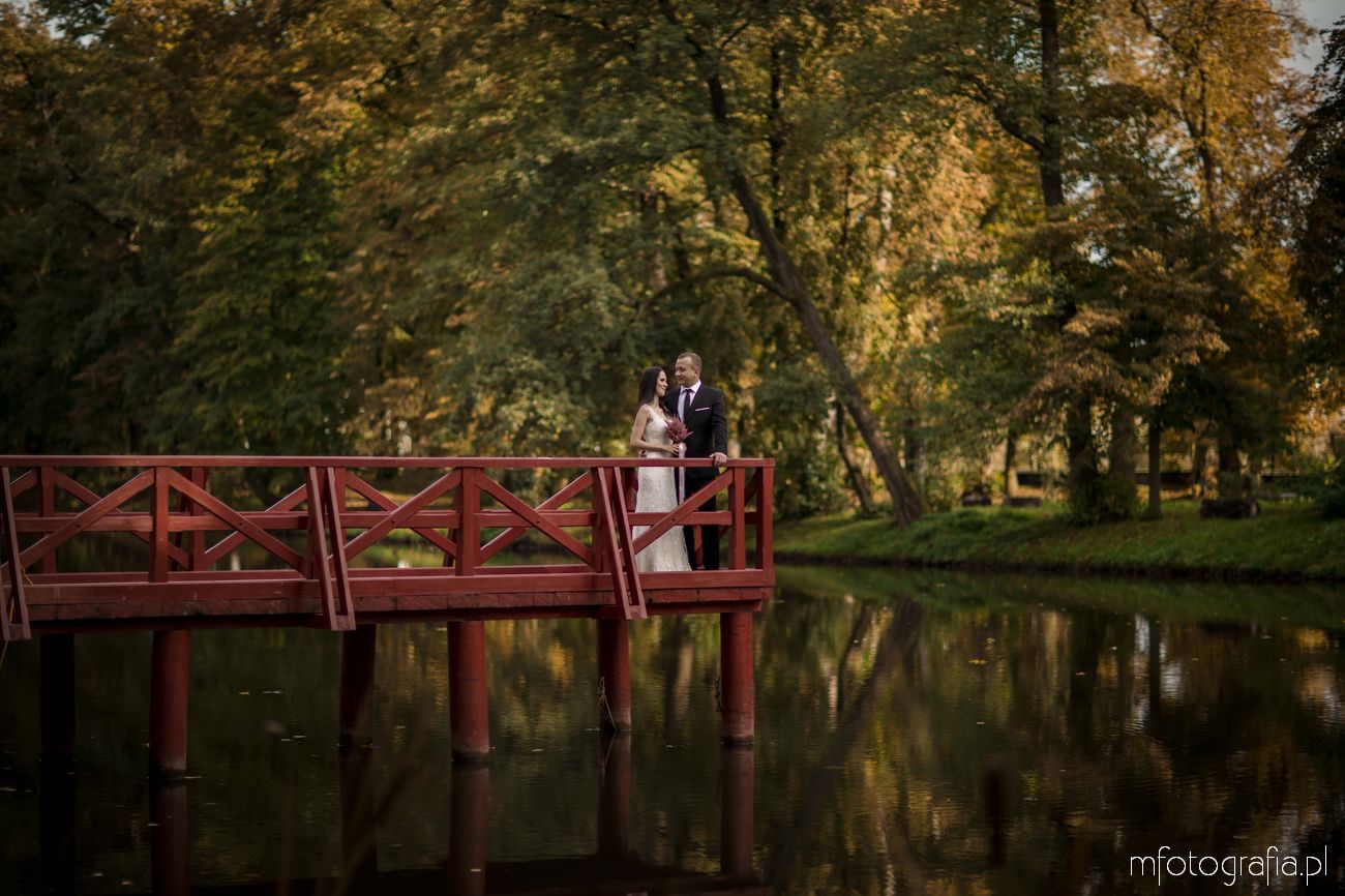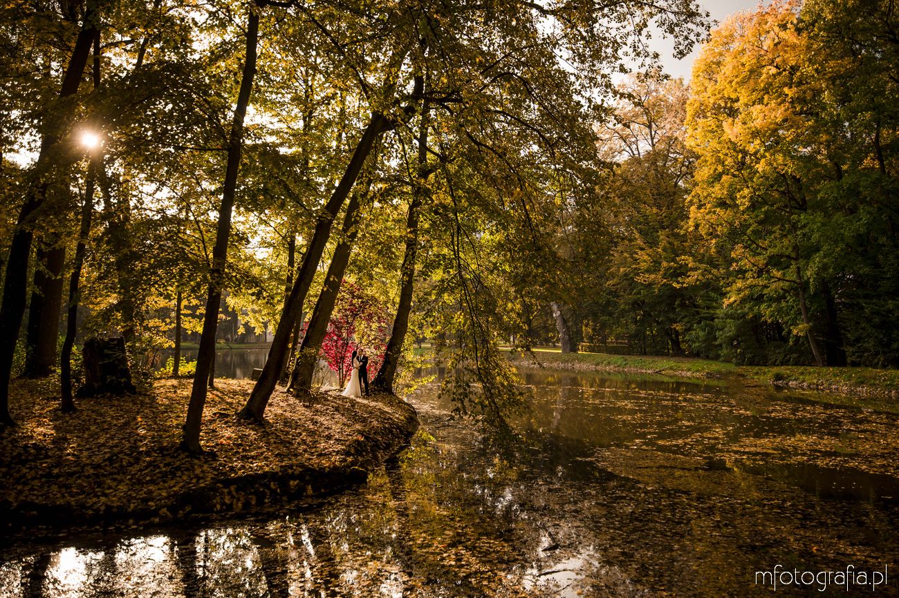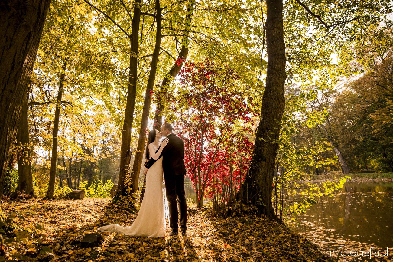 3. Jesienna sesja poślubna w parku angielskim i nad jeziorem w Pałacu w Małej Wsi