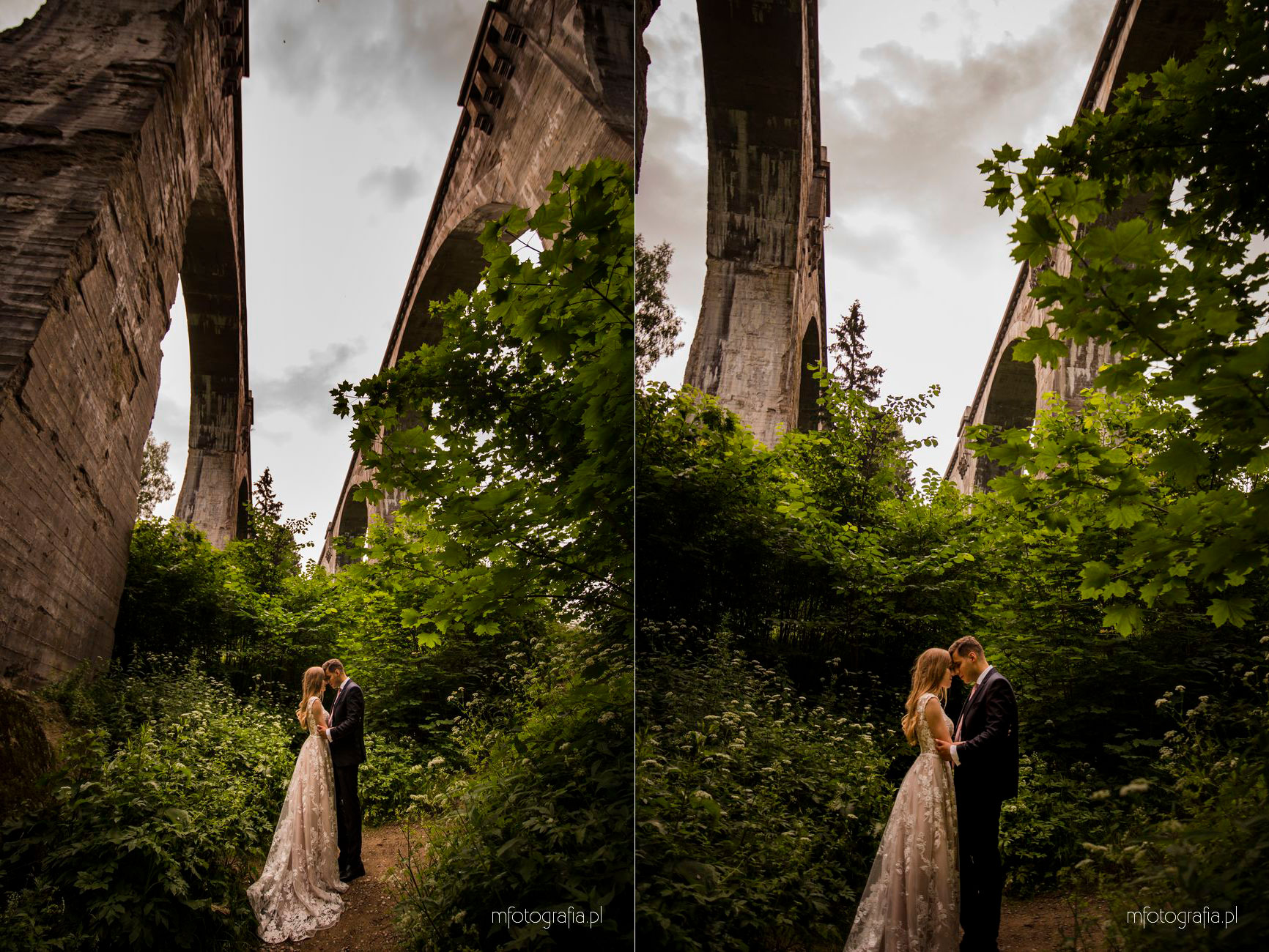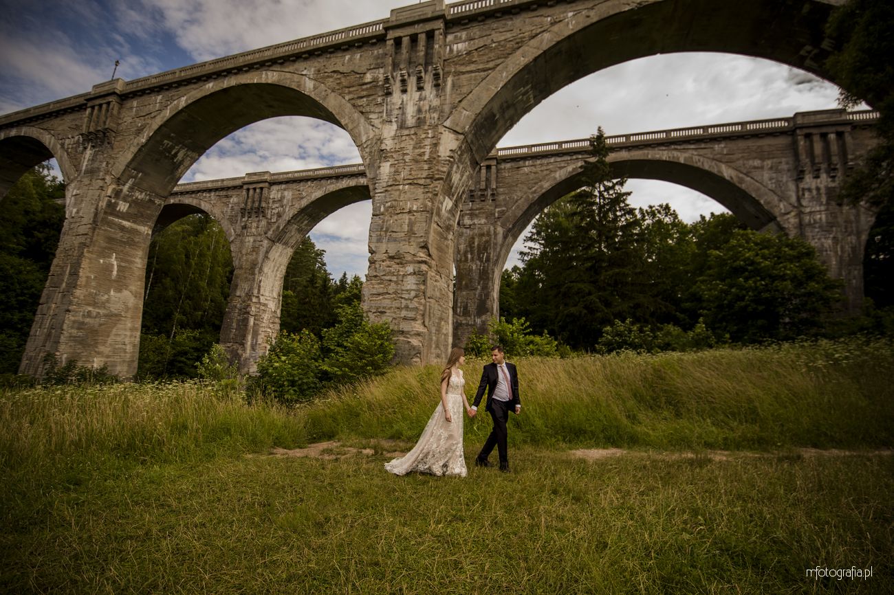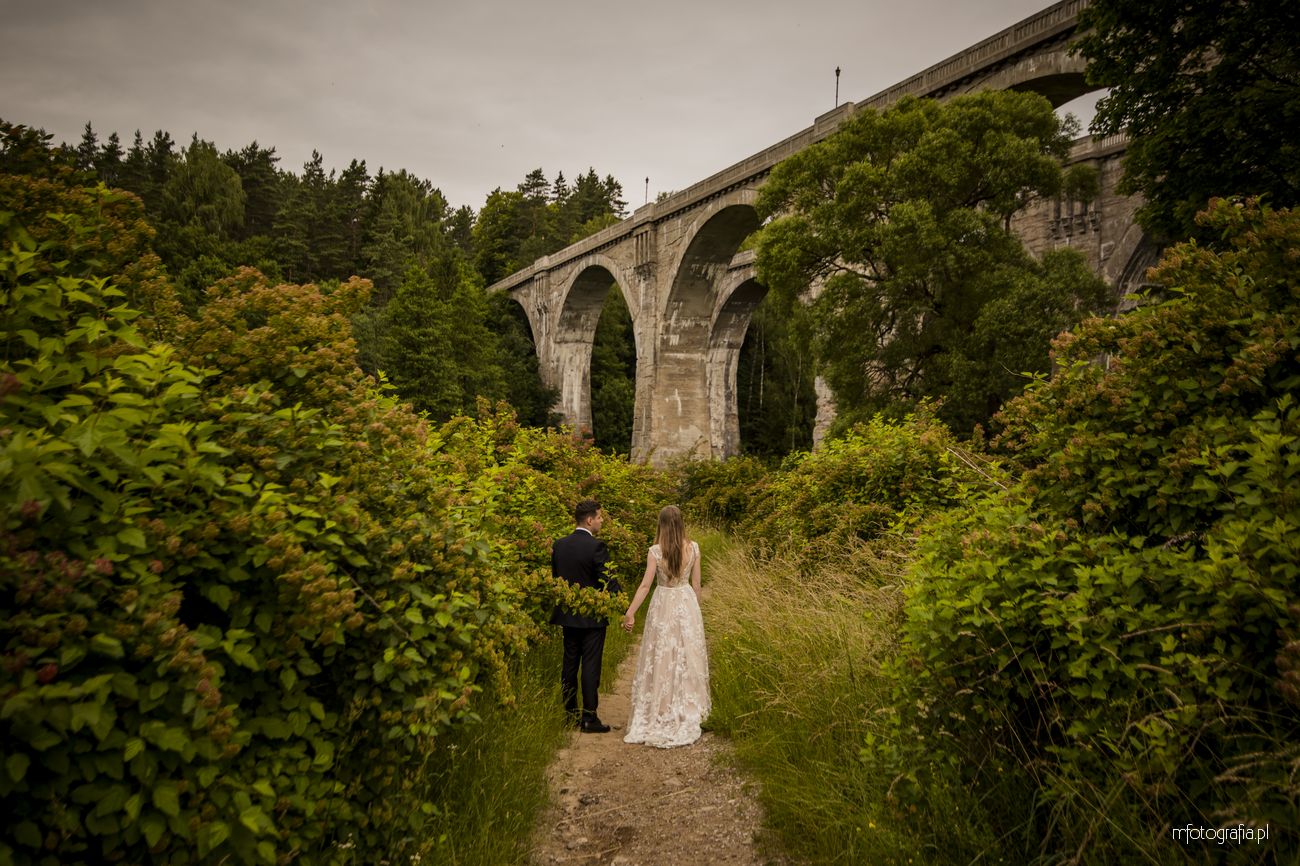 Zacznijmy od początku, a więc od pytania – chcecie sesję poślubna? Oczywiście, że chcieli. Była to świetna okazja do dalszej podróży i po raz kolejny zobaczenia czegoś nowego. Wspólnie zaplanowaliśmy wypad, który co prawda był intensywny ( zrobiliśmy ok 1000 km w 2 dni !!! ), ale wspomnienia z niego będą z nami do końca życia. Pałac w Łężanach oczarował nas swoim cudownym ogrodem, który przypominał raj o zachodzie słońca. Mosty w Stańczykach dla kontrastu były monumentalne i bardzo surowe w swojej formie. Gołdap to stan umysłu i stolica polskiego chillu 😉 Na koniec dla relaksu pospacerowaliśmy po Białostockiej starówce i parku przy Pałacu Branickich. To był cudowny czas! Sami zobaczcie, jakie wspaniałości stamtąd udało mi się przywieźć: