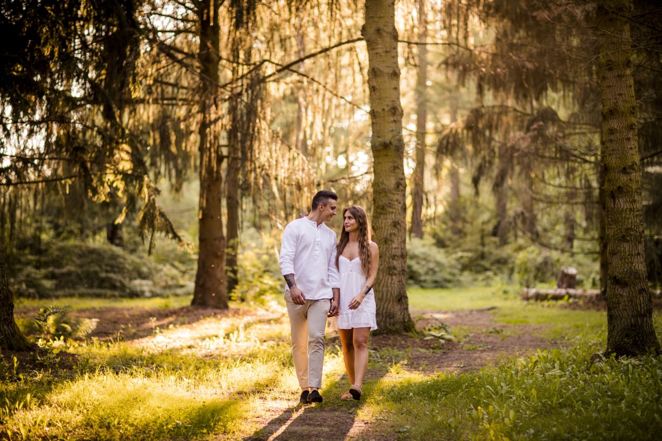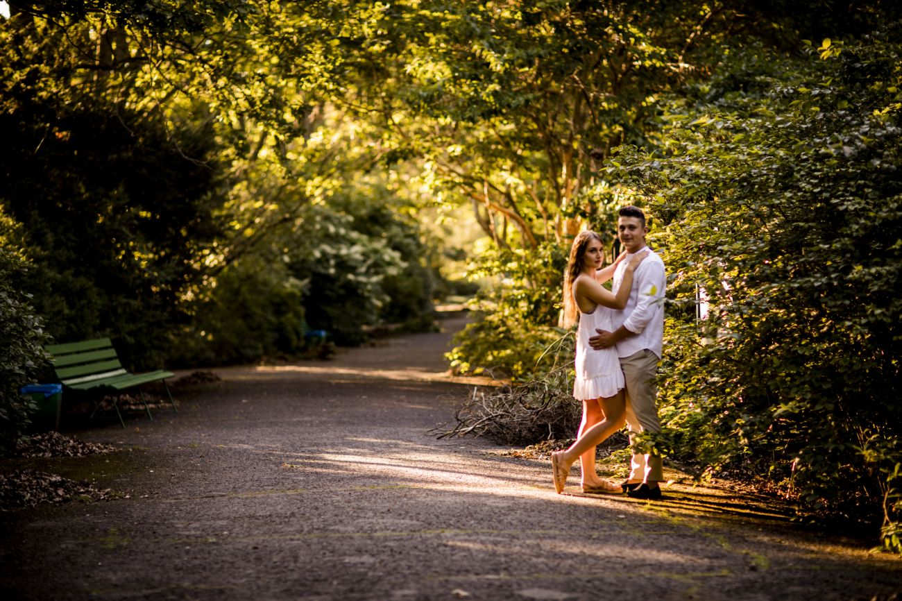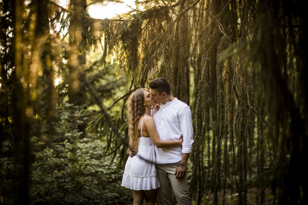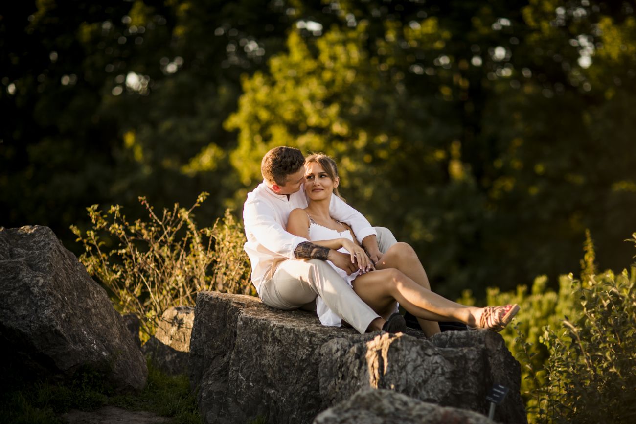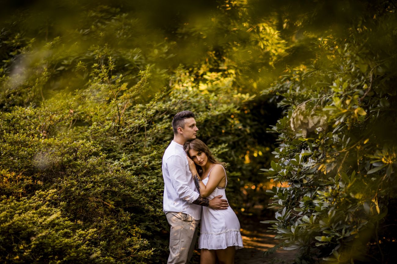 Gabriela i Dominik pragnęli mieć spokojną sesję na łonie natury. Wybrali Ogród Botaniczny w Powsinie, dzięki czemu, o tej porze roku zdjęcia nabrały blasku i różnobarwnych planów. Zachodzące słoneczko pięknie oświetliło nam tło i ociepliło klimat zdjęć. Moim zdaniem sesja wyszła bardzo naturalnie i eterycznie.