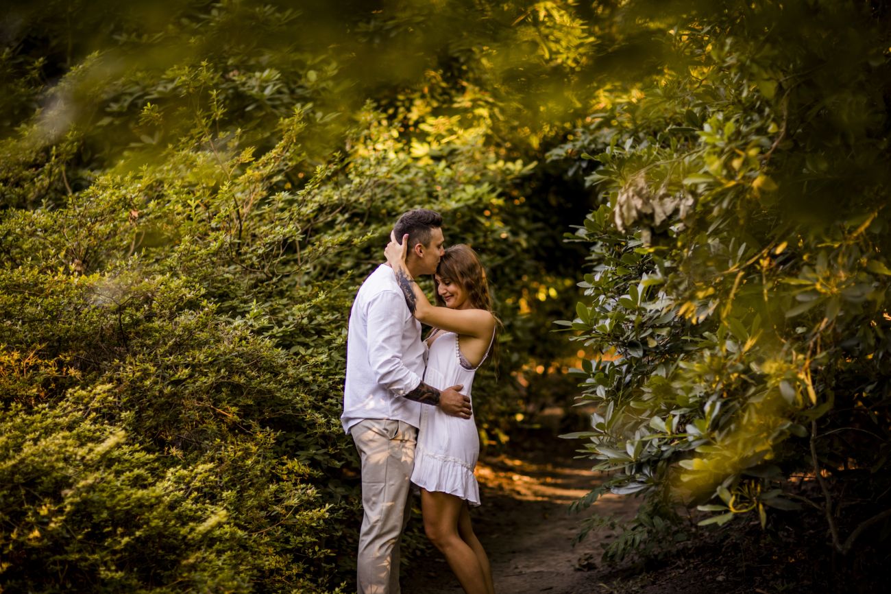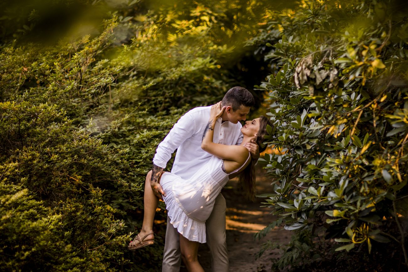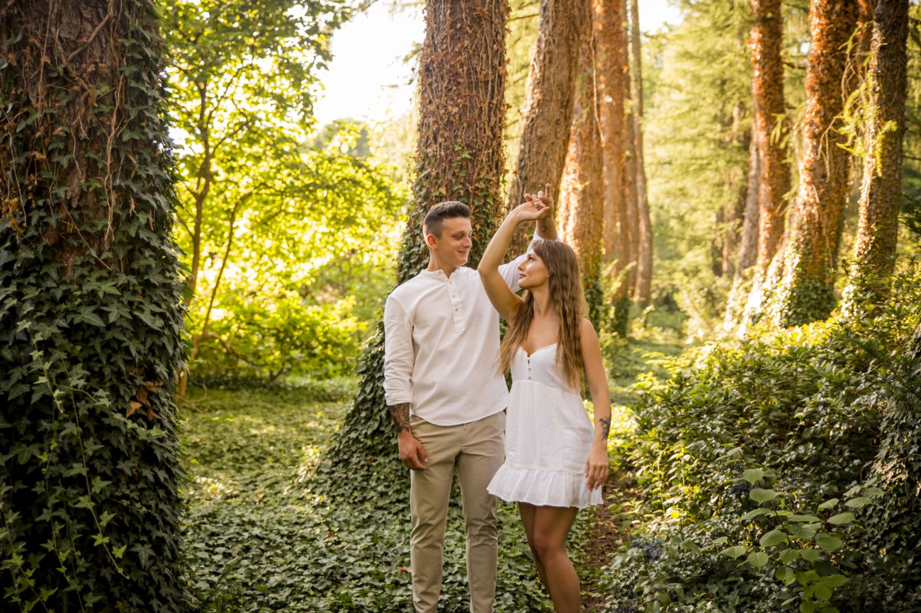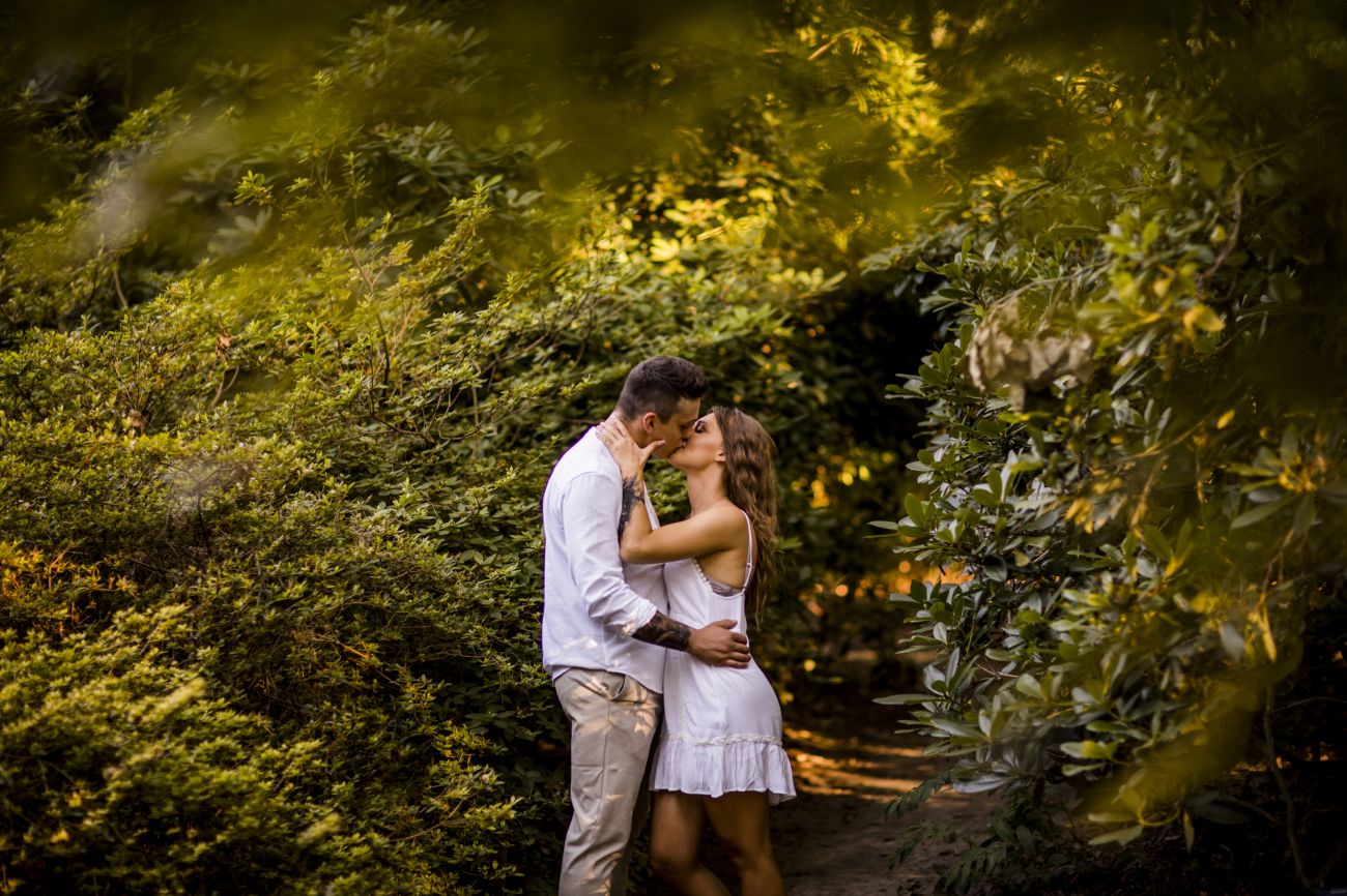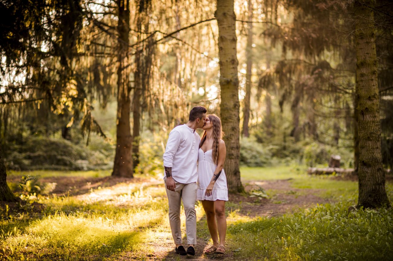 Gabriela i Dominik pragnęli mieć spokojną sesję na łonie natury. Wybrali Ogród Botaniczny w Powsinie, dzięki czemu, o tej porze roku zdjęcia nabrały blasku i różnobarwnych planów. Zachodzące słoneczko pięknie oświetliło nam tło i ociepliło klimat zdjęć. Moim zdaniem sesja wyszła bardzo naturalnie i eterycznie.
