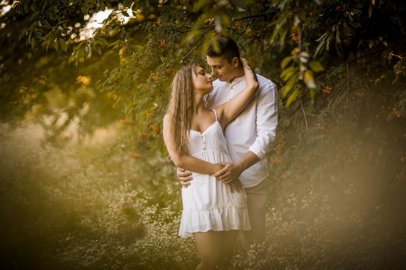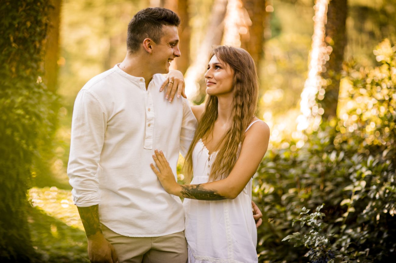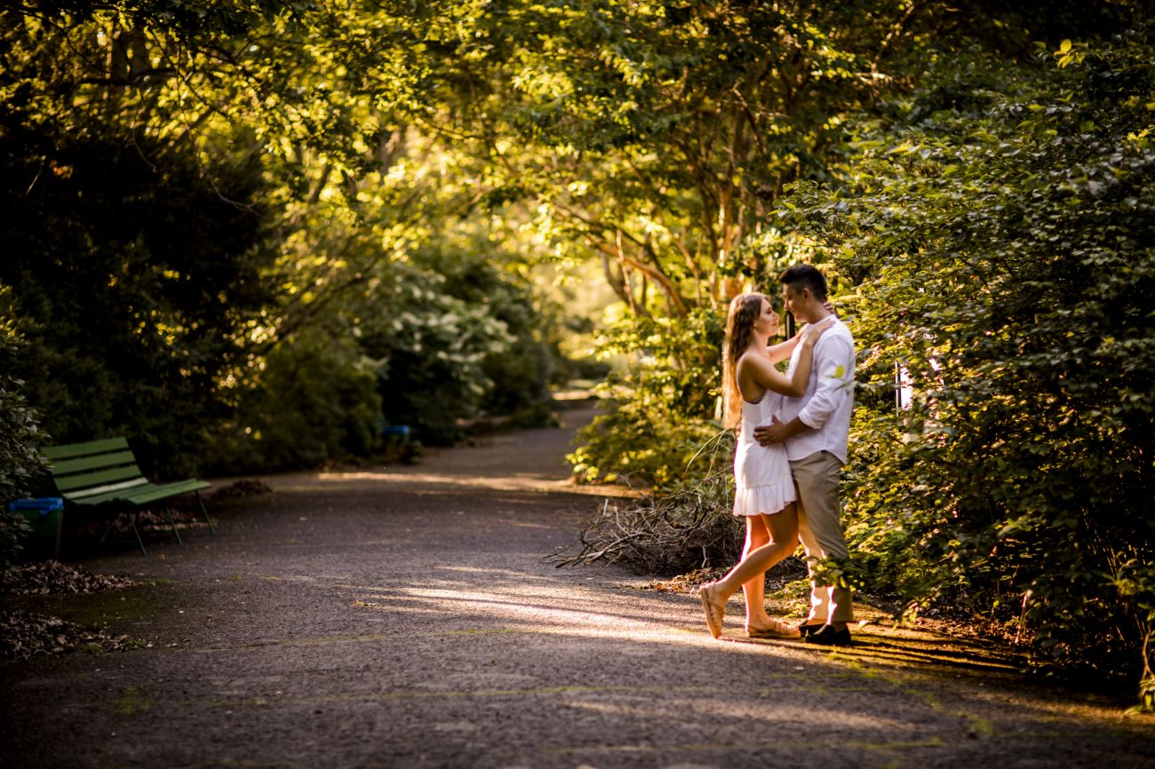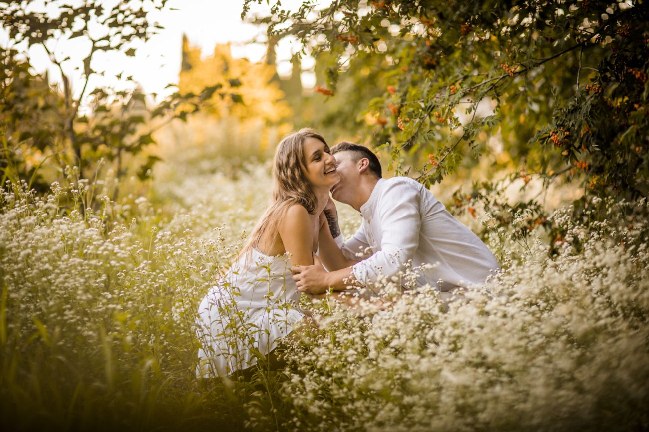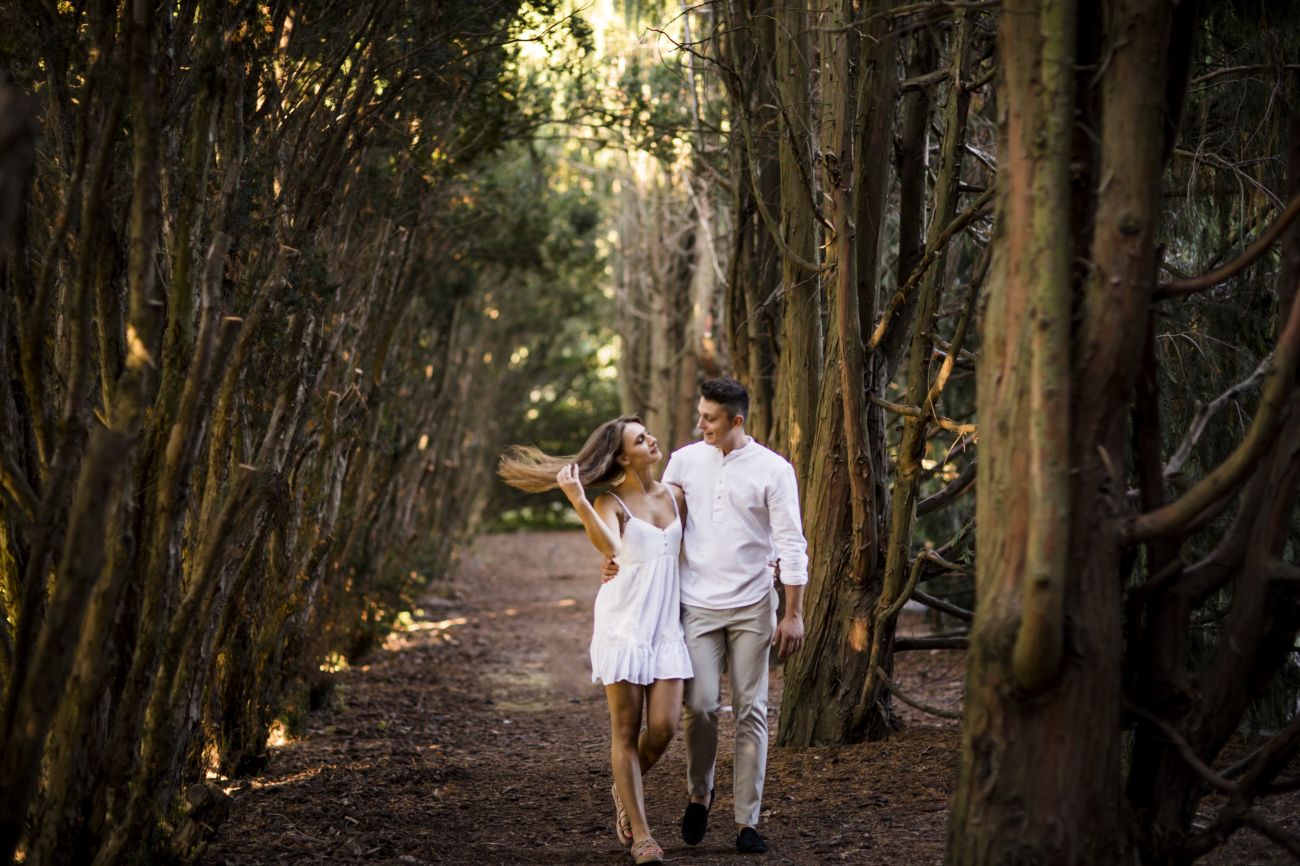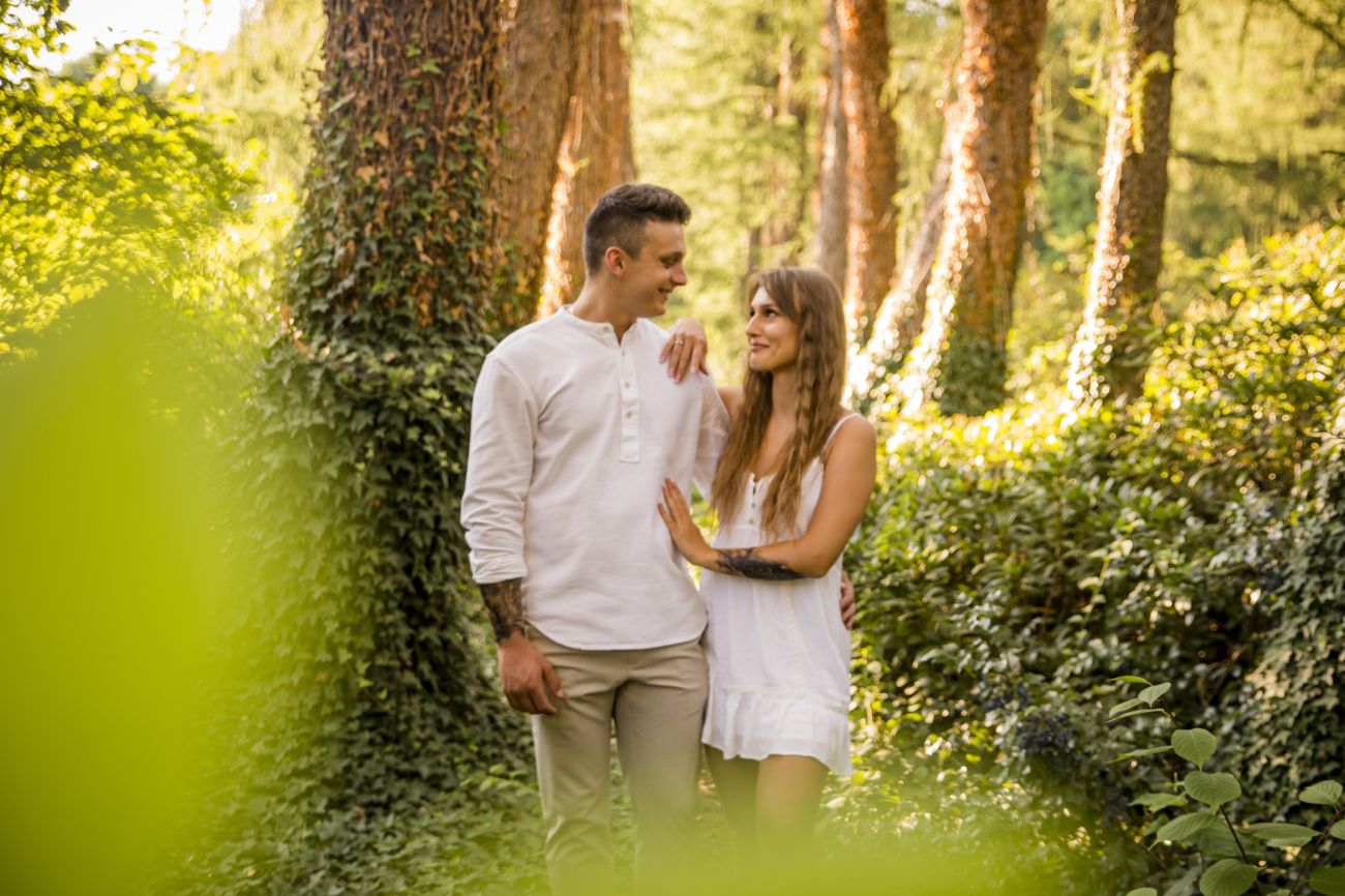 Gabriela i Dominik pragnęli mieć spokojną sesję na łonie natury. Wybrali Ogród Botaniczny w Powsinie, dzięki czemu, o tej porze roku zdjęcia nabrały blasku i różnobarwnych planów. Zachodzące słoneczko pięknie oświetliło nam tło i ociepliło klimat zdjęć. Moim zdaniem sesja wyszła bardzo naturalnie i eterycznie.