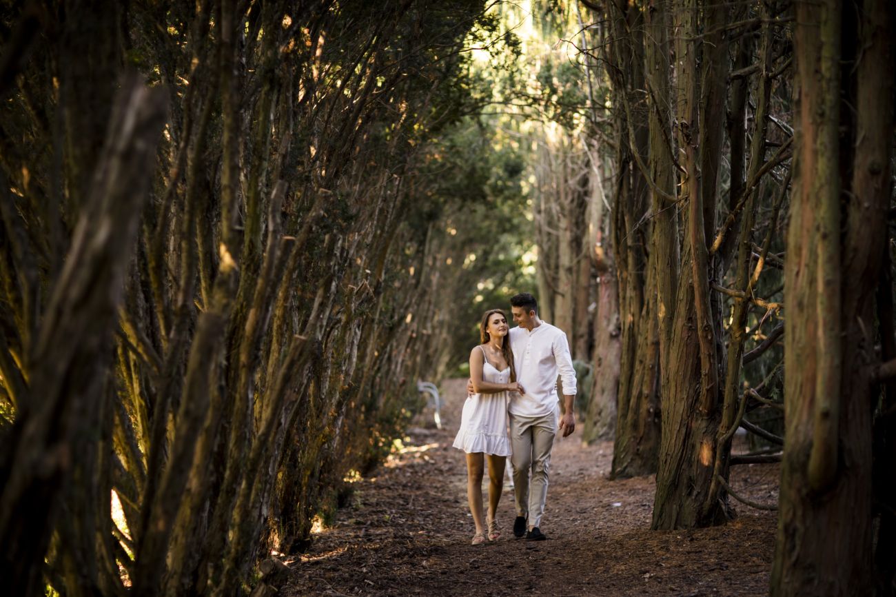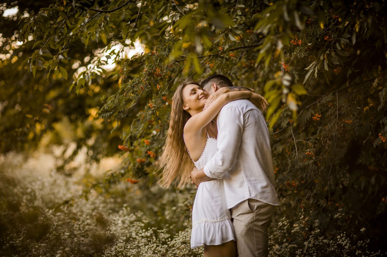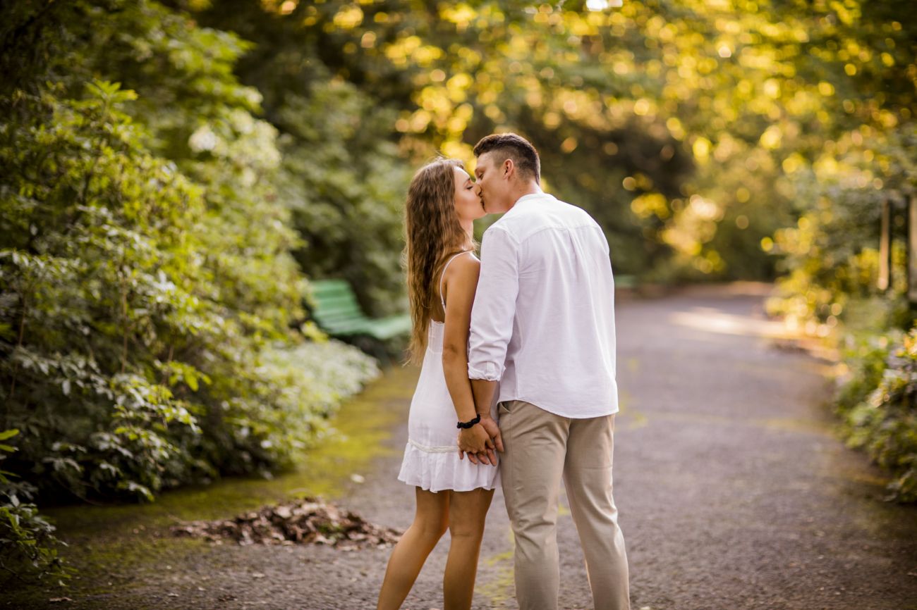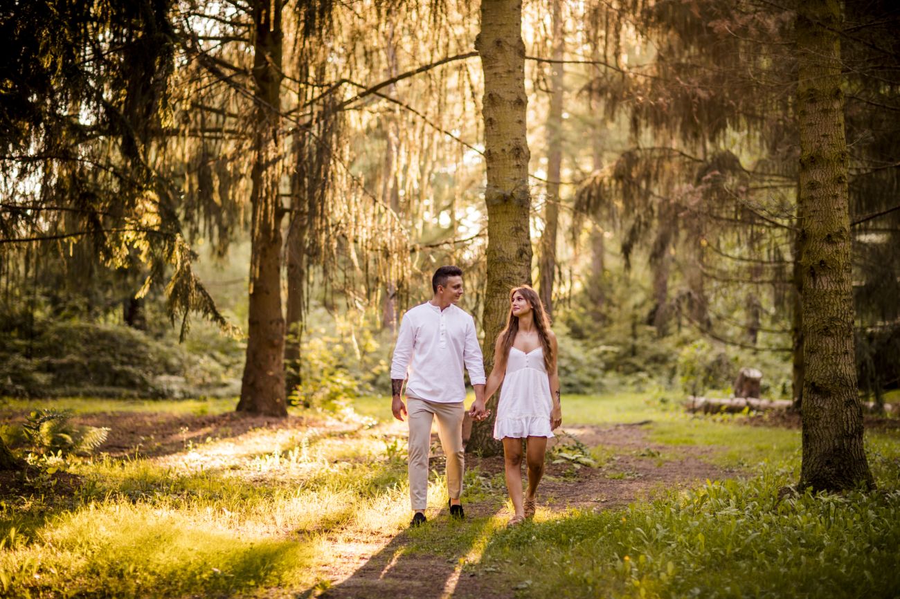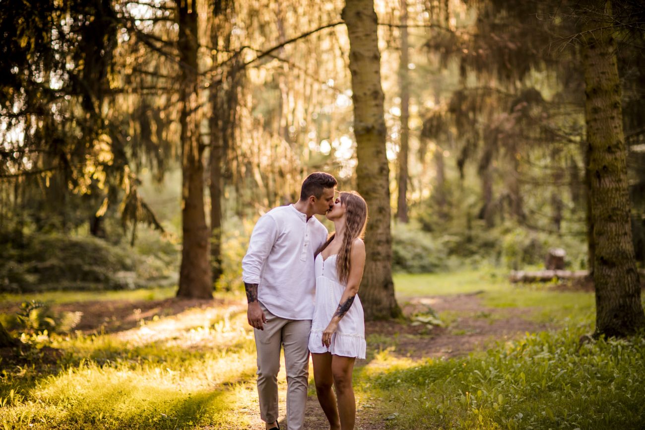 Gabriela i Dominik pragnęli mieć spokojną sesję na łonie natury. Wybrali Ogród Botaniczny w Powsinie, dzięki czemu, o tej porze roku zdjęcia nabrały blasku i różnobarwnych planów. Zachodzące słoneczko pięknie oświetliło nam tło i ociepliło klimat zdjęć. Moim zdaniem sesja wyszła bardzo naturalnie i eterycznie.
