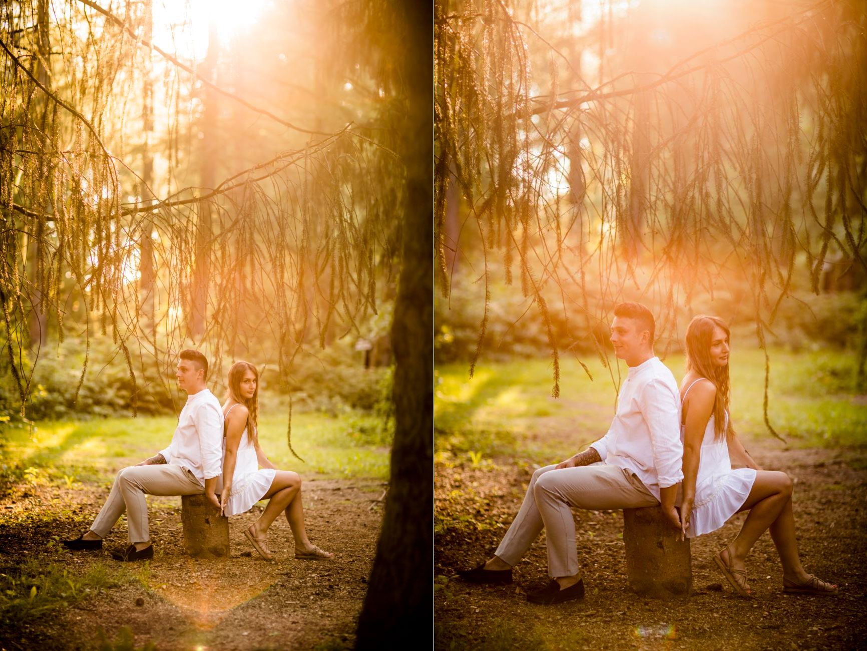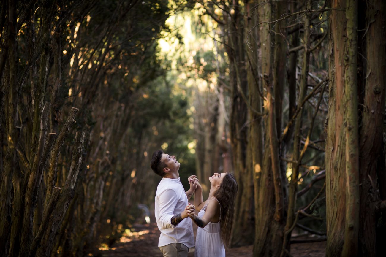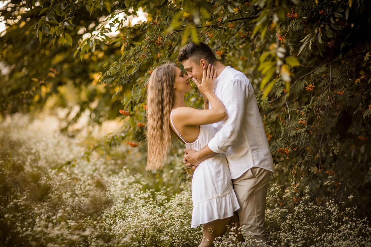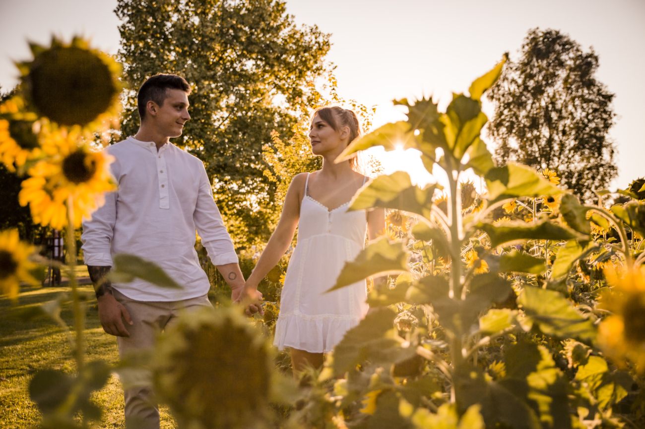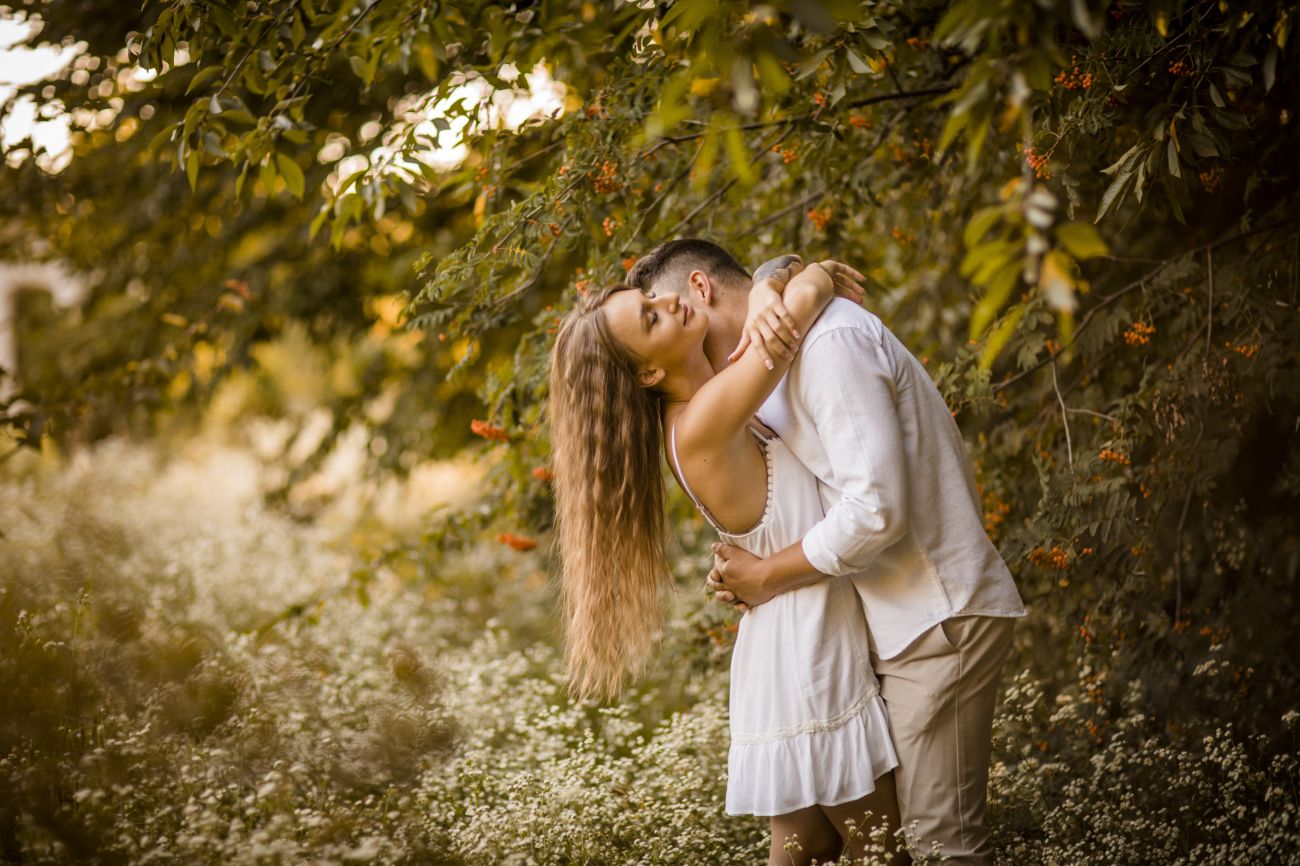Gabriela i Dominik pragnęli mieć spokojną sesję na łonie natury. Wybrali Ogród Botaniczny w Powsinie, dzięki czemu, o tej porze roku zdjęcia nabrały blasku i różnobarwnych planów. Zachodzące słoneczko pięknie oświetliło nam tło i ociepliło klimat zdjęć. Moim zdaniem sesja wyszła bardzo naturalnie i eterycznie.