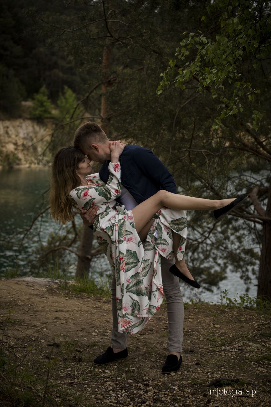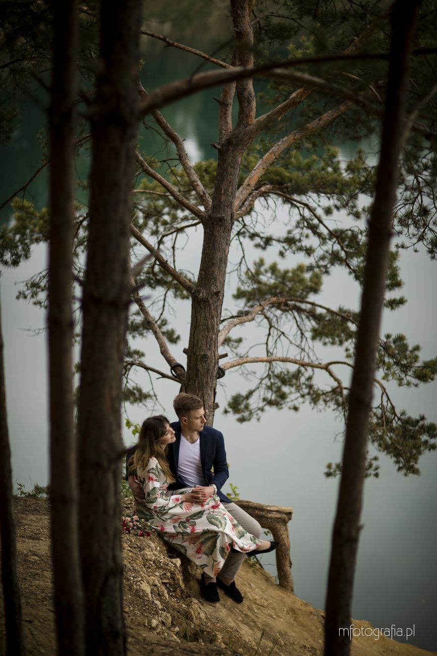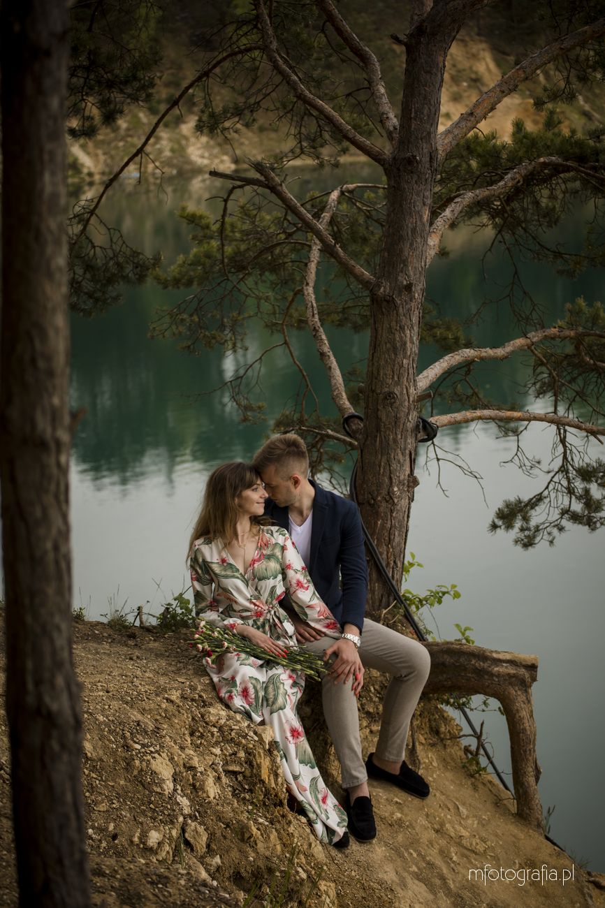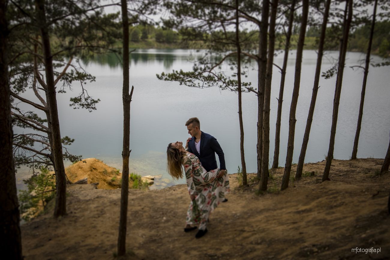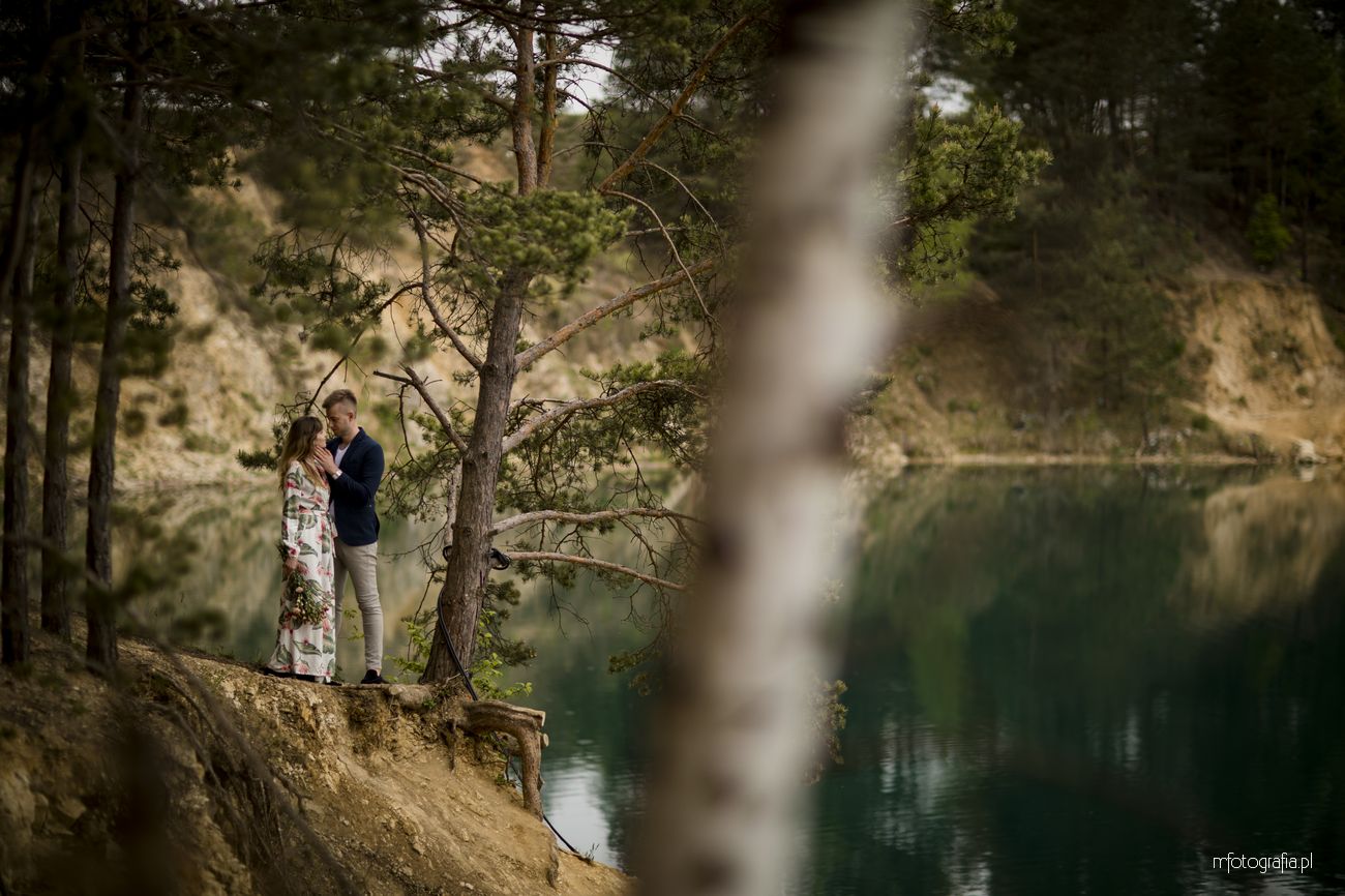 Klimatyczna sesja narzeczeńska nad lazurowym jeziorem Wapienniki
