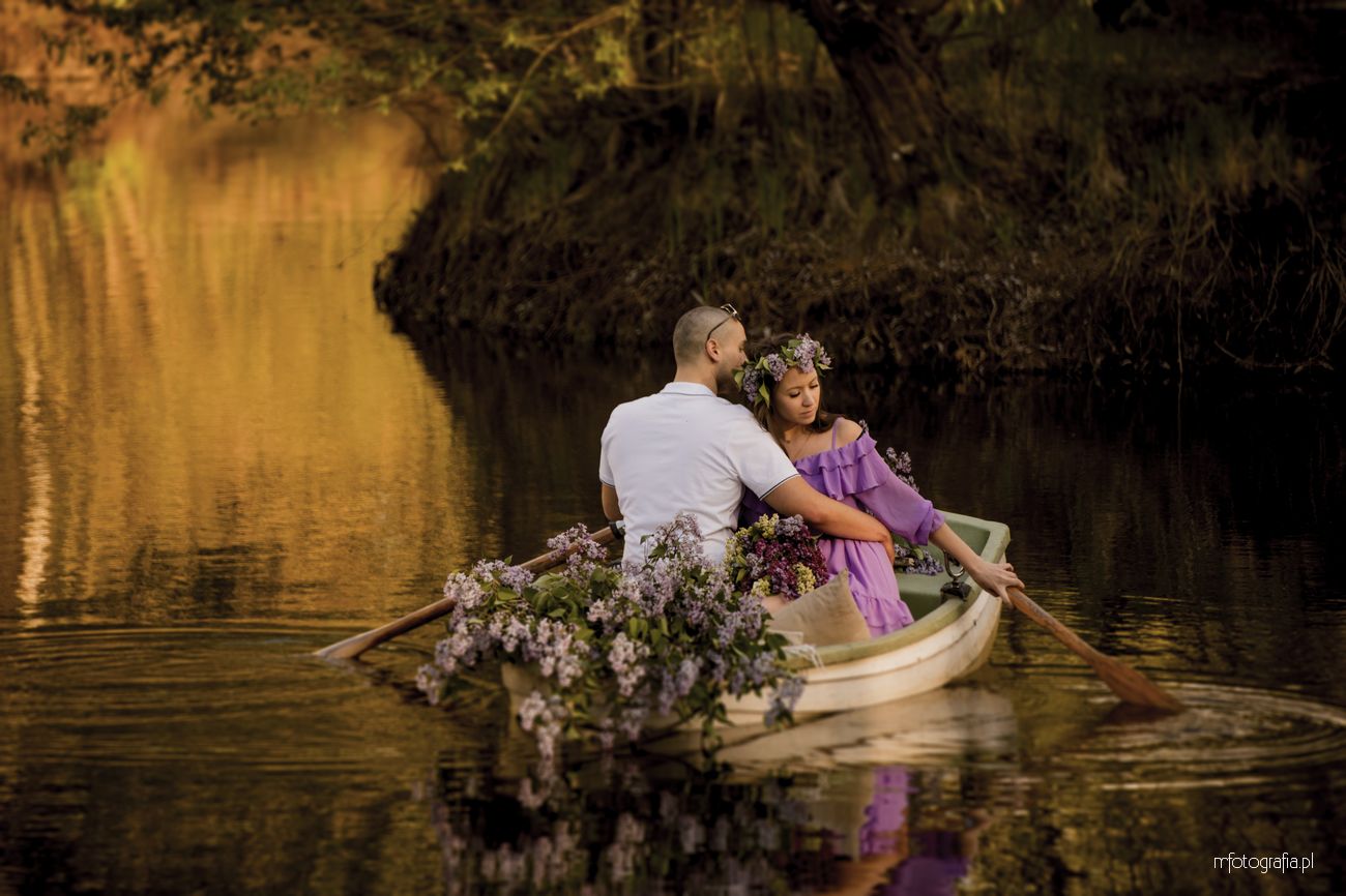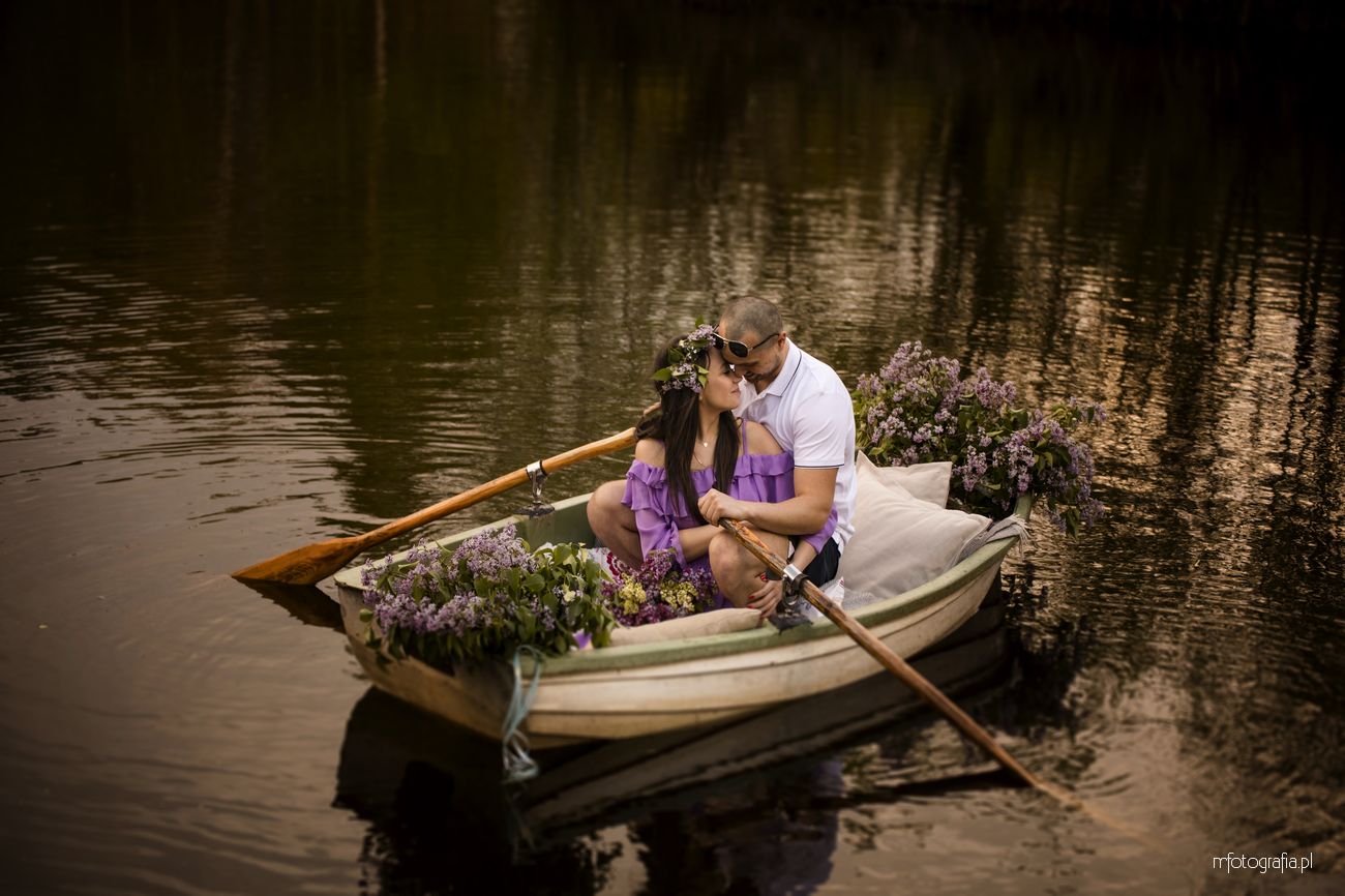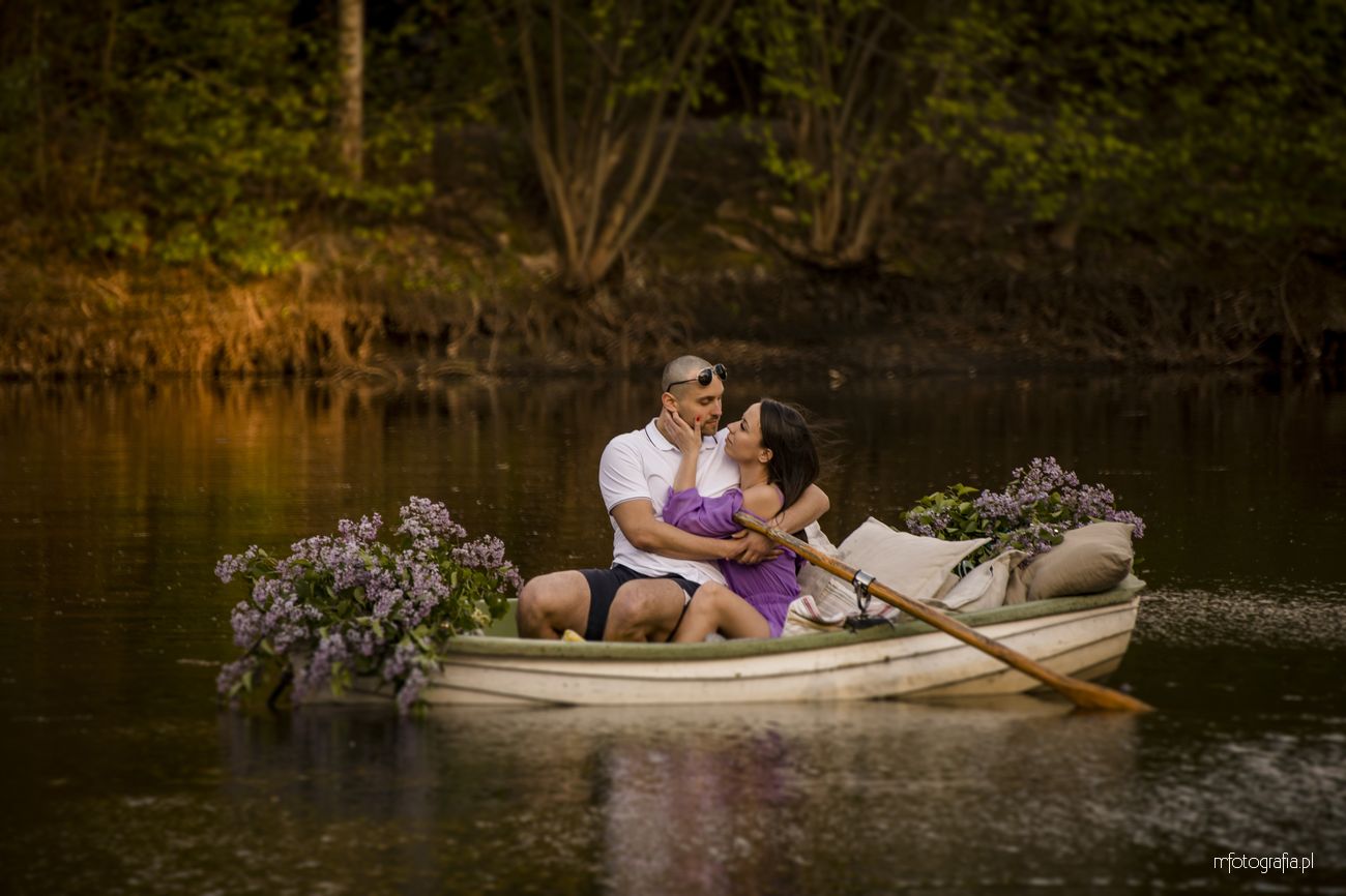 Z Paulą i Jankiem spotkaliśmy się ostatnio i stworzyliśmy coś magicznego i niesamowicie wiosennego. Paula marzyła o romantycznej sesji w łódce. Wpadłam więc na pomysł, by ową łódkę przyozdobić bardzo wiosennym akcentem, w postaci fioletowego bzu. Samo znalezienie odpowiedniego miejsca na sesję (w Warszawie) nie było łatwe. Do tego trudne czasy pandemii nie pomogły z innymi aspektami organizacyjnymi…