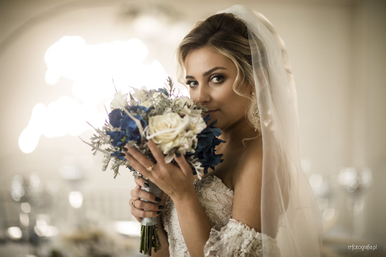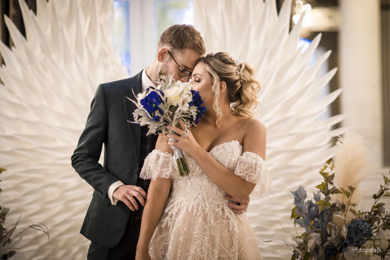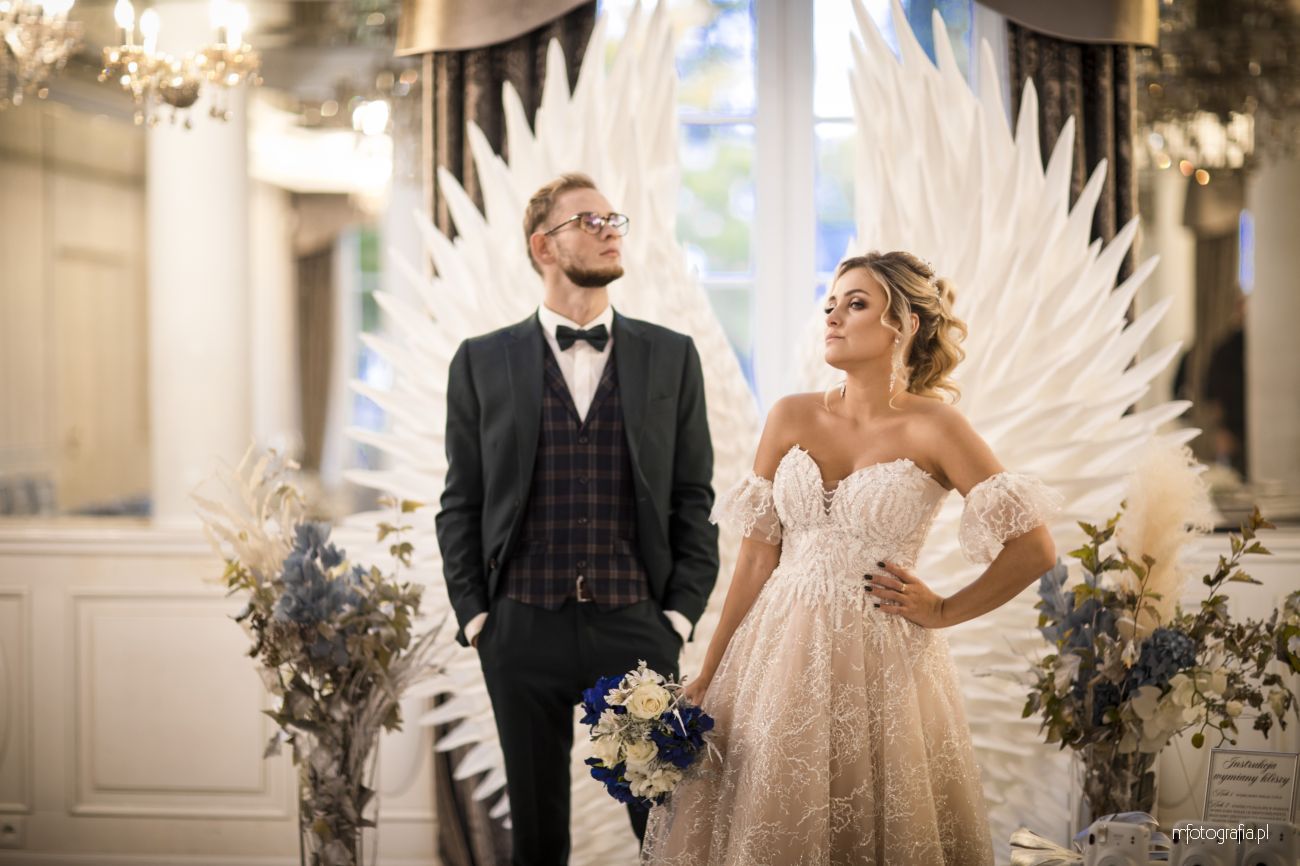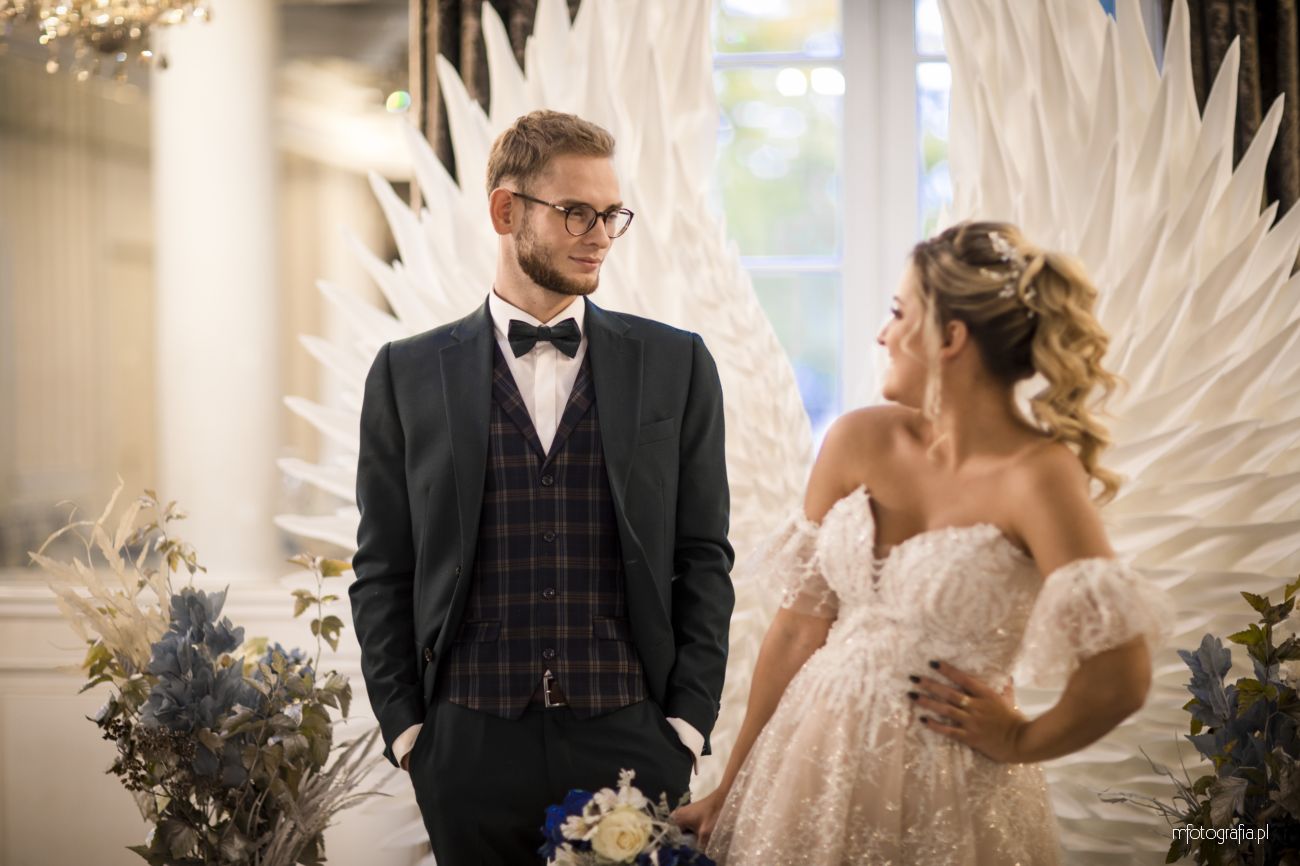 Romantyczna sesja ślubna w kolorach błękitu i srebra w przepięknych wnętrzach Pałacu Domaniowskiego