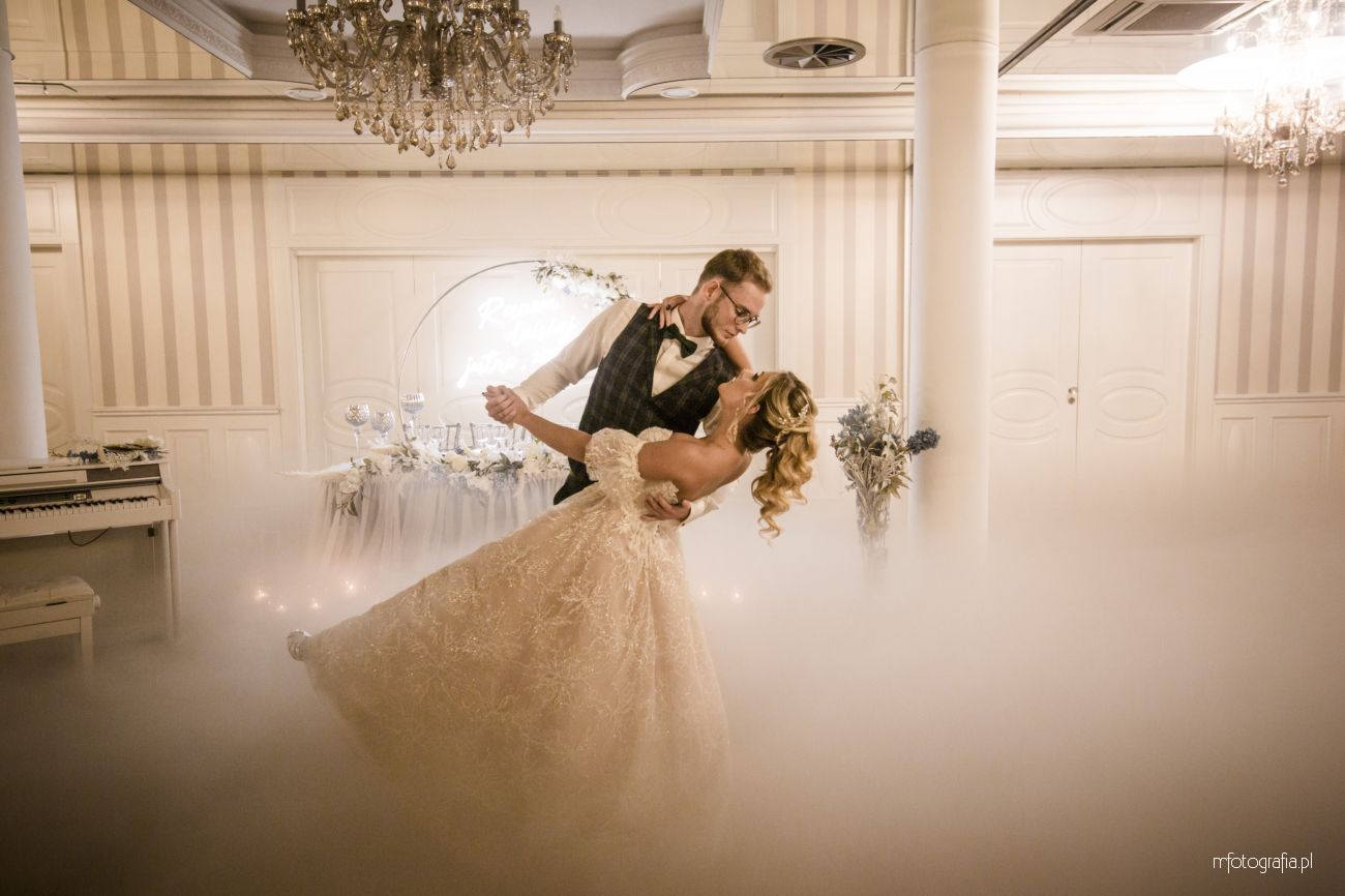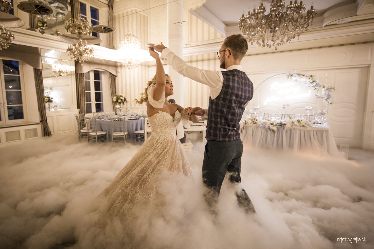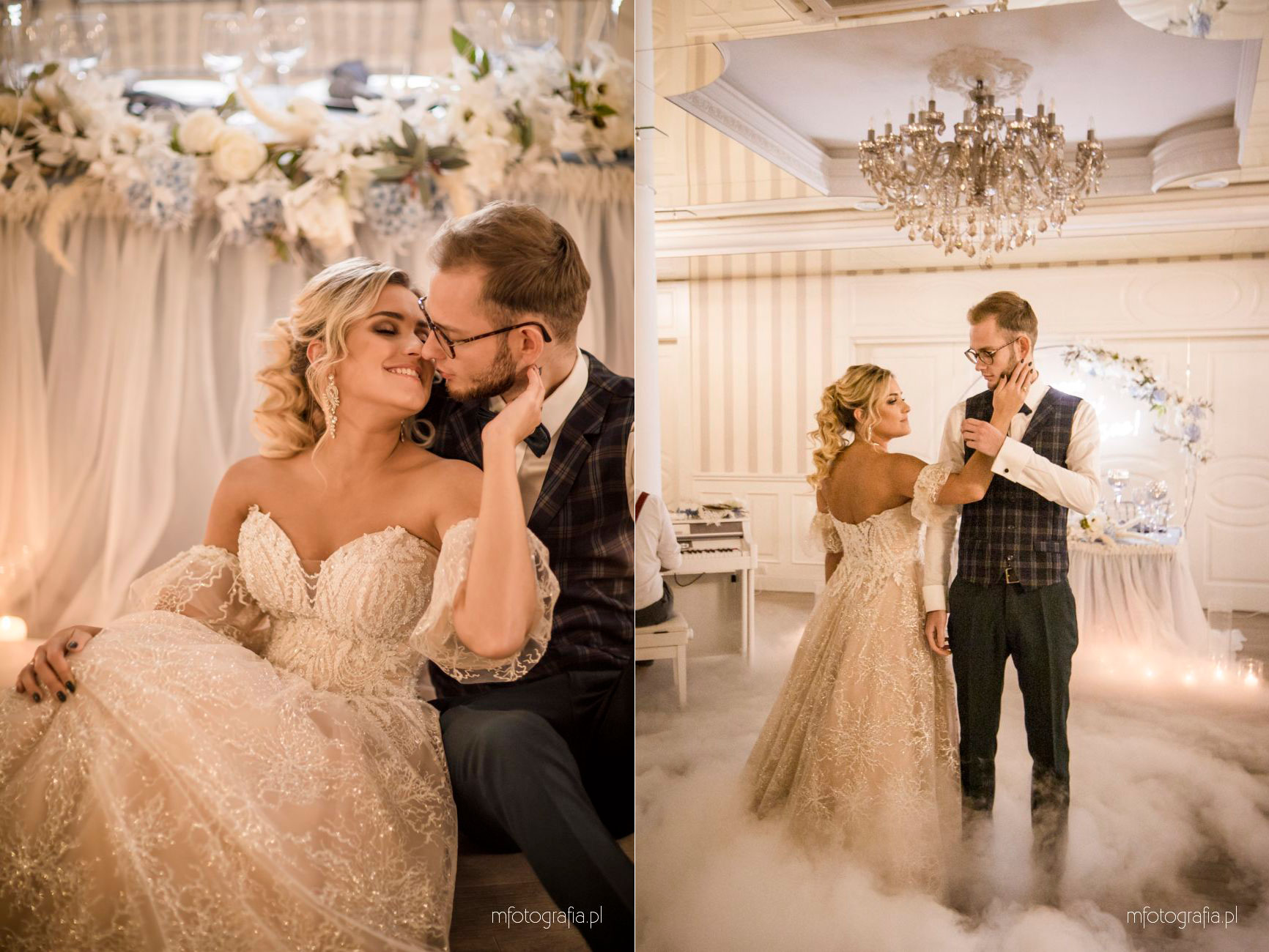 Romantyczna sesja ślubna w kolorach błękitu i srebra w przepięknych wnętrzach Pałacu Domaniowskiego