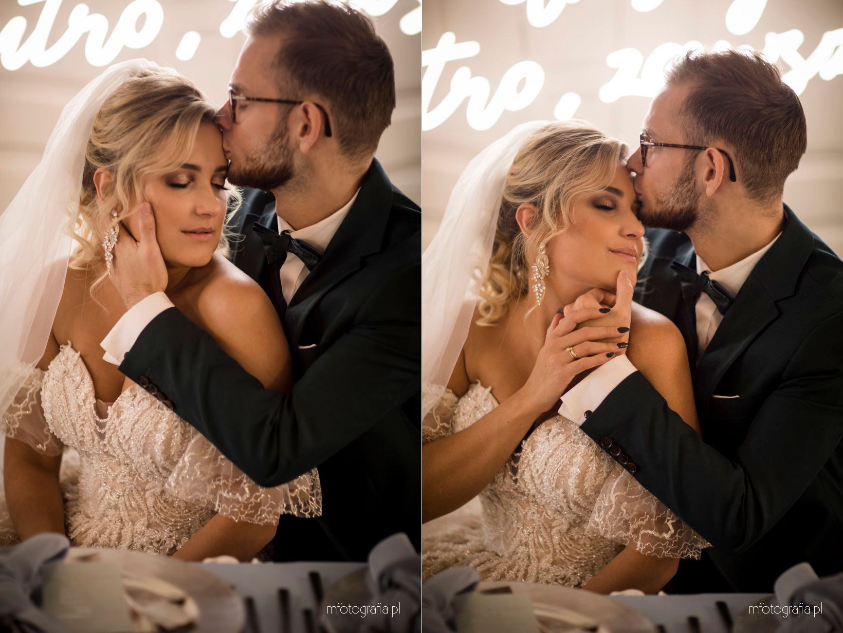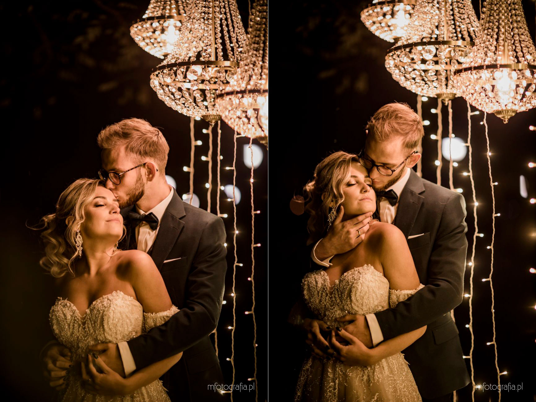 Sesję ślubną zakończyliśmy zdjęciami w pałacowym ogrodzie. Znajdowały się tam świetlne dekoracje, zrobione z drobnych sznurów z lampkami, oraz trzy kryształowe żyrandole. Chodź było piekielnie zimno, na zdjęciach zadziała się magia. Uwielbiam takie klimaty. Gdybym mogła polecić coś nowożeńcom na ślubie, to byłyby właśnie takie dekoracje.