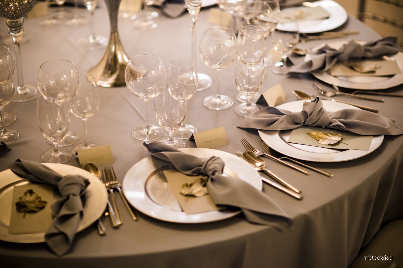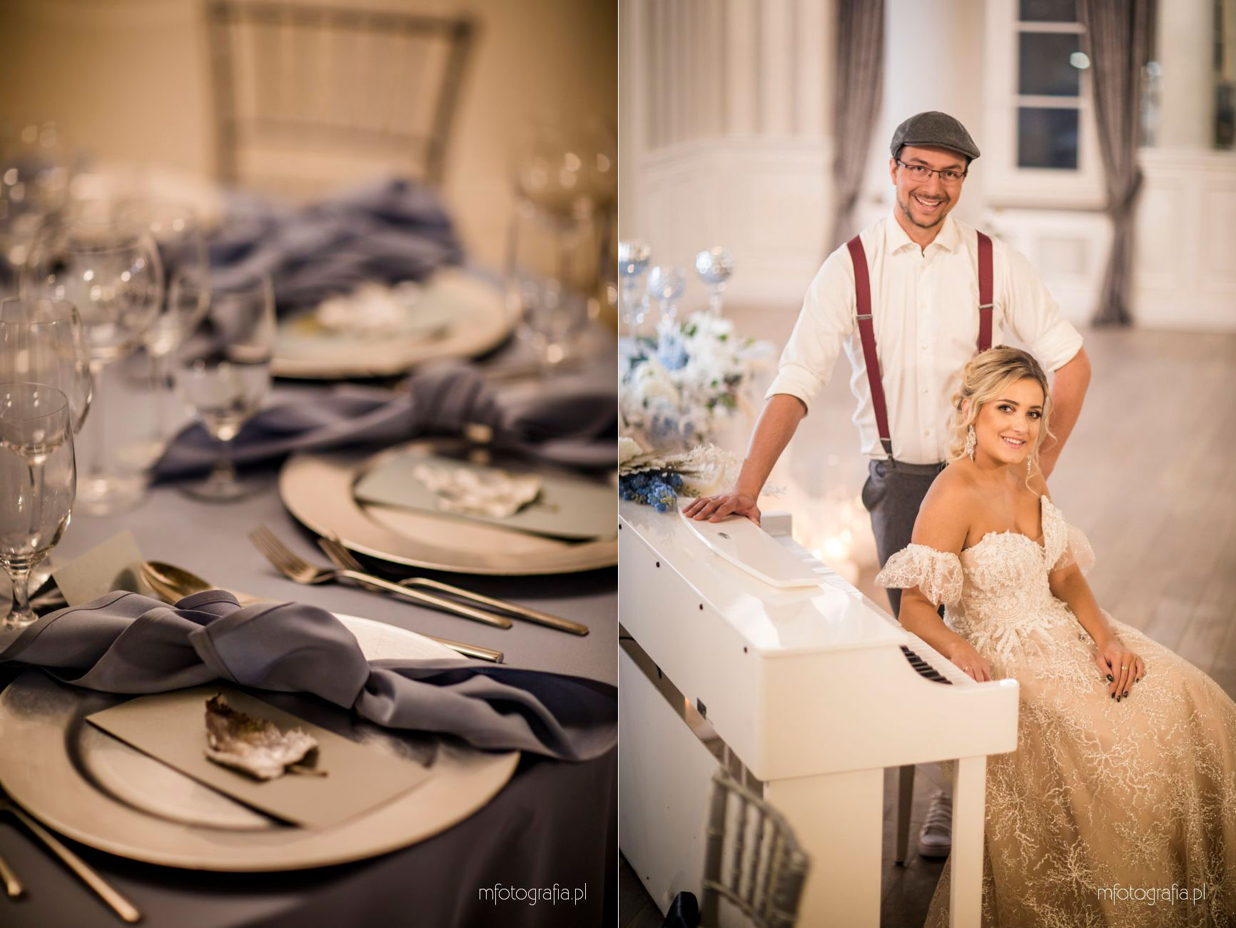 Stylizowana sesja ślubna w Pałacu Domaniowskim – piękna aranżacja stołu Państwa Młodych