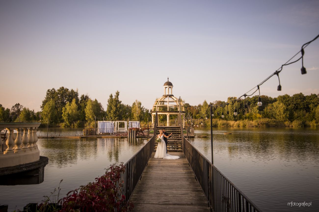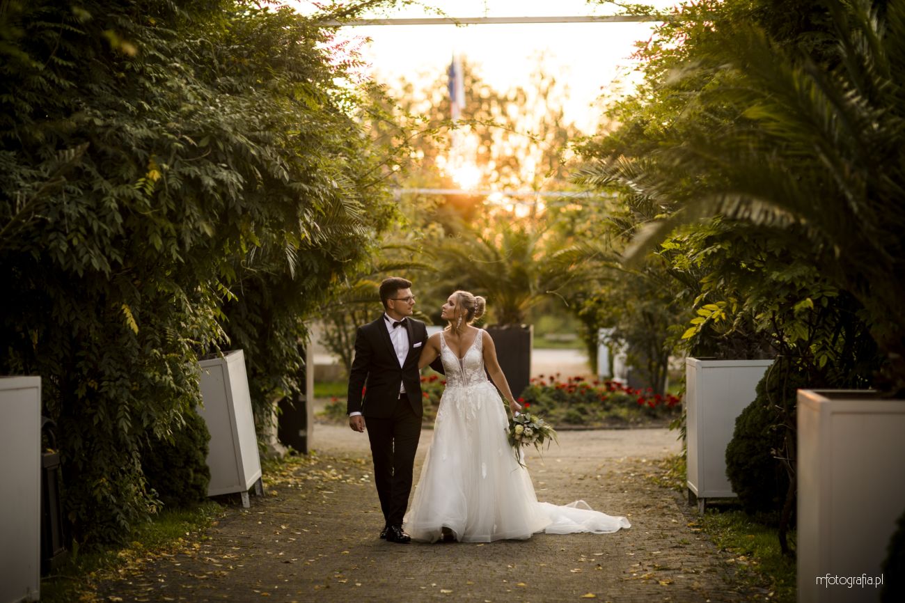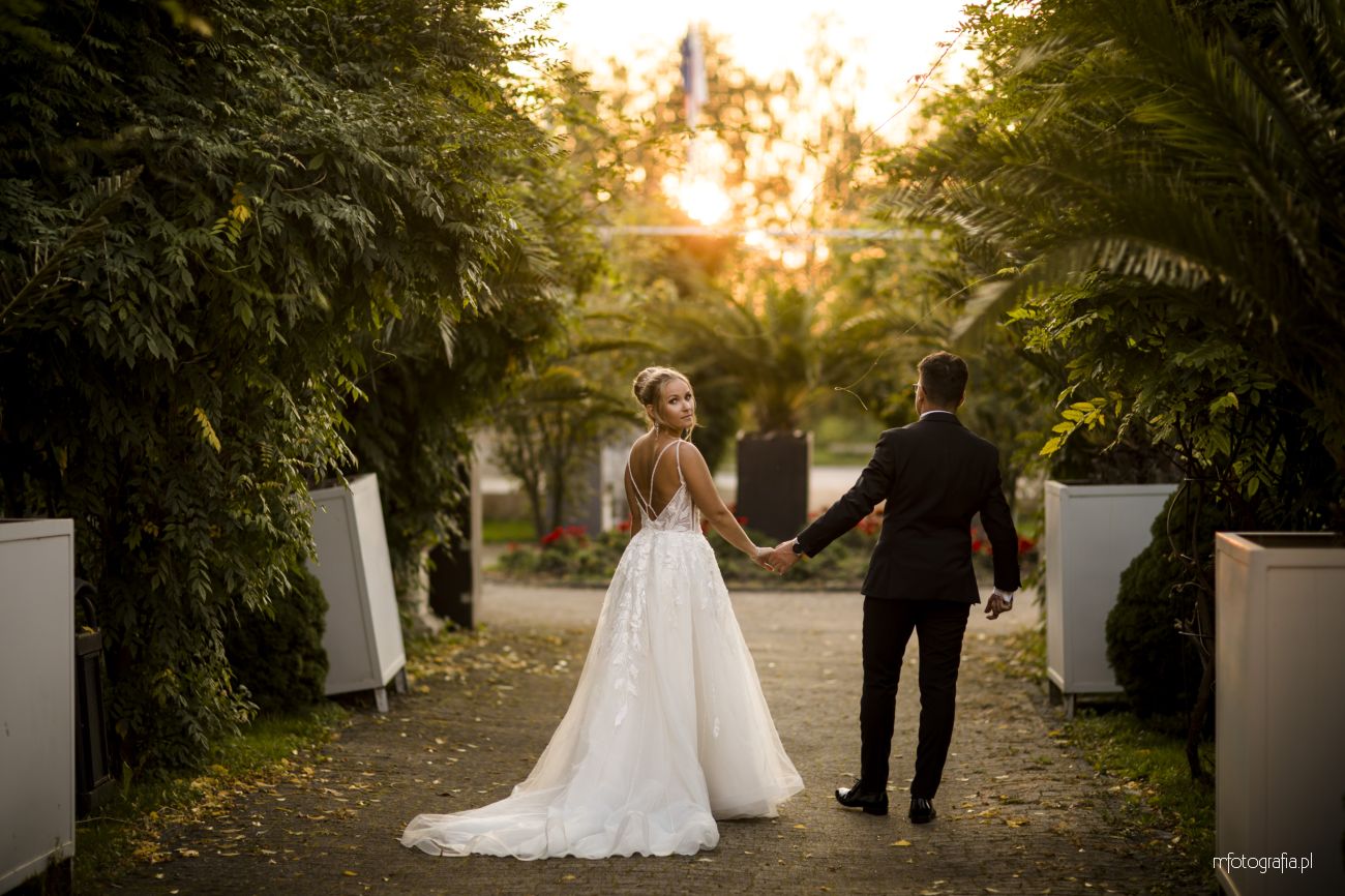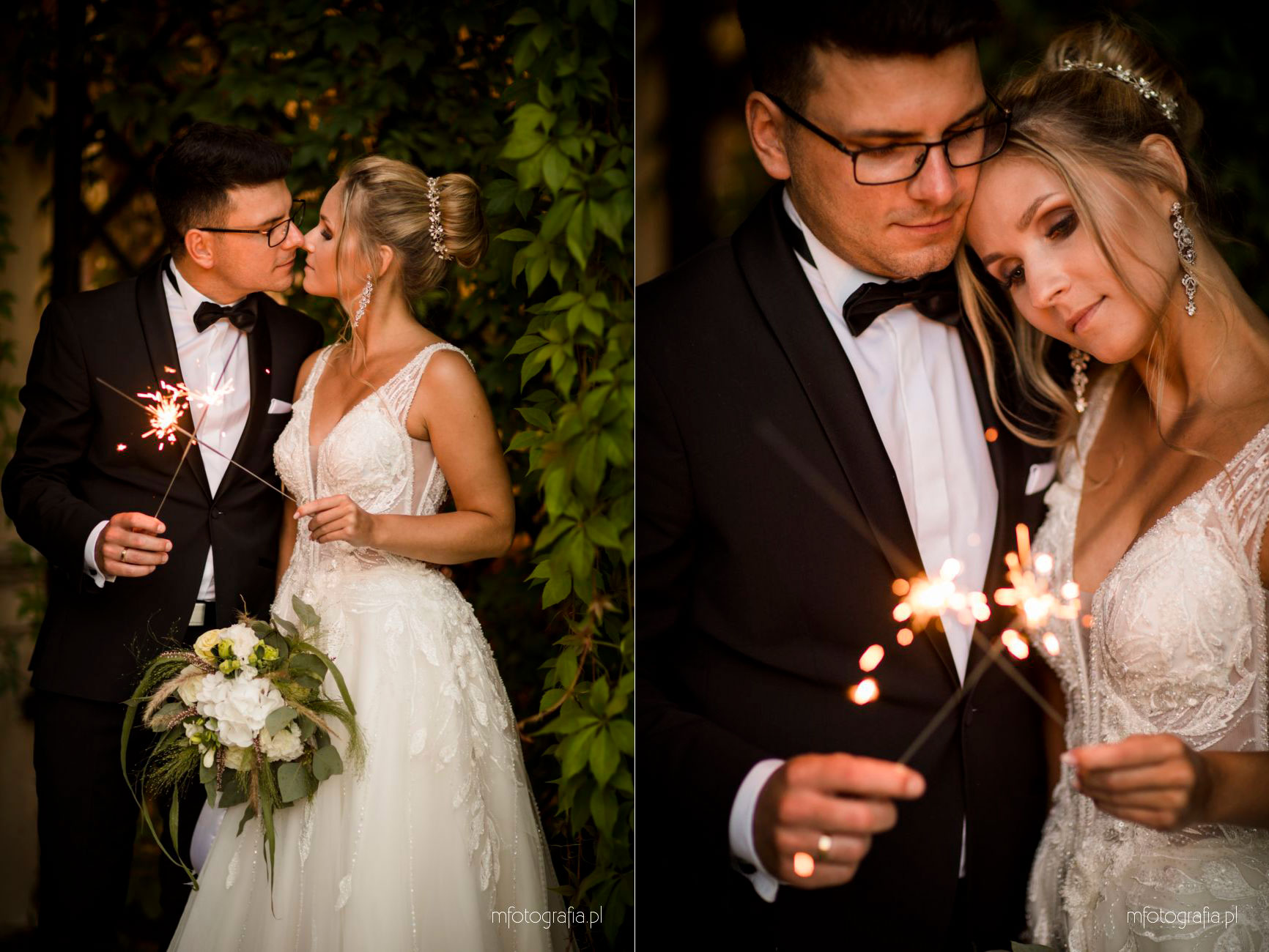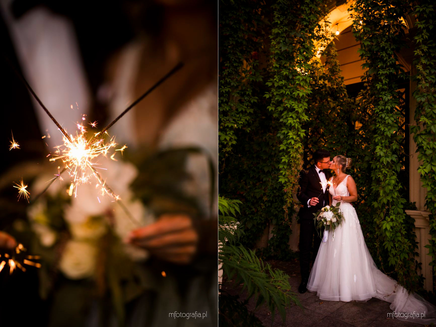 Hotel Venecia Palace to miejsce, które zachwyca ilością zakamarków w różnym stylu. W połączeniu z blaskiem zachodzącego słońca, zdjęcia ślubne wyglądają jakbyśmy odwiedzili Wenecję lub inny malowniczy kraj na południu Europy. Można tam spotkać zarówno ciekawe wnętrza pałacowe jak i klasyczne plenery roślinne. Jest również ogromny staw, który nadaje pałacowi ciekawej formy pływającej budowli. Kinga i Sebastian przygotowali wile atrybutów. Wykorzystaliśmy zimne ognie, szampana oraz cudowny welon Panny Młodej. Sesja prezentuje się wytwornie i na bogato 😉 Oczywiście już ją przedstawiam.