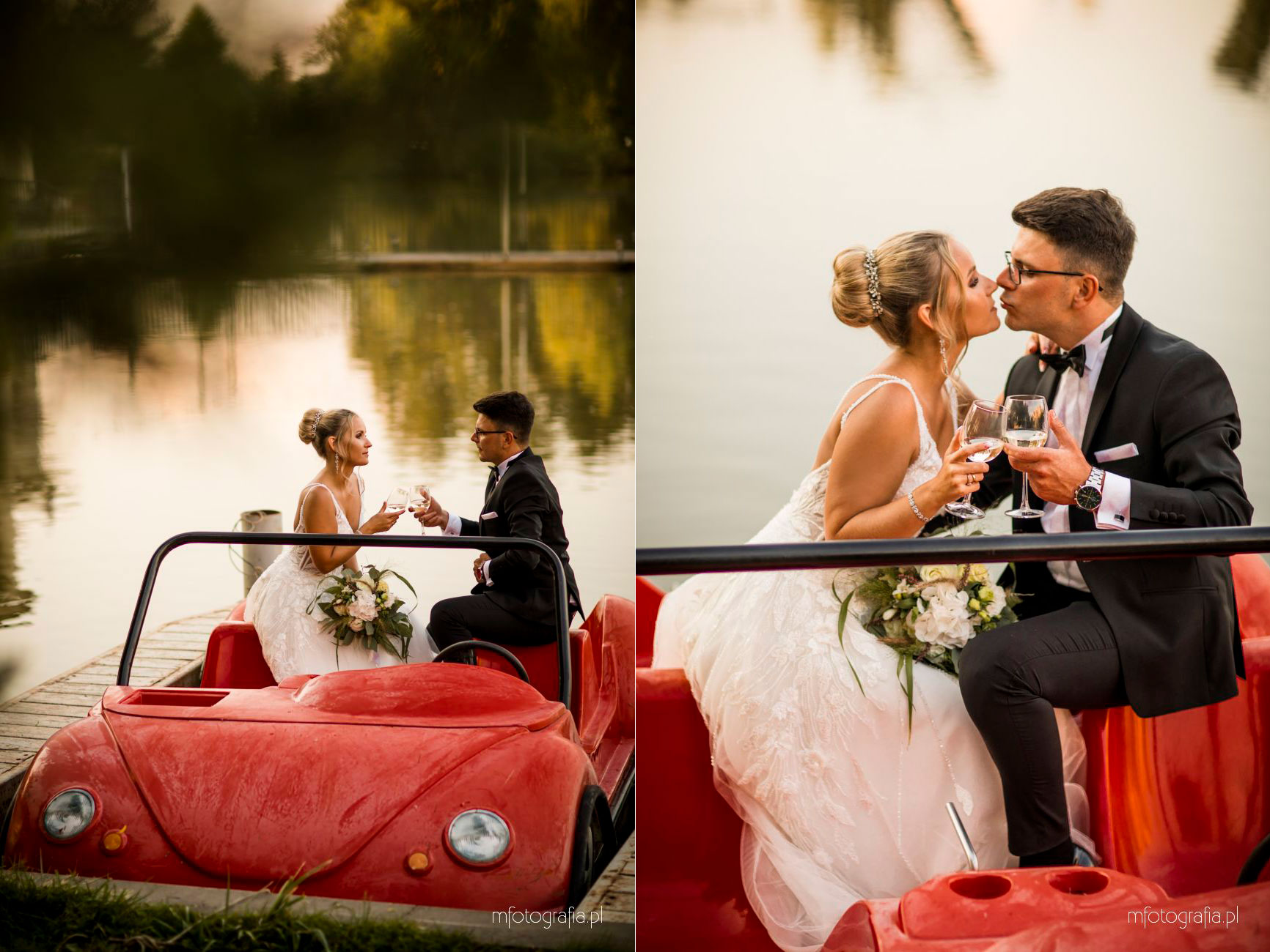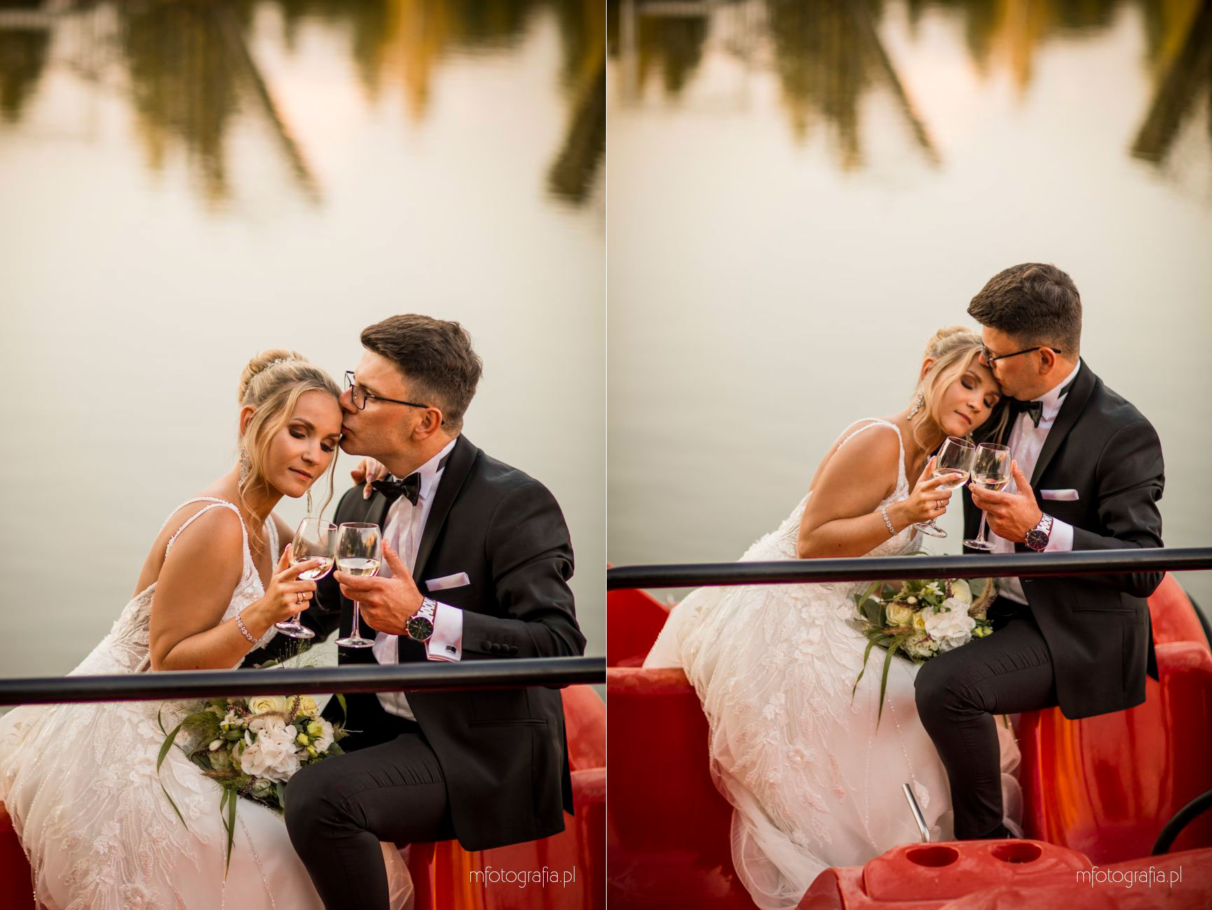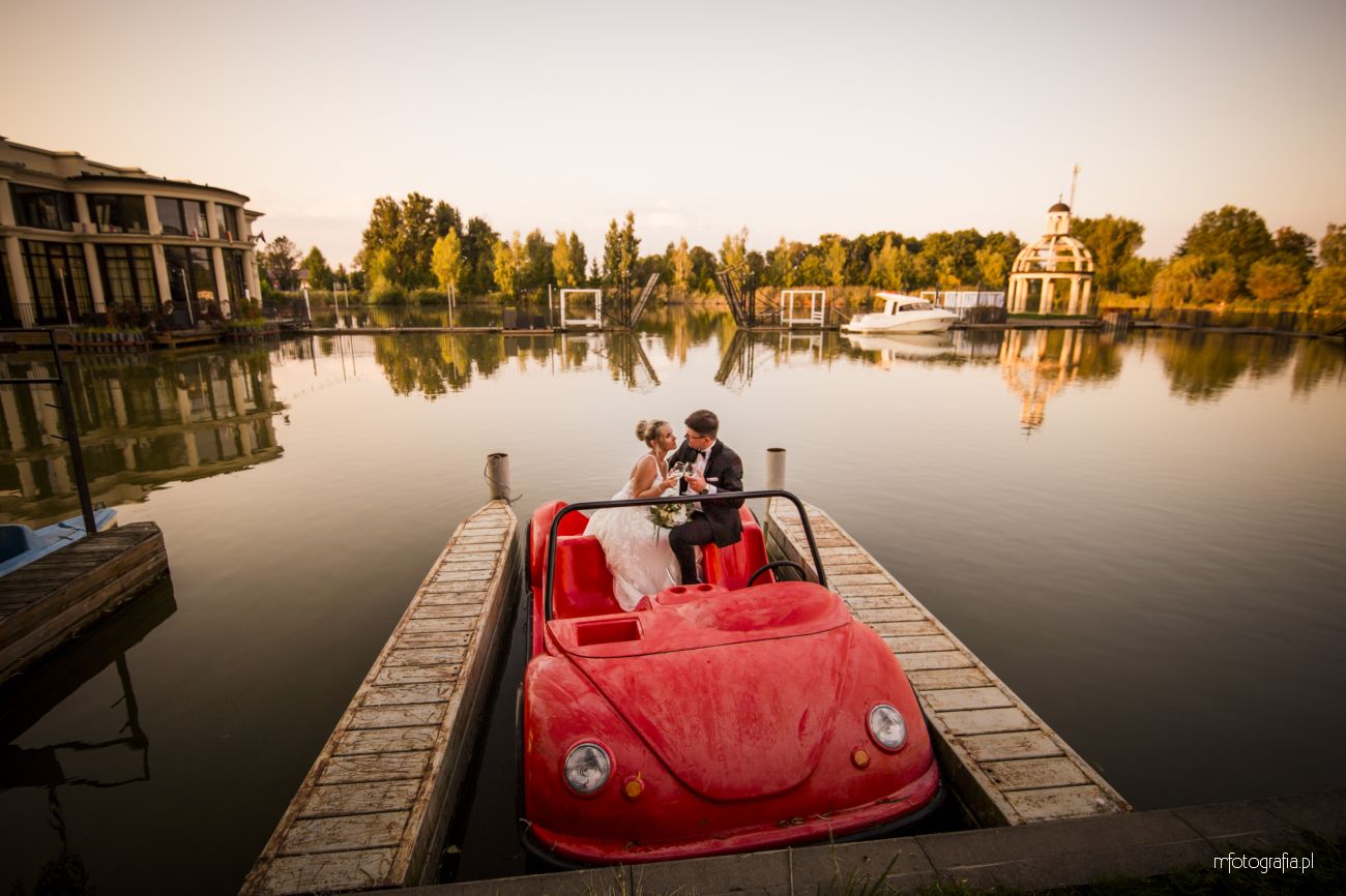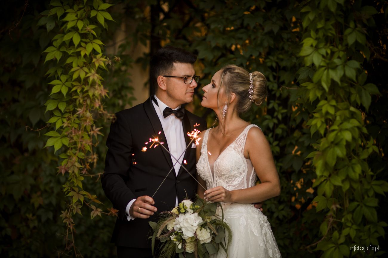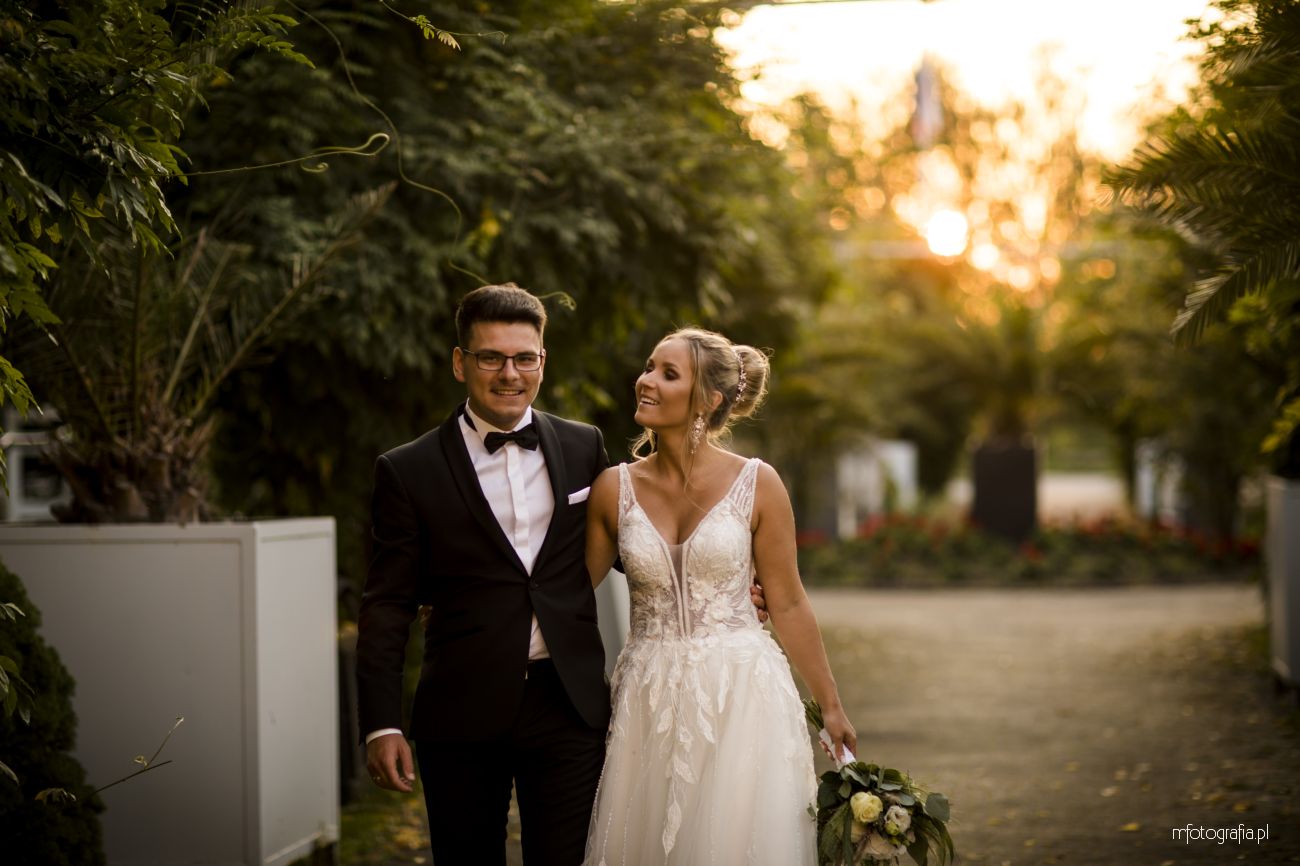 Hotel Venecia Palace to miejsce, które zachwyca ilością zakamarków w różnym stylu. W połączeniu z blaskiem zachodzącego słońca, zdjęcia ślubne wyglądają jakbyśmy odwiedzili Wenecję lub inny malowniczy kraj na południu Europy. Można tam spotkać zarówno ciekawe wnętrza pałacowe jak i klasyczne plenery roślinne. Jest również ogromny staw, który nadaje pałacowi ciekawej formy pływającej budowli. Kinga i Sebastian przygotowali wile atrybutów. Wykorzystaliśmy zimne ognie, szampana oraz cudowny welon Panny Młodej. Sesja prezentuje się wytwornie i na bogato 😉 Oczywiście już ją przedstawiam.