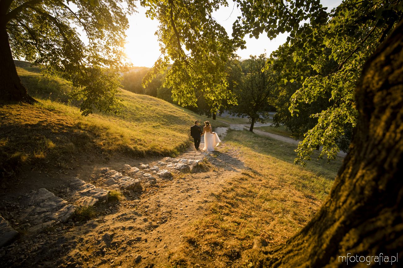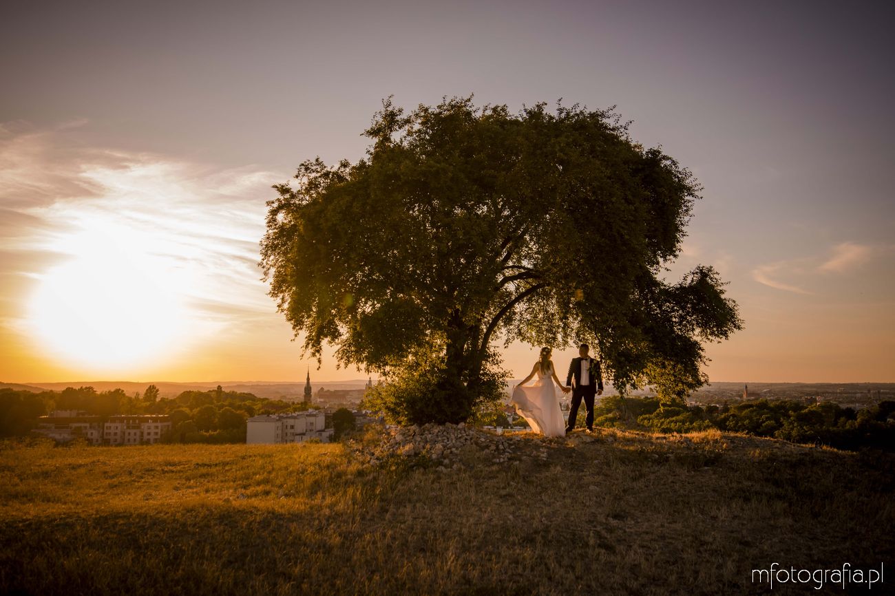 Jadąc na dalekie plenery, zawsze proponuje małżonkom zrealizować sesję w kilku lokalizacjach. Tak też było i tym razem. W drodze powrotnej zahaczyliśmy o Kraków i piękne miejsce, które znane jest z cudownych zachodów słońca. Na Kopcu Krakusa właśnie rozpościera się cała panorama Krakowa. Pogoda i zachód słońca dopisały. Takie cudne ujęcia nam się udało zrobić w niewiele ponad pół godzinki.
