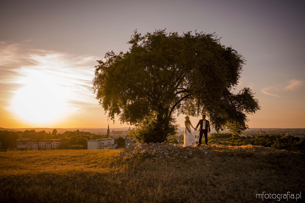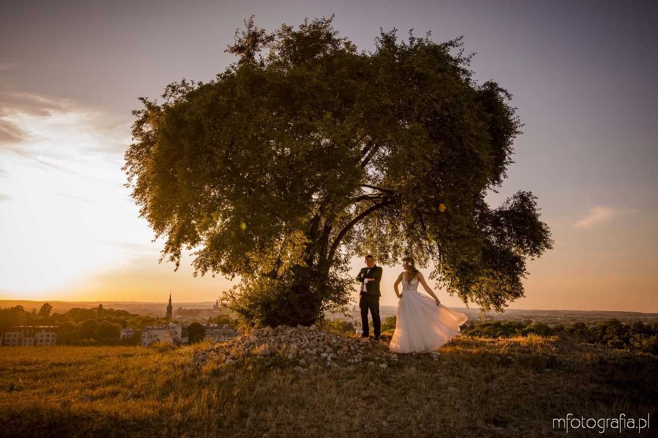 Sesja ślubna w Krakowie pod drzewem na Kopcu Krakusa