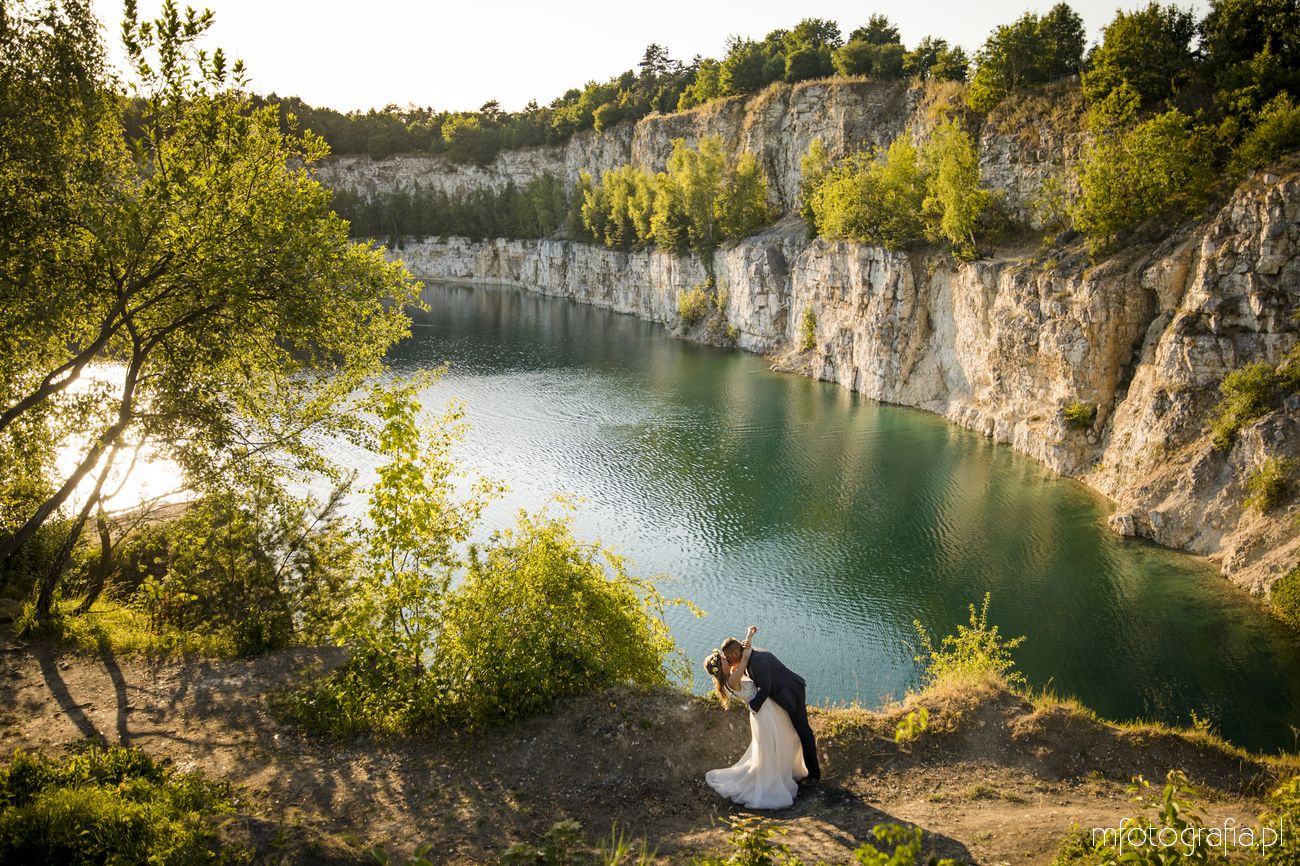 Jeśli jestem w Krakowie zawsze proponuje zrobić sesję ślubną nad Zalewem Zakrzówek/. Jest to miejsce, które na fotografiach wygląda jak egzotyczny zakątek. Lazurowa woda i wysokie klify wspaniale wyglądają na zdjęciach ślubnych. Myślę, że to miejsce każdy powinien poznać i odwiedzić. A jeśli poznajecie je dzięki mnie, tak jak w tym przypadku było, to bardzo mi miło 🙂