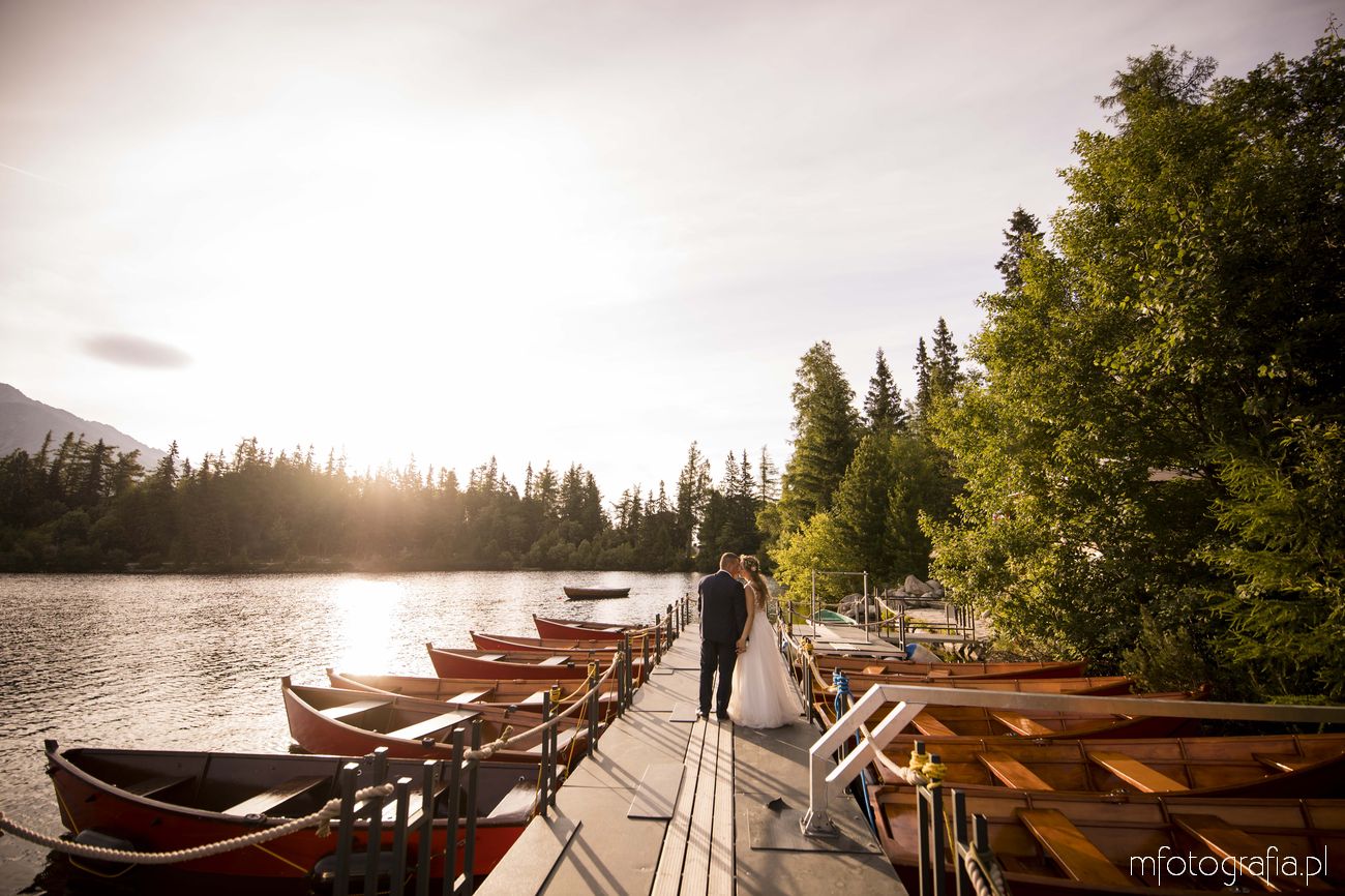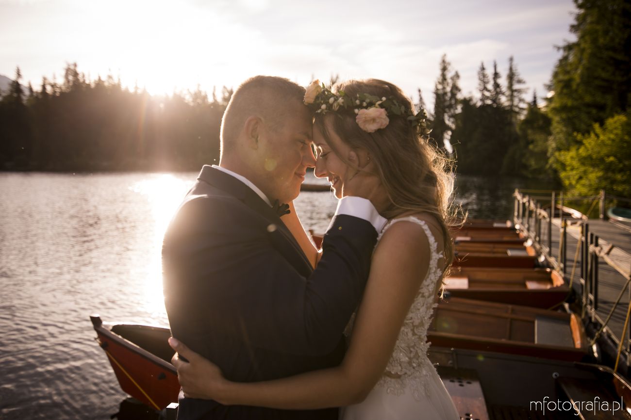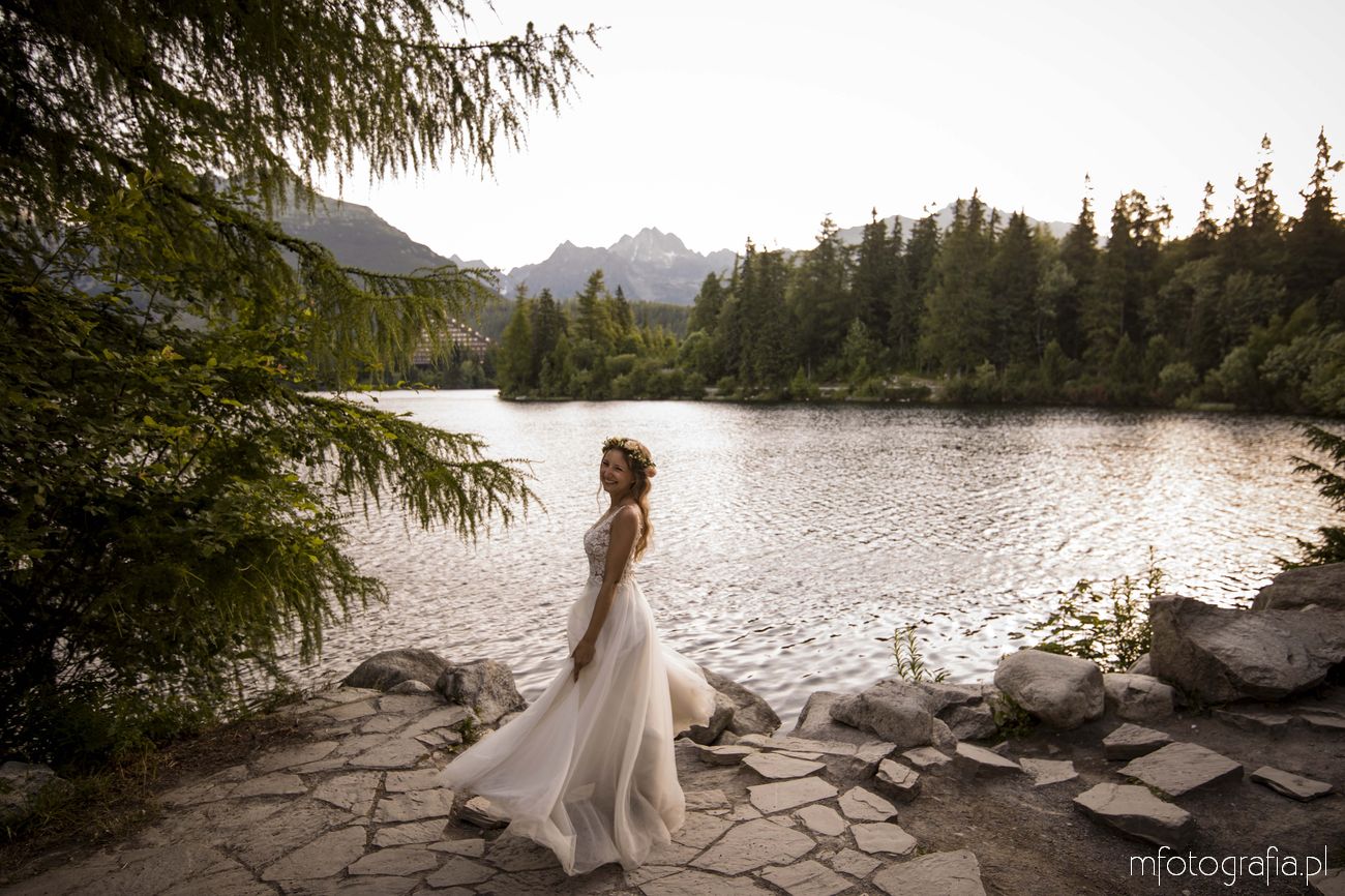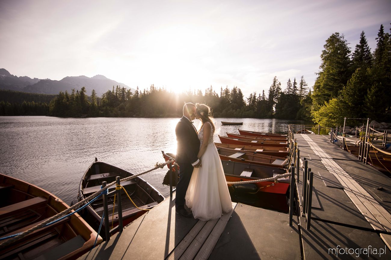 Tę przepiękną historię pragnę rozpocząć od pierwszej części sesji ślubnej, którą zrealizowaliśmy nad malowniczym Szczyrbskim Jeziorem w urokliwej Słowacji. Nie było łatwo, gdyż sesja była robiona w środku lata o wschodzie słońca. Była to również zagraniczna sesja zdjęciowa. Trzeba wstać w środku nocy, naszykować się i wyruszyć jeszcze przed świtem, by zdążyć przed słońcem na miejsce sesji. Miejscówka nas nie zawiodła i pogoda również była użekająca. W tych wspaniałych warunkach powstały te oto kadry: