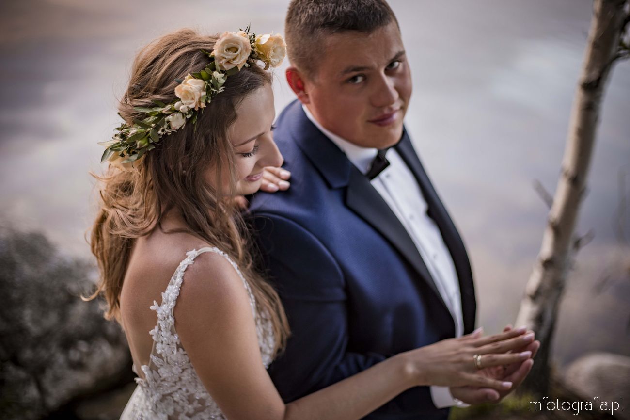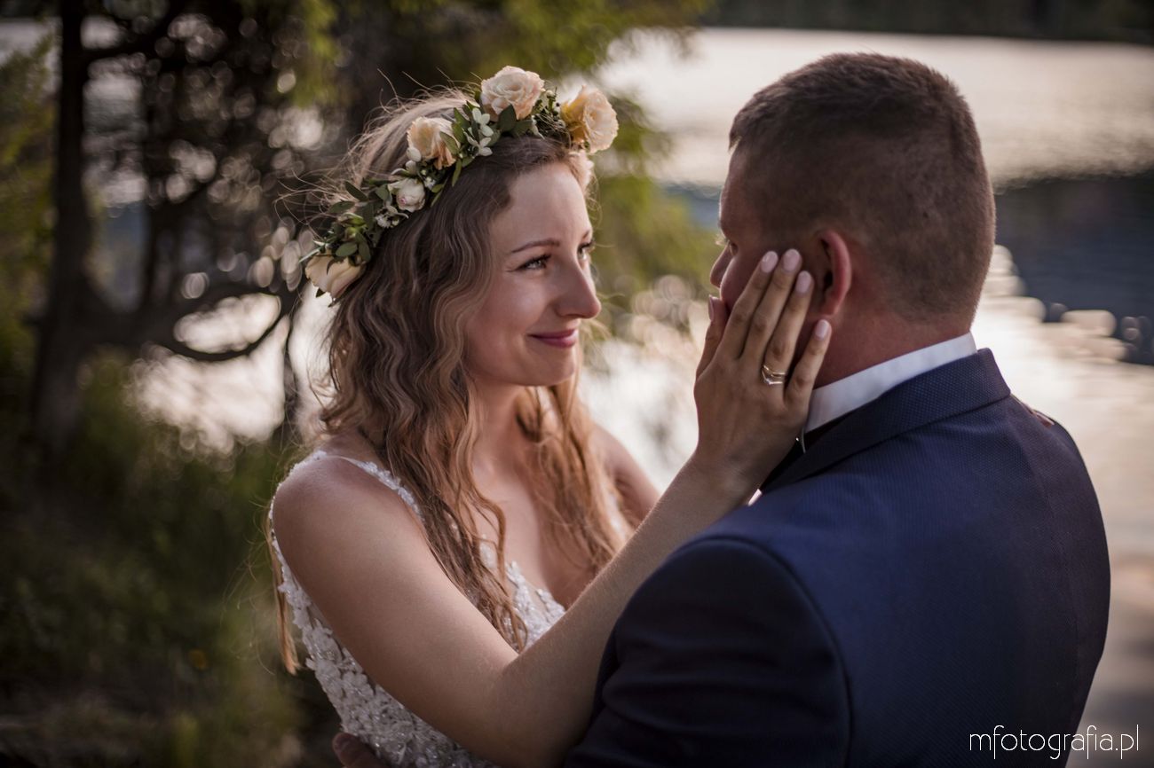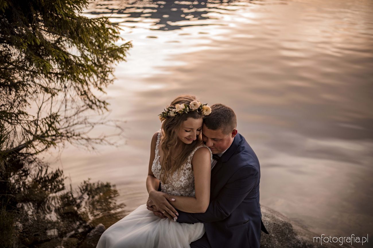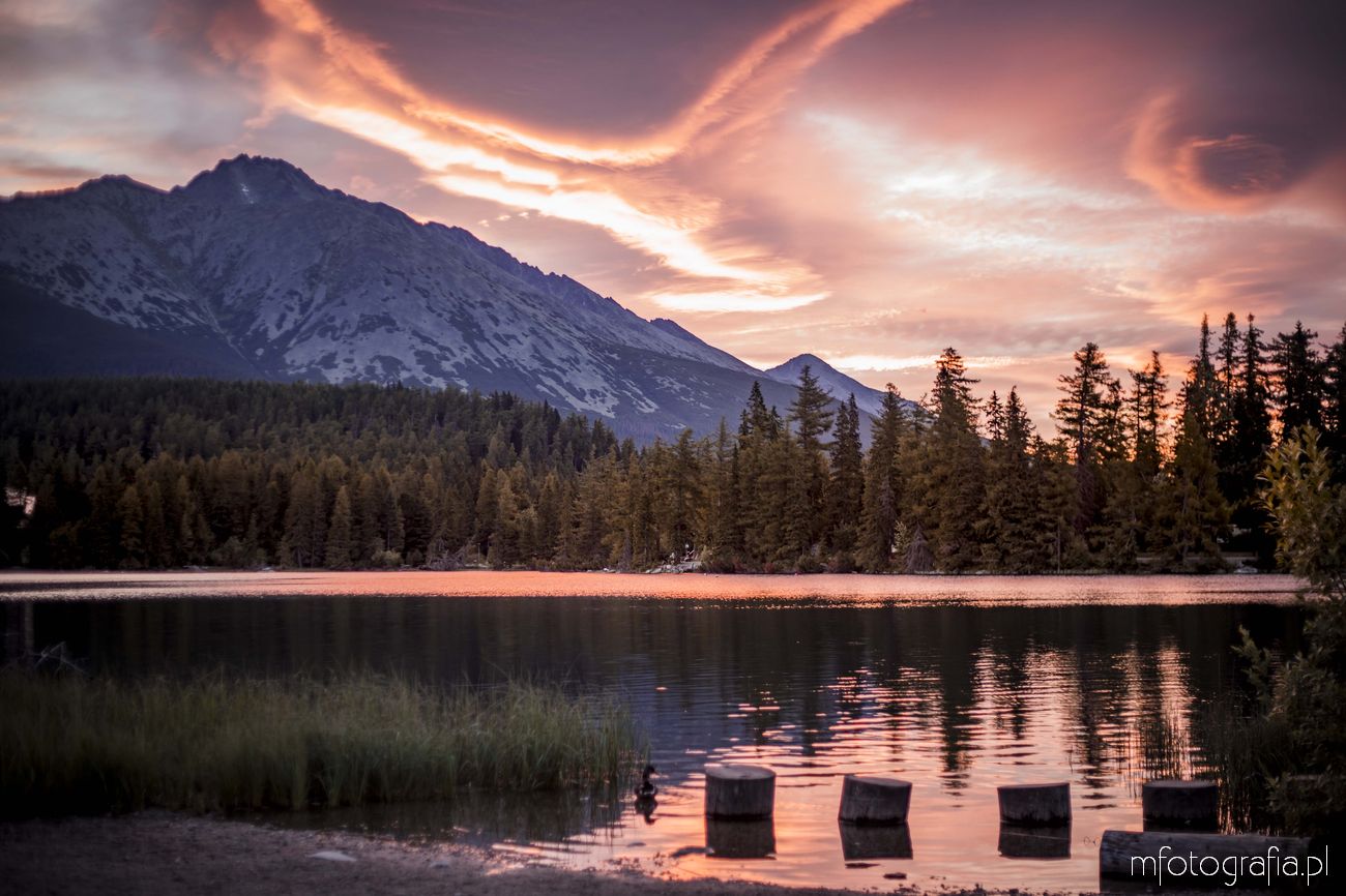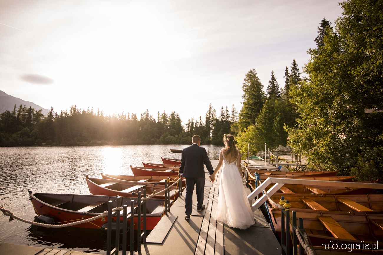 Tę przepiękną historię pragnę rozpocząć od pierwszej części sesji ślubnej, którą zrealizowaliśmy nad malowniczym Szczyrbskim Jeziorem w urokliwej Słowacji. Nie było łatwo, gdyż sesja była robiona w środku lata o wschodzie słońca. Była to również zagraniczna sesja zdjęciowa. Trzeba wstać w środku nocy, naszykować się i wyruszyć jeszcze przed świtem, by zdążyć przed słońcem na miejsce sesji. Miejscówka nas nie zawiodła i pogoda również była użekająca. W tych wspaniałych warunkach powstały te oto kadry: