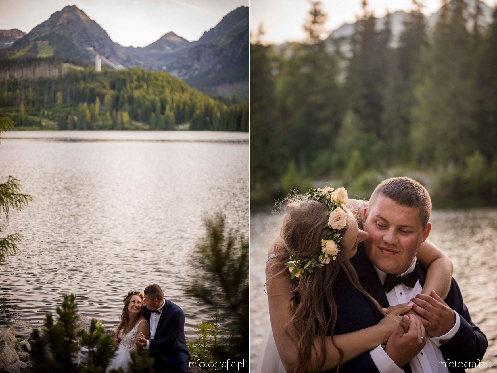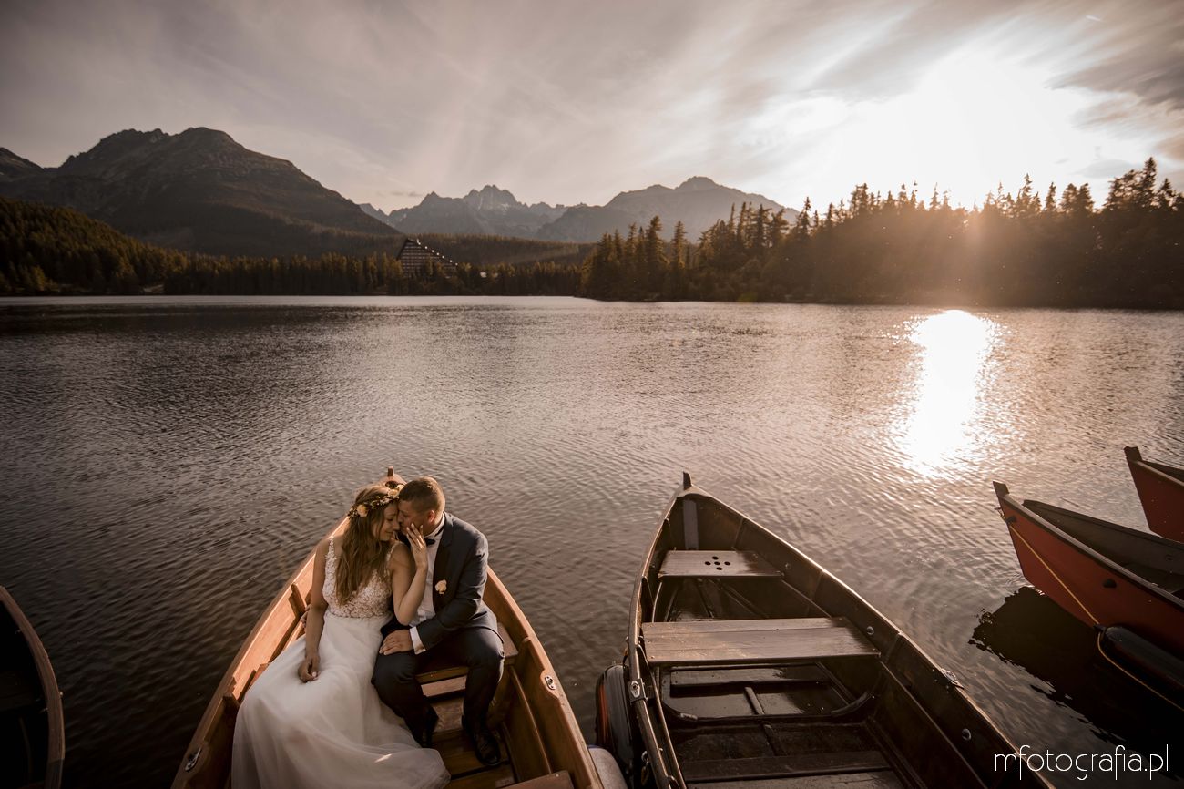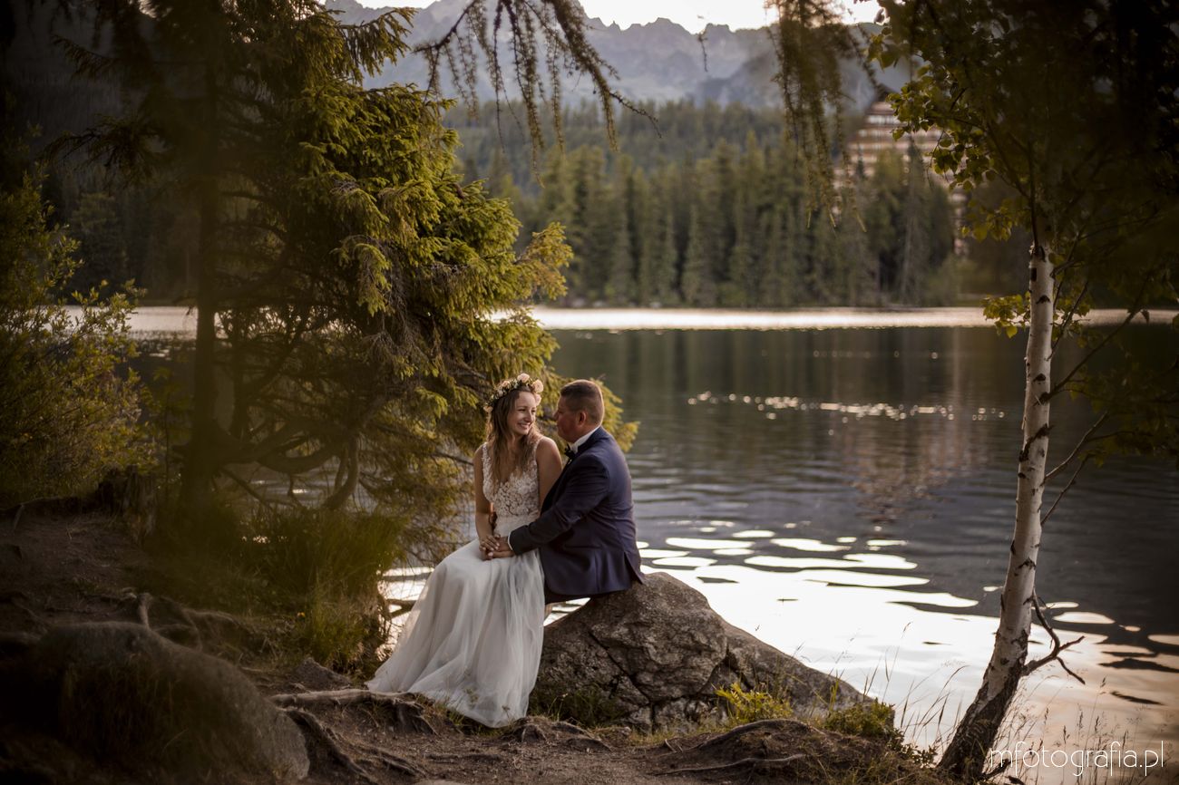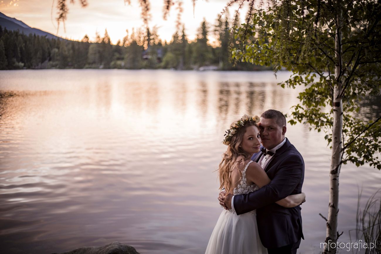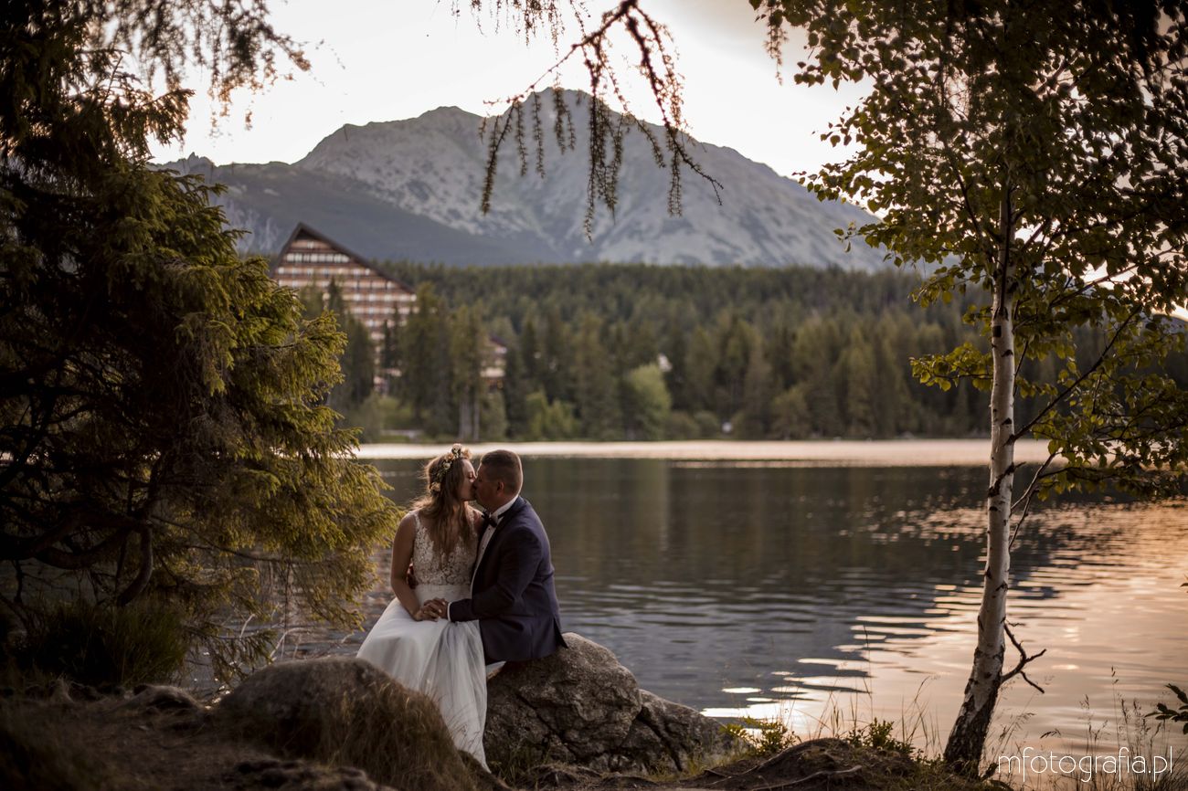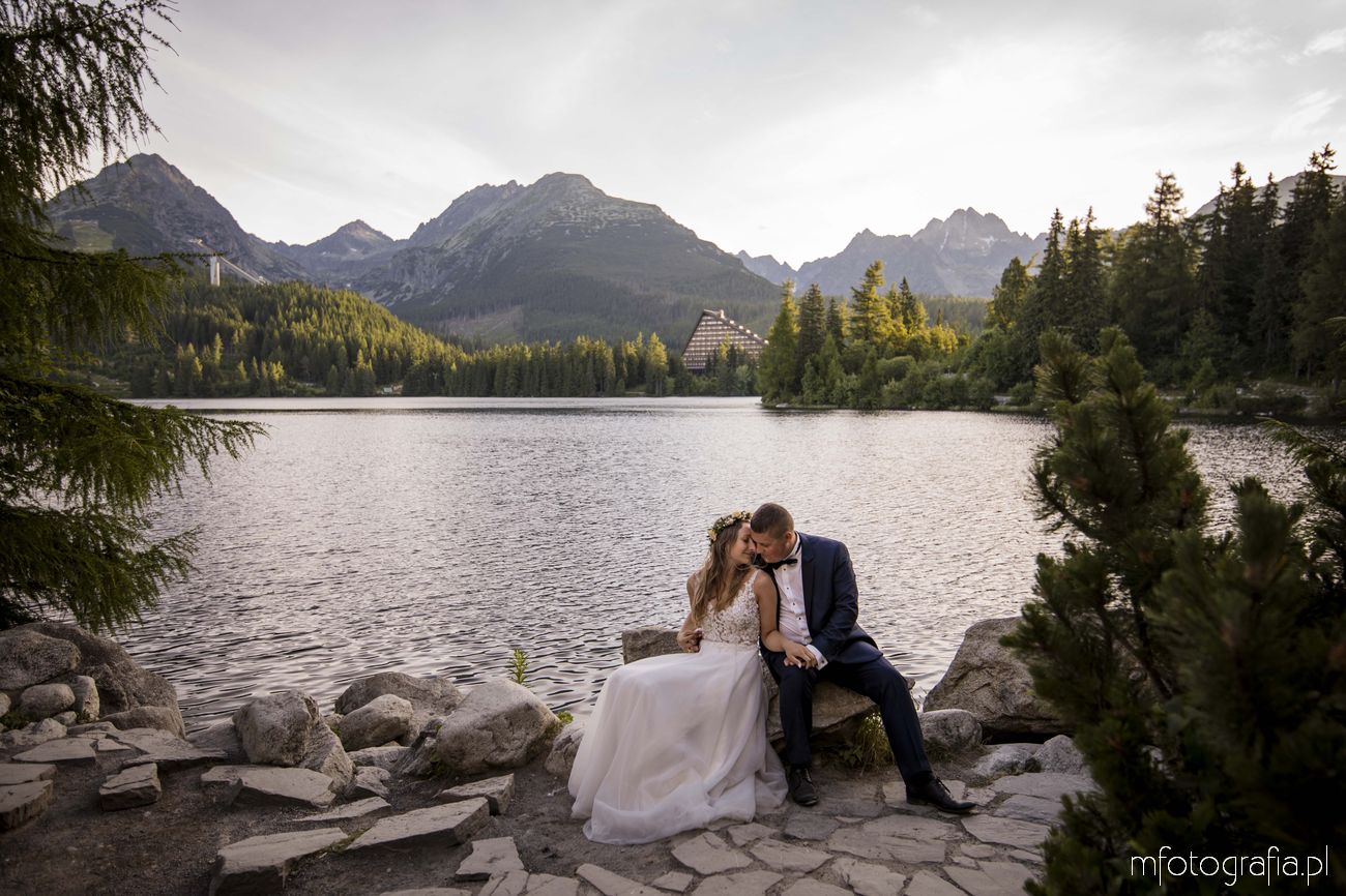 Sesja ślubna nad Szczyrbskim Jeziorem na Słowacji o wschodzie słońca