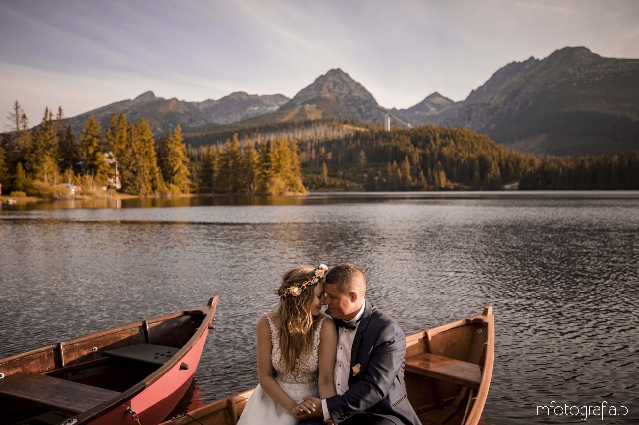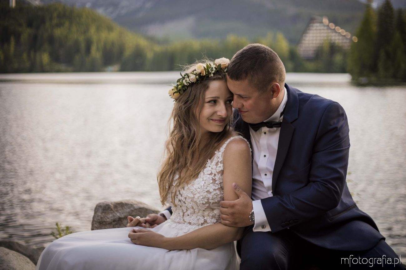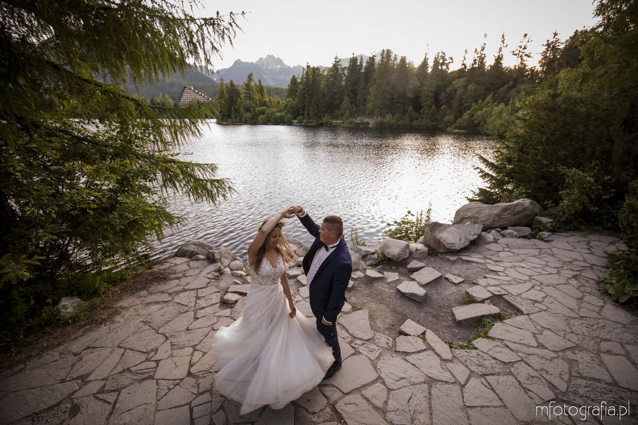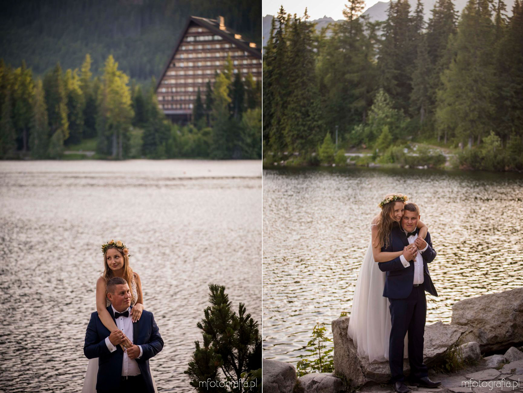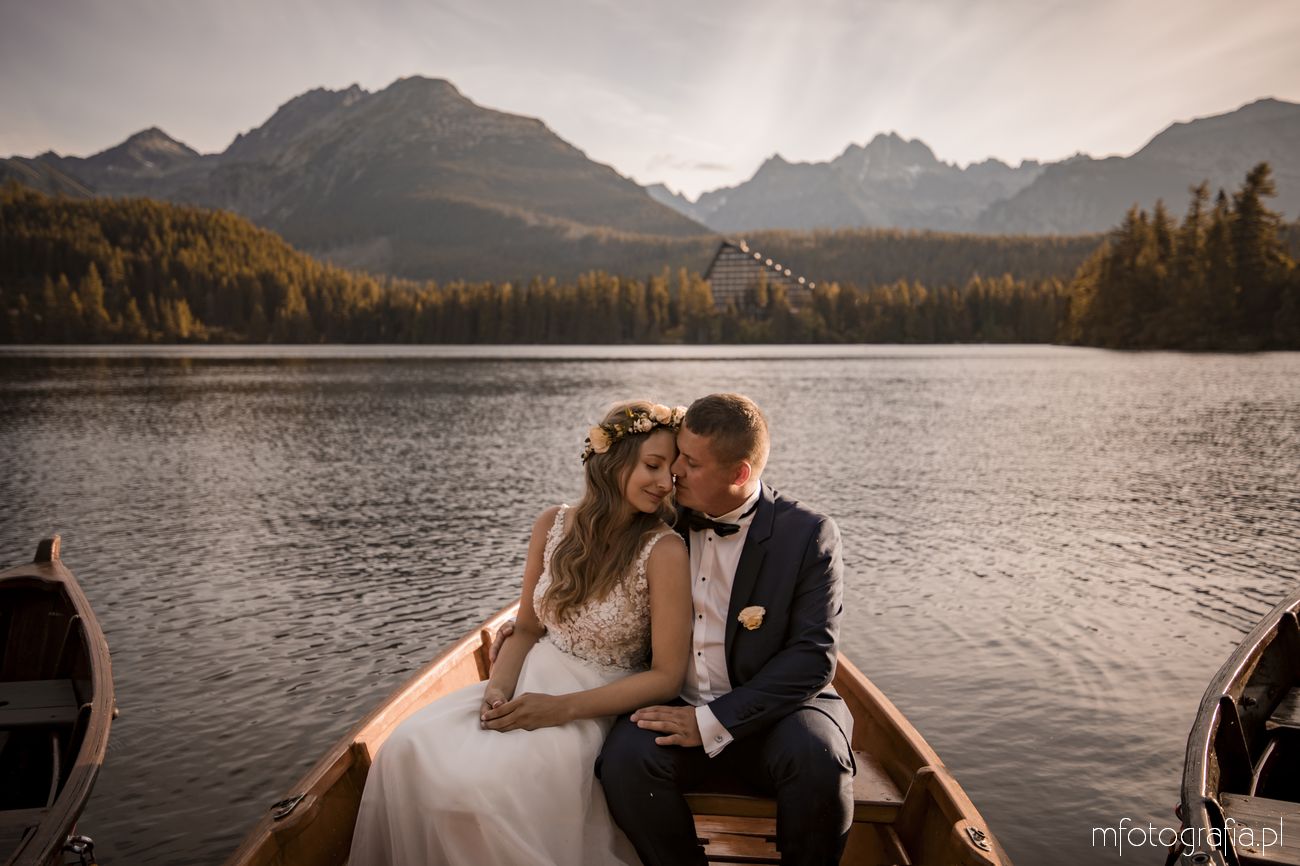 Sesja ślubna nad Szczyrbskim Jeziorem na Słowacji o wschodzie słońca
