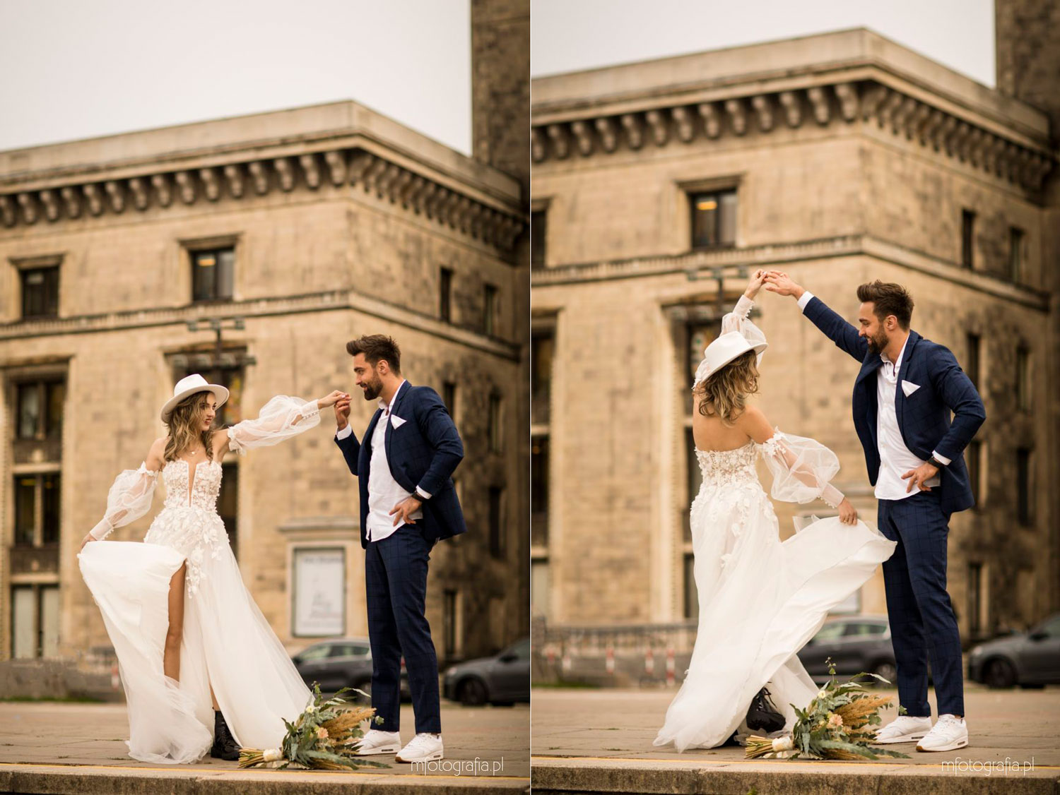 Nowoczesna sesja ślubna w centrum Warszawy w okolicach PKiN