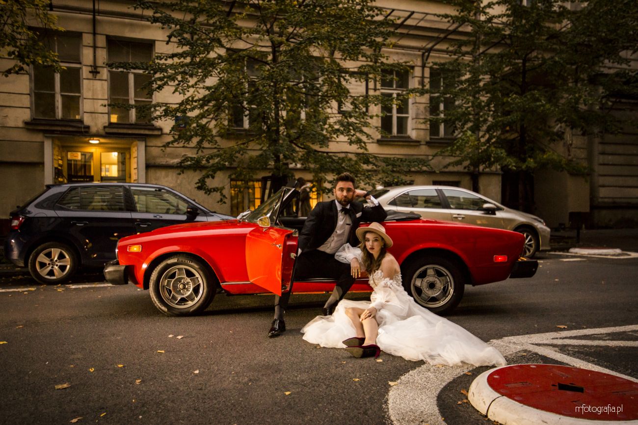Część III – Sesja ślubna na ulicy Pankiewicza, ta najmodniejsza z widokiem na Warszawski PKiN – sesja ślubna z czerwonym klasycznym kabrioletem