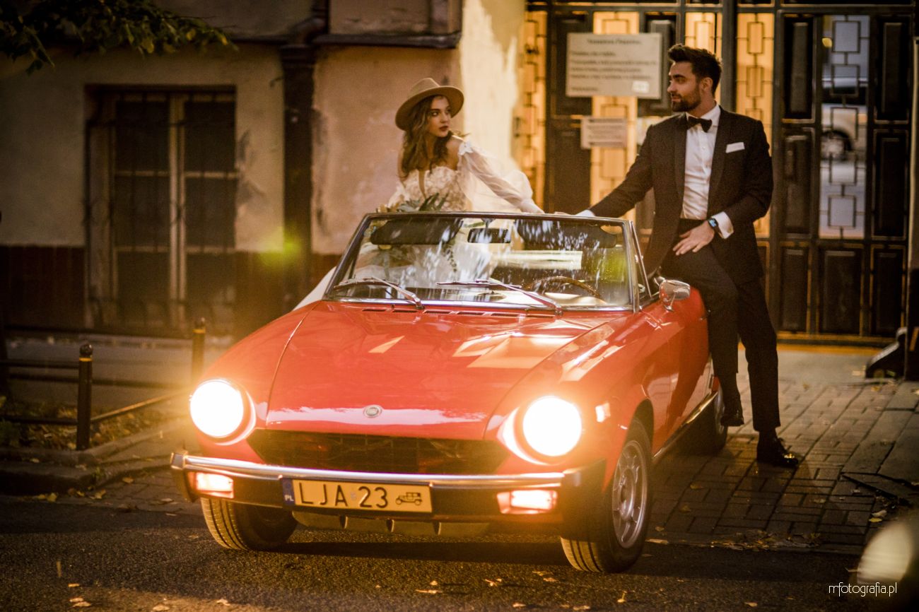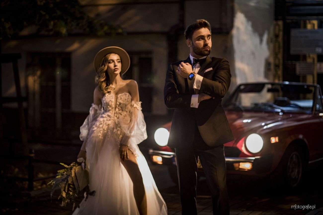 Nadszedł czas na ostatnią odsłonę tego cudownego dnia zdjęciowego. To będzie najlepsza, najbardziej elegancka i prze kozacka odmiana nocnej sesji ślubnej, jaką robiłam w Warszawie. Cytując moich kochanych modeli, zdjęcia mają ciepły włoski klimat, który udało mi się stworzyć u nas w stolicy. Kluczową rolę odegrał tu fascynujący klasyczny samochód w kolorze krwistej czerwieni. Blask nocnych latarni, pałac w tle i stylizacje rodem z ekranu kina, nadały filmowego klimatu. Ach mogłabym się tak rozwodzić godzinami nad tym, co tu zagrało… Mam po prostu niesamowite szczęście do poznawania cudownych ludzi, którzy za tym wszystkim stoją. Oglądajcie więc, a na dole wpisu podam namiary na każdy szczegół, byście mogli i Wy skorzystać z tych cudowności na Waszym ślubie lub sesji.