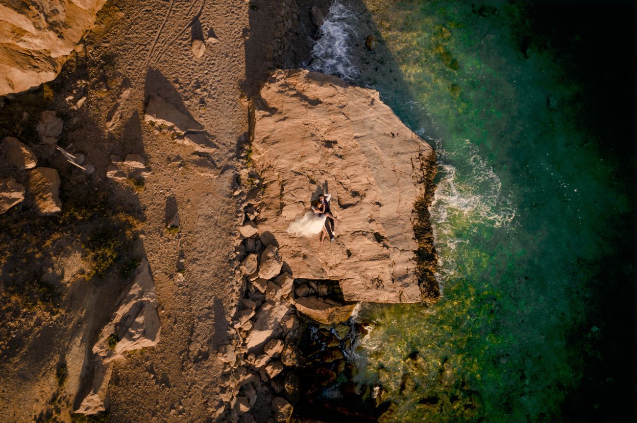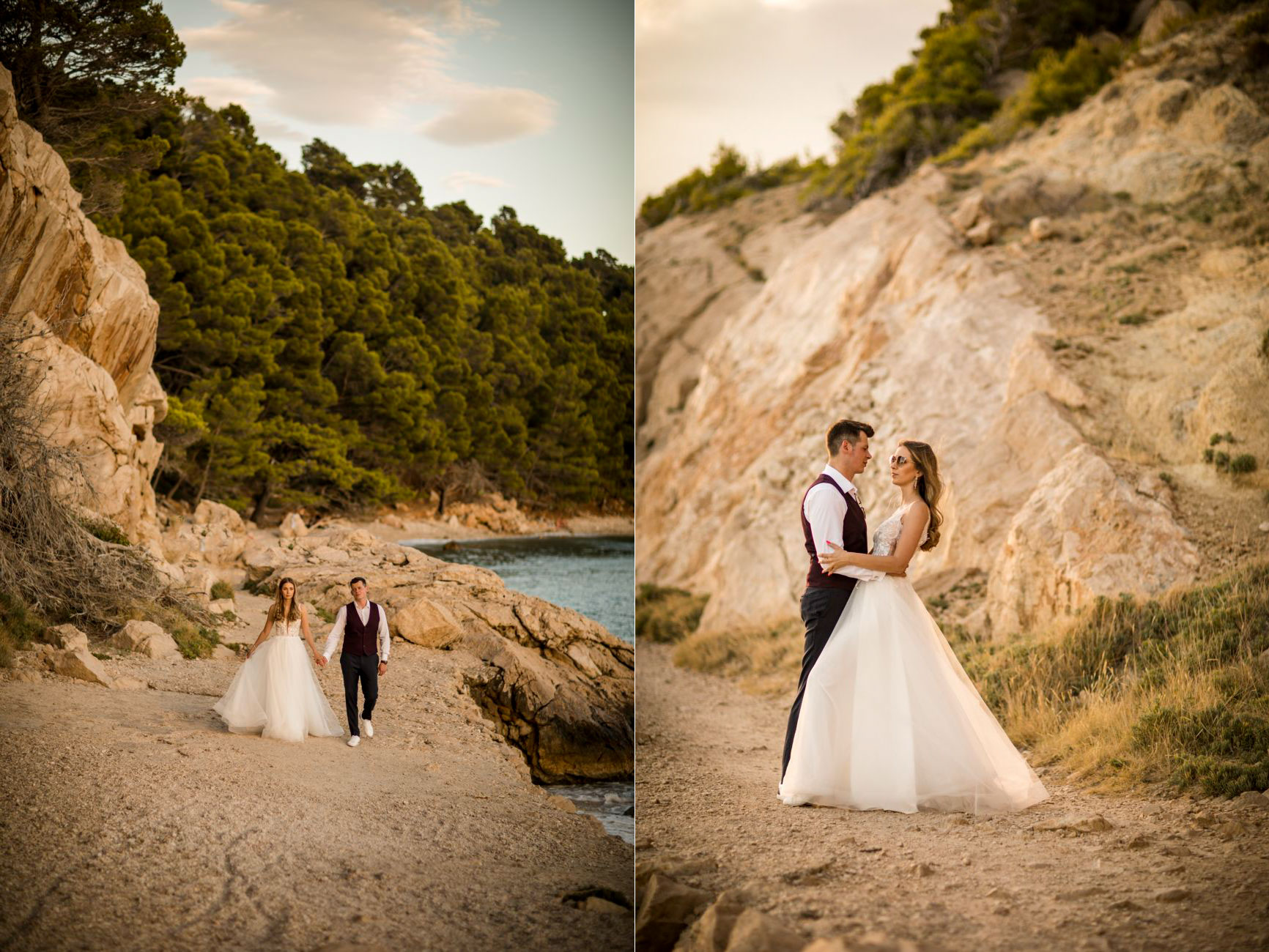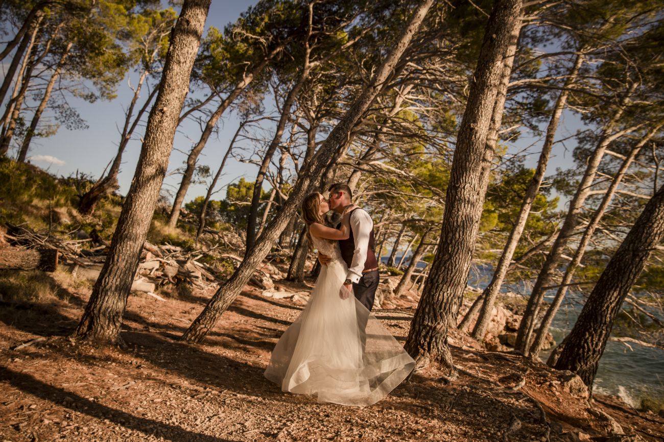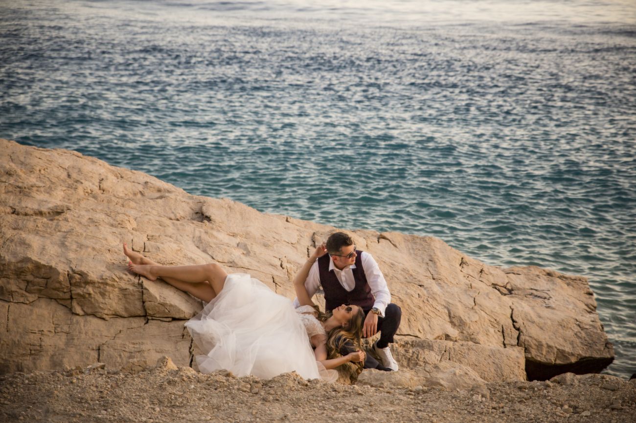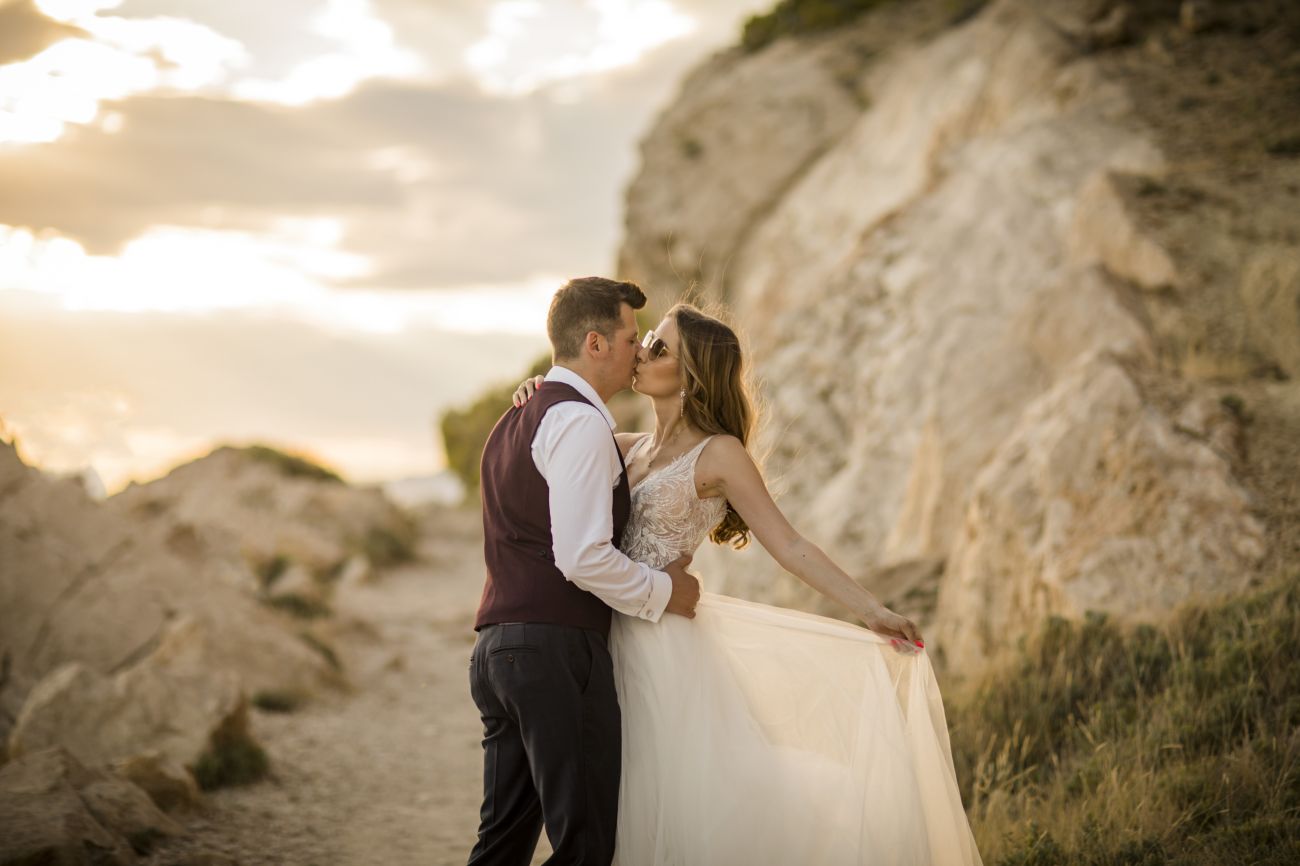 Ślubne sesje zagraniczne zazwyczaj rozkładamy na kilka części i miejsc. Pierwsza część sesji odbyła się pierwszego dnia o zachodzie słońca. Wybraliśmy wspaniałe miejsce, w otoczeniu morza i skalistych wybrzeży Makarskiej Riwiery w Chorwacji. Oto efekty: