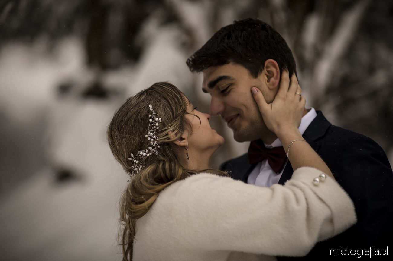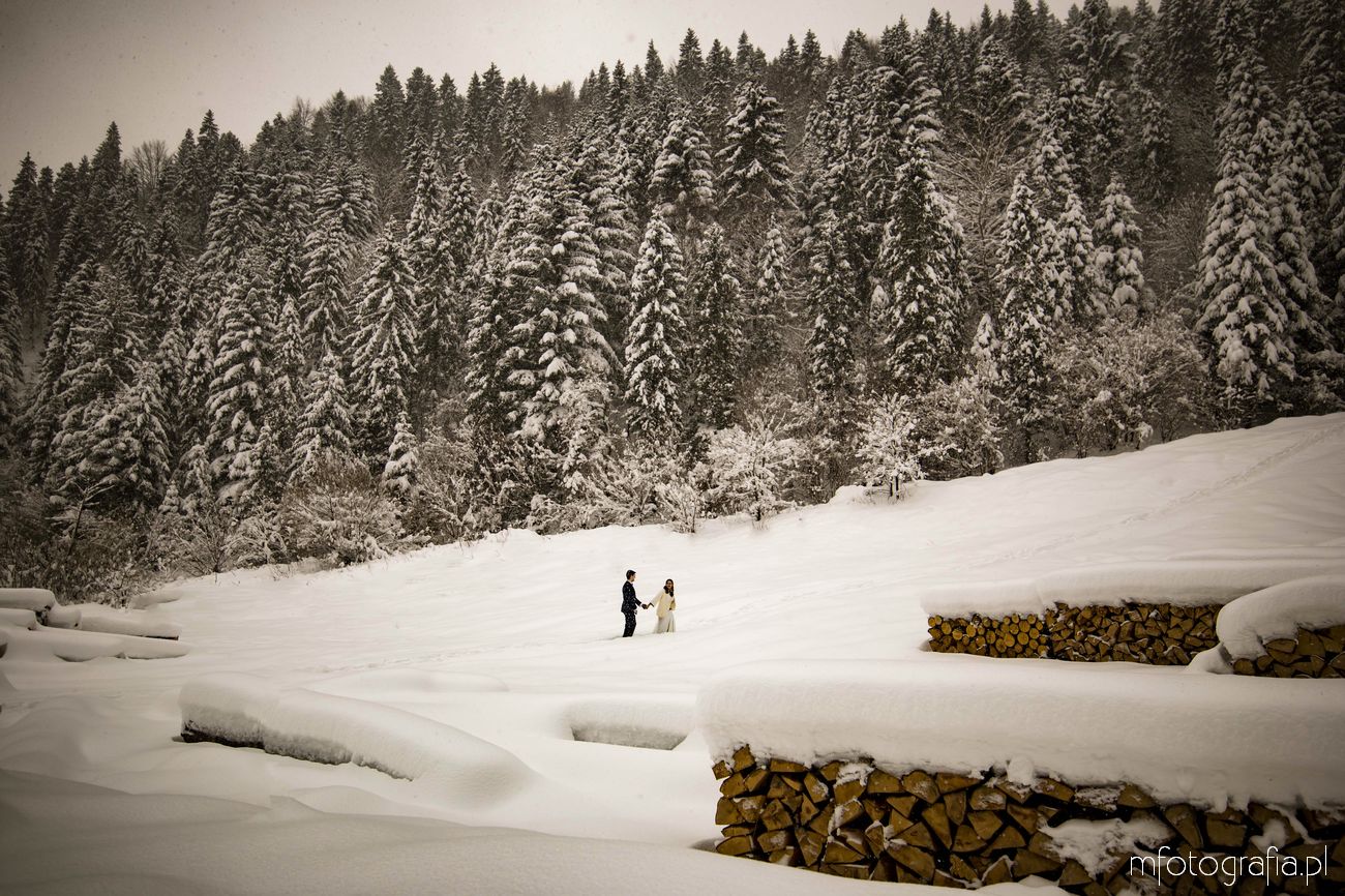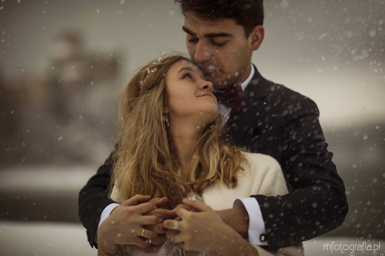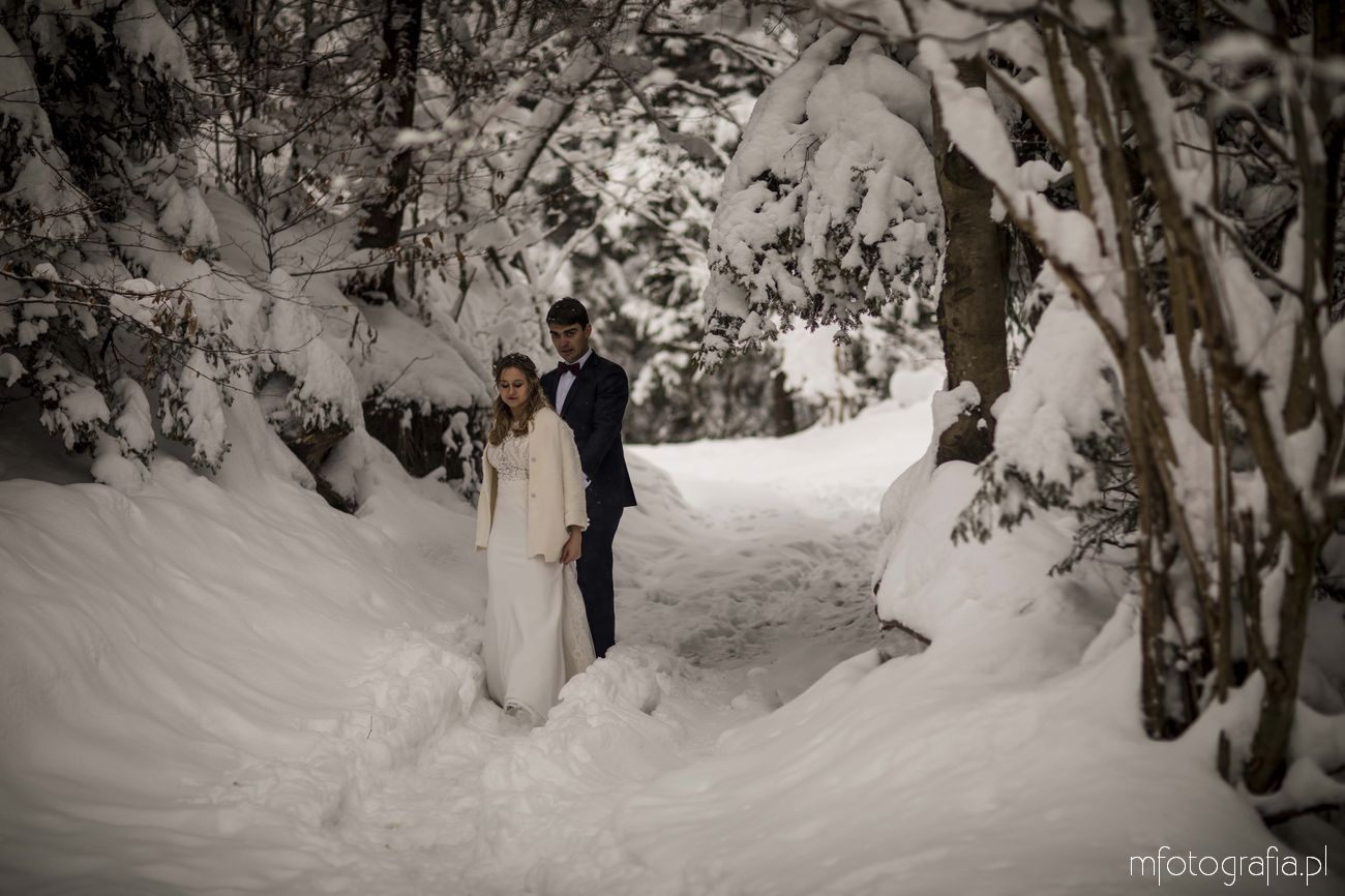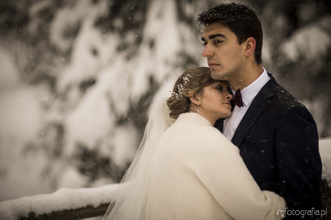 Dominika i Piotr pobrali się pod koniec listopada i postanowili, że ich sesję poślubną zrealizujemy w zimowej scenerii górskich Pienin. Śnieg dopisał aż nadto i warunki były dosyć trudne. Duża wilgotność i ciągłe opady śniegu nie pomagały w czasie dnia zdjęciowego. Nie poddaliśmy się jednak i powstały te oto piękne kadry.