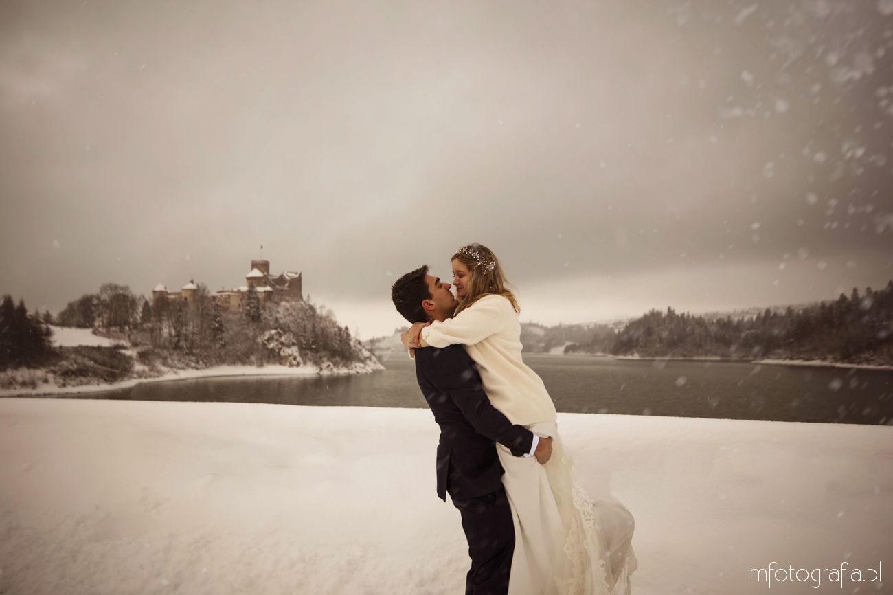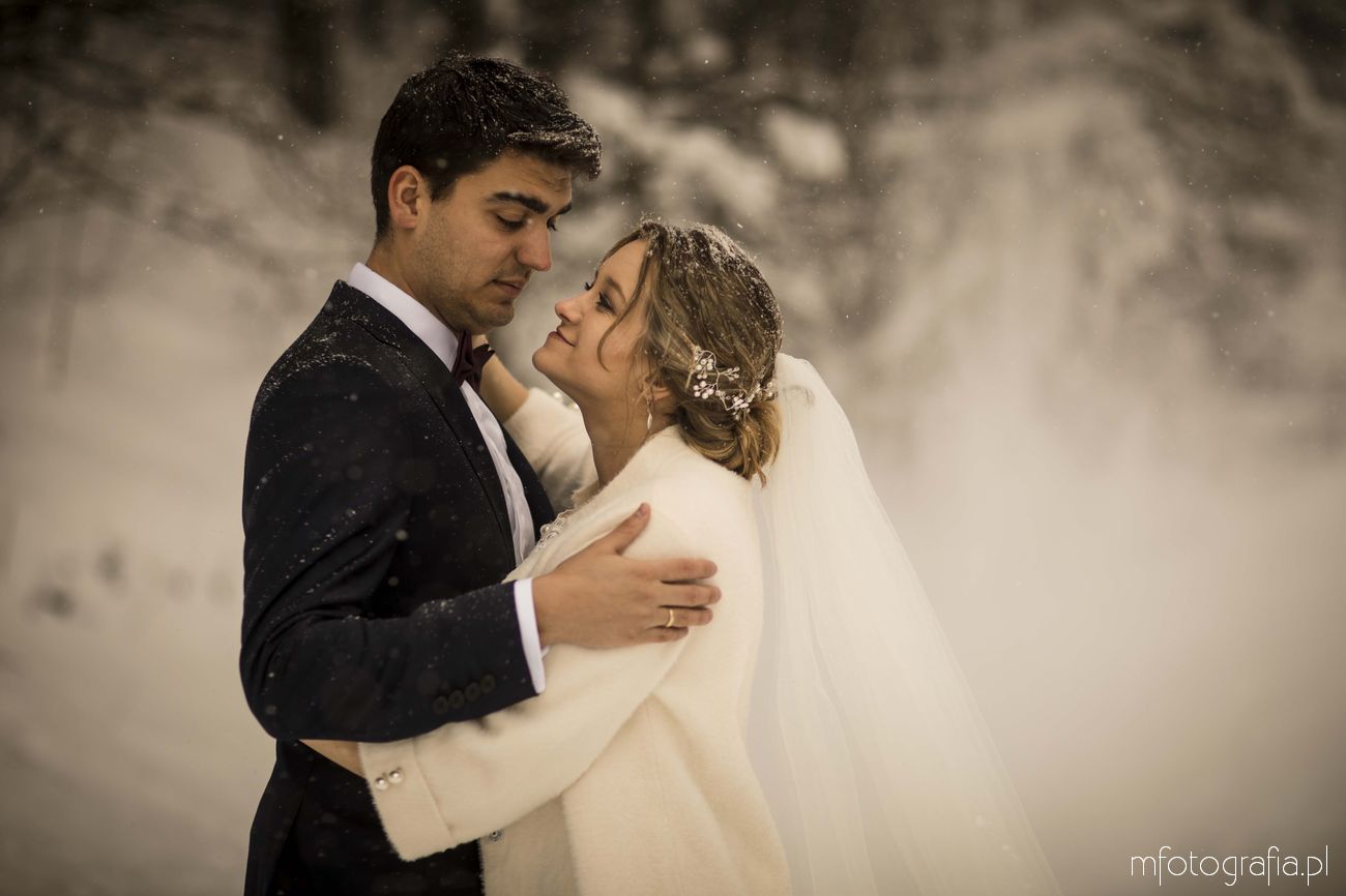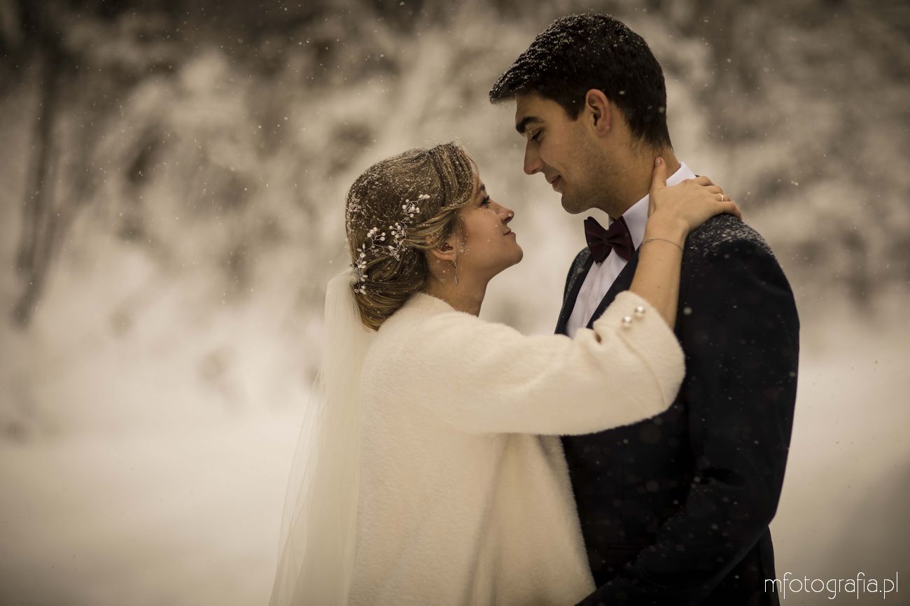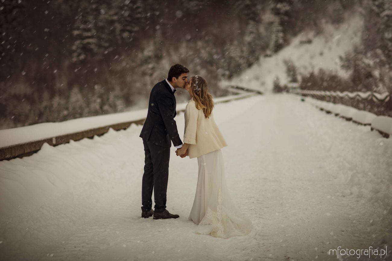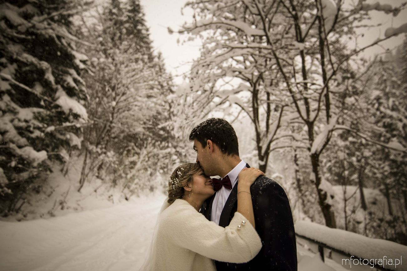 Dominika i Piotr pobrali się pod koniec listopada i postanowili, że ich sesję poślubną zrealizujemy w zimowej scenerii górskich Pienin. Śnieg dopisał aż nadto i warunki były dosyć trudne. Duża wilgotność i ciągłe opady śniegu nie pomagały w czasie dnia zdjęciowego. Nie poddaliśmy się jednak i powstały te oto piękne kadry.