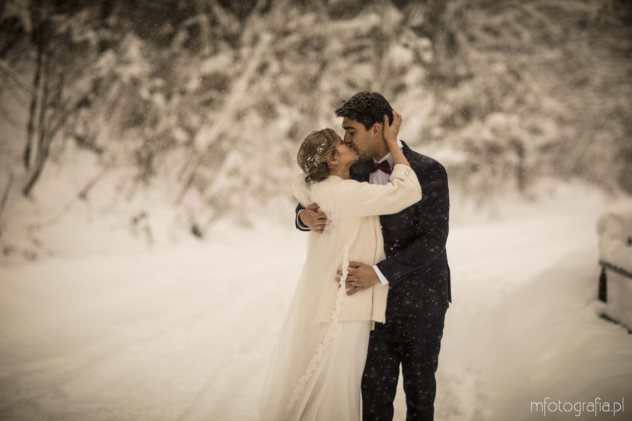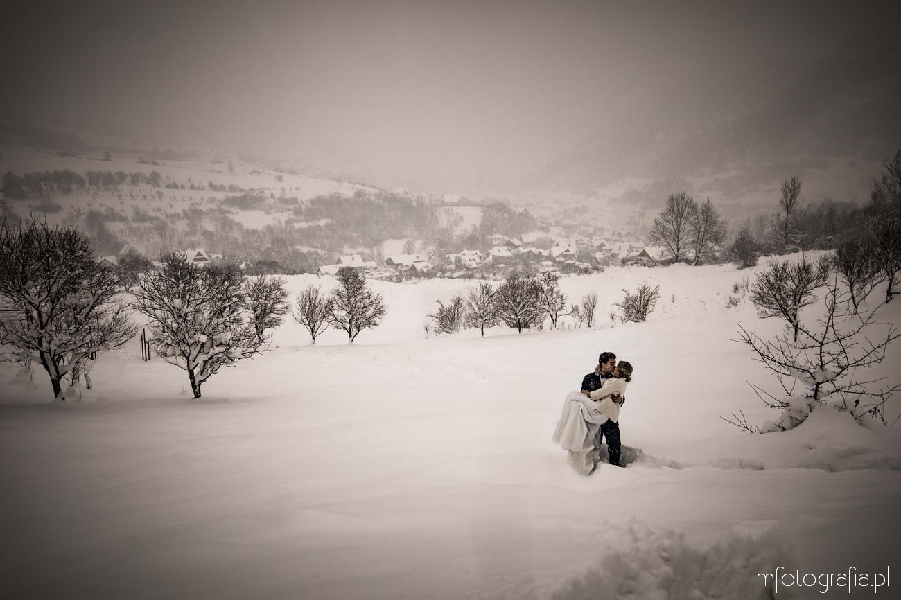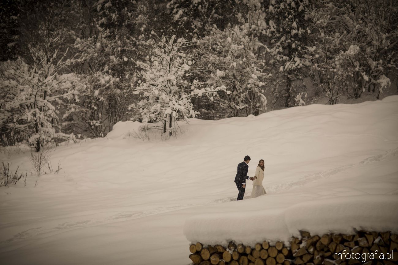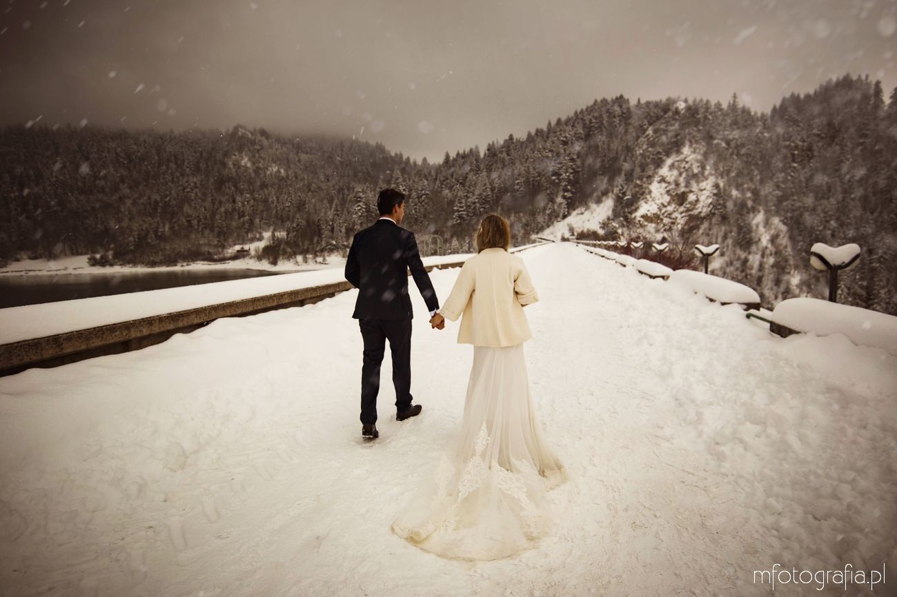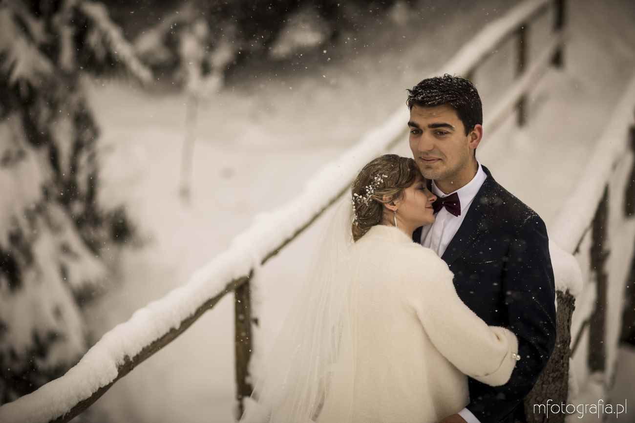 Dominika i Piotr pobrali się pod koniec listopada i postanowili, że ich sesję poślubną zrealizujemy w zimowej scenerii górskich Pienin. Śnieg dopisał aż nadto i warunki były dosyć trudne. Duża wilgotność i ciągłe opady śniegu nie pomagały w czasie dnia zdjęciowego. Nie poddaliśmy się jednak i powstały te oto piękne kadry.