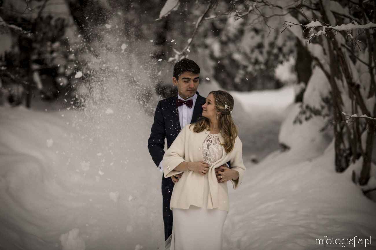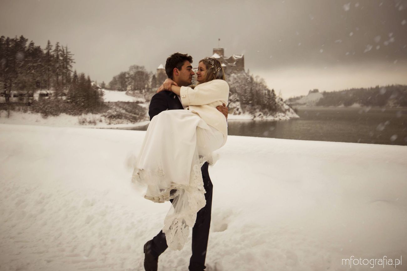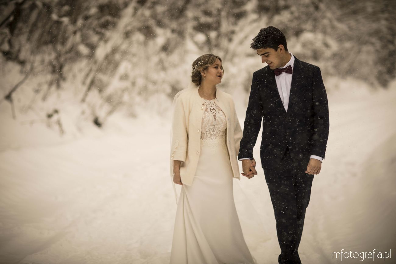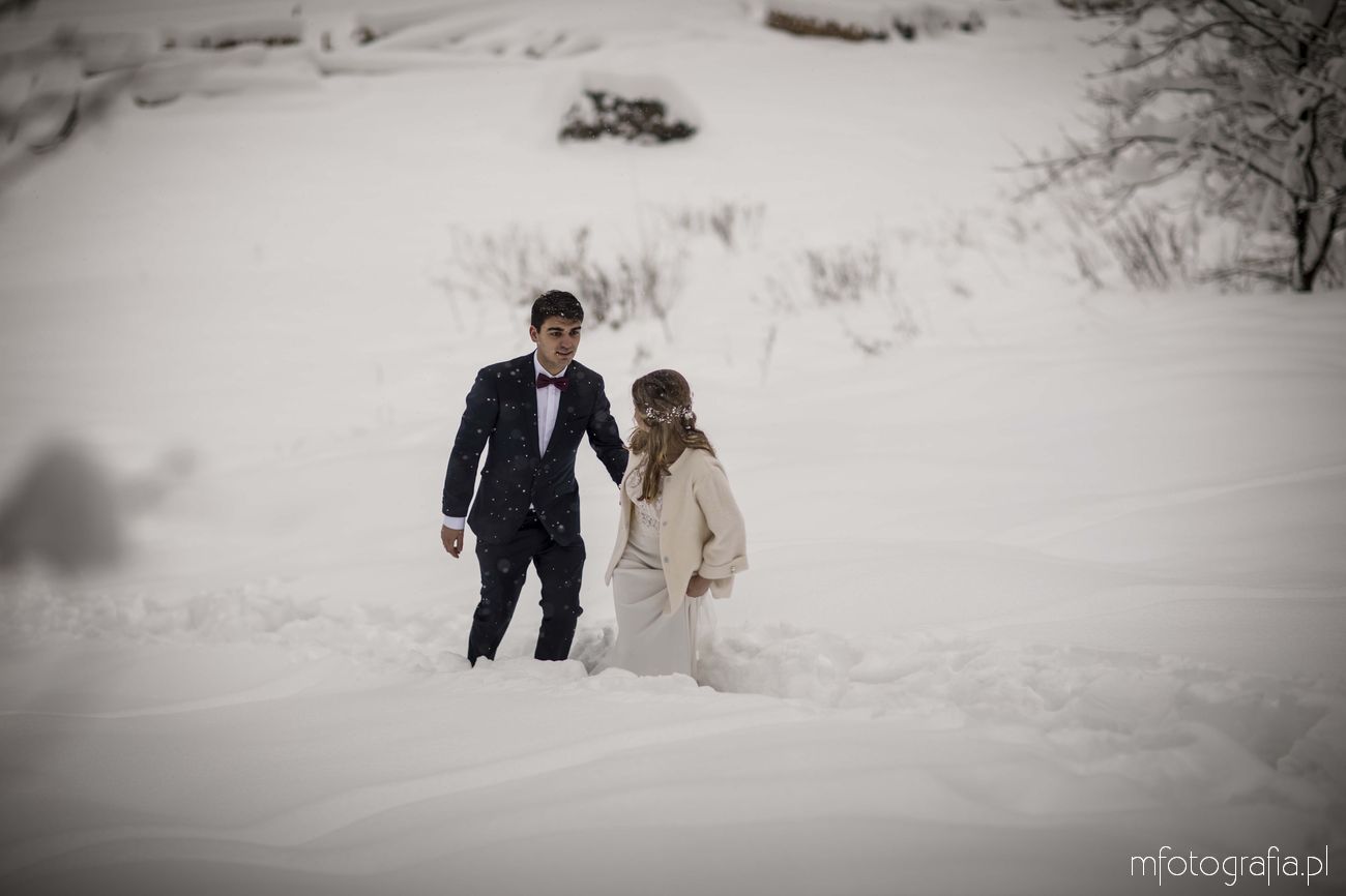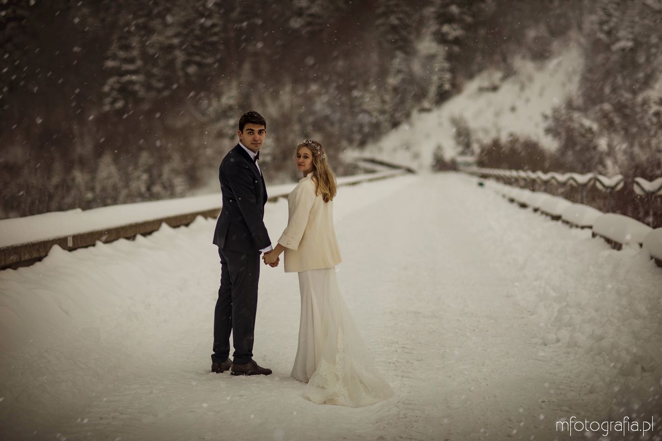 Dominika i Piotr pobrali się pod koniec listopada i postanowili, że ich sesję poślubną zrealizujemy w zimowej scenerii górskich Pienin. Śnieg dopisał aż nadto i warunki były dosyć trudne. Duża wilgotność i ciągłe opady śniegu nie pomagały w czasie dnia zdjęciowego. Nie poddaliśmy się jednak i powstały te oto piękne kadry.