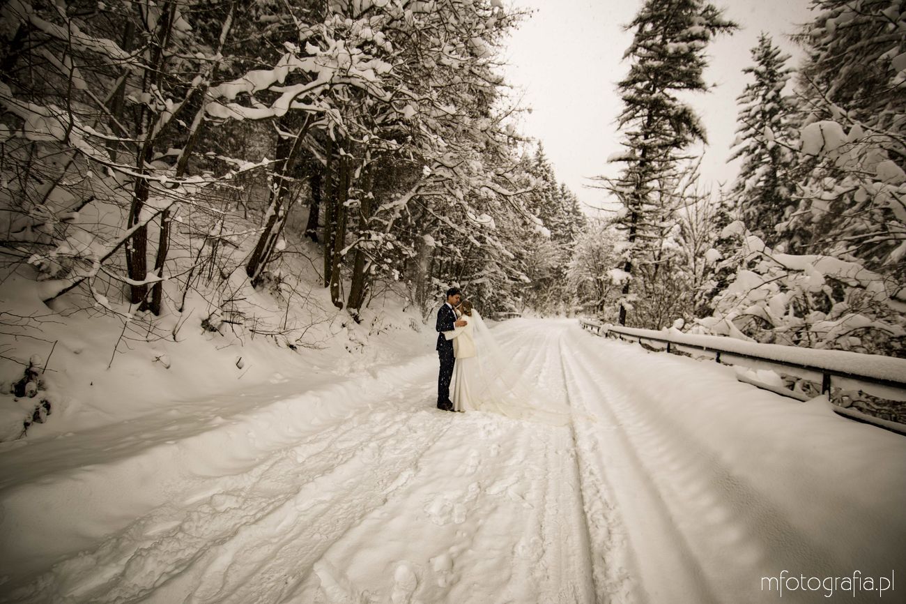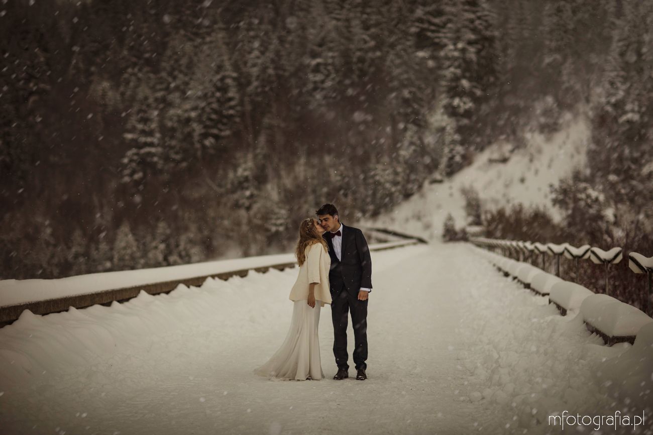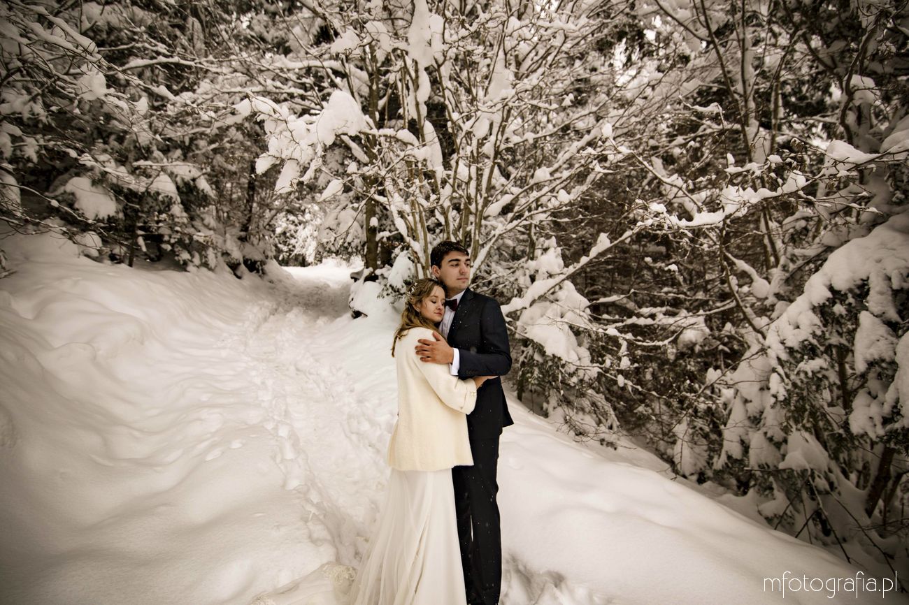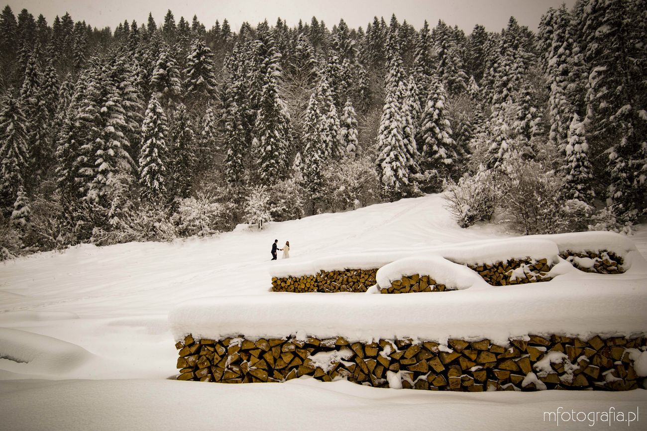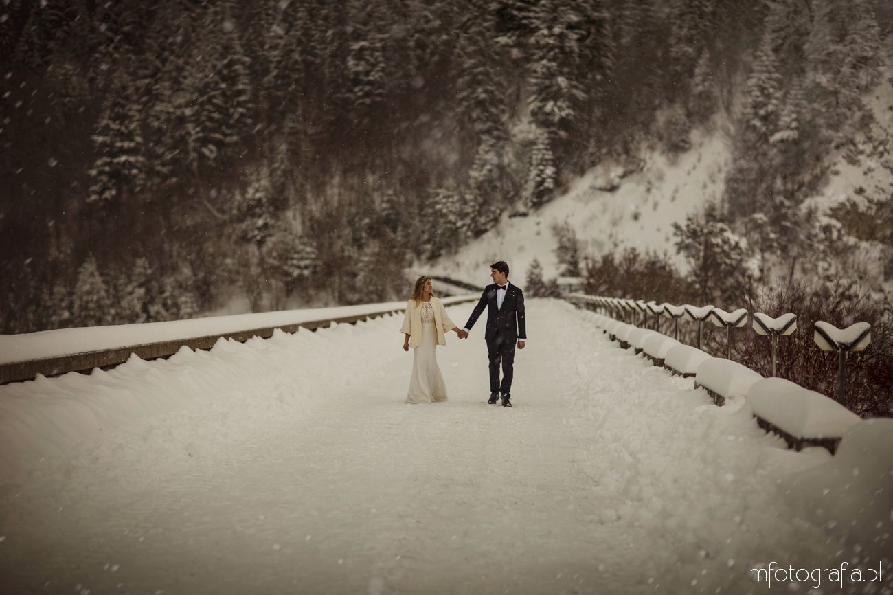 Dominika i Piotr pobrali się pod koniec listopada i postanowili, że ich sesję poślubną zrealizujemy w zimowej scenerii górskich Pienin. Śnieg dopisał aż nadto i warunki były dosyć trudne. Duża wilgotność i ciągłe opady śniegu nie pomagały w czasie dnia zdjęciowego. Nie poddaliśmy się jednak i powstały te oto piękne kadry.