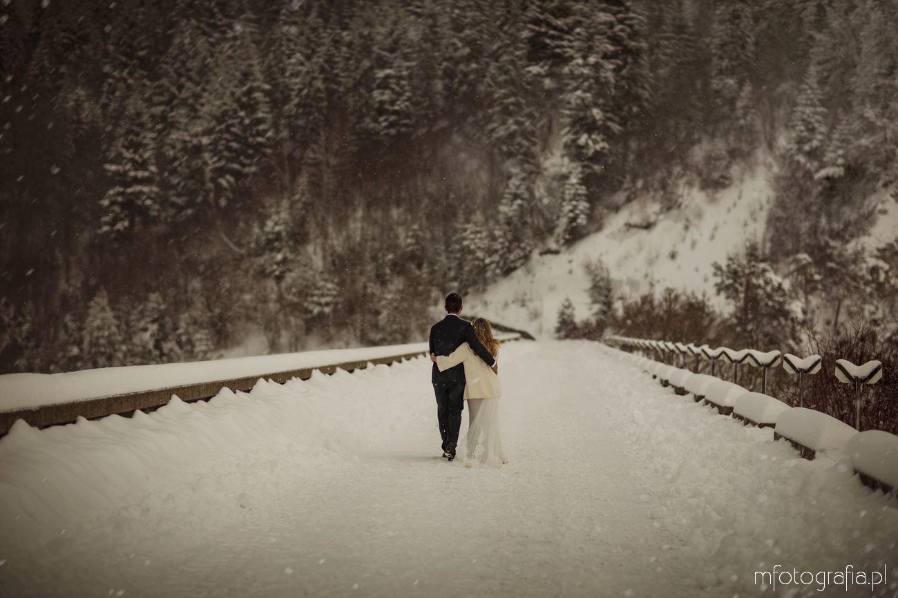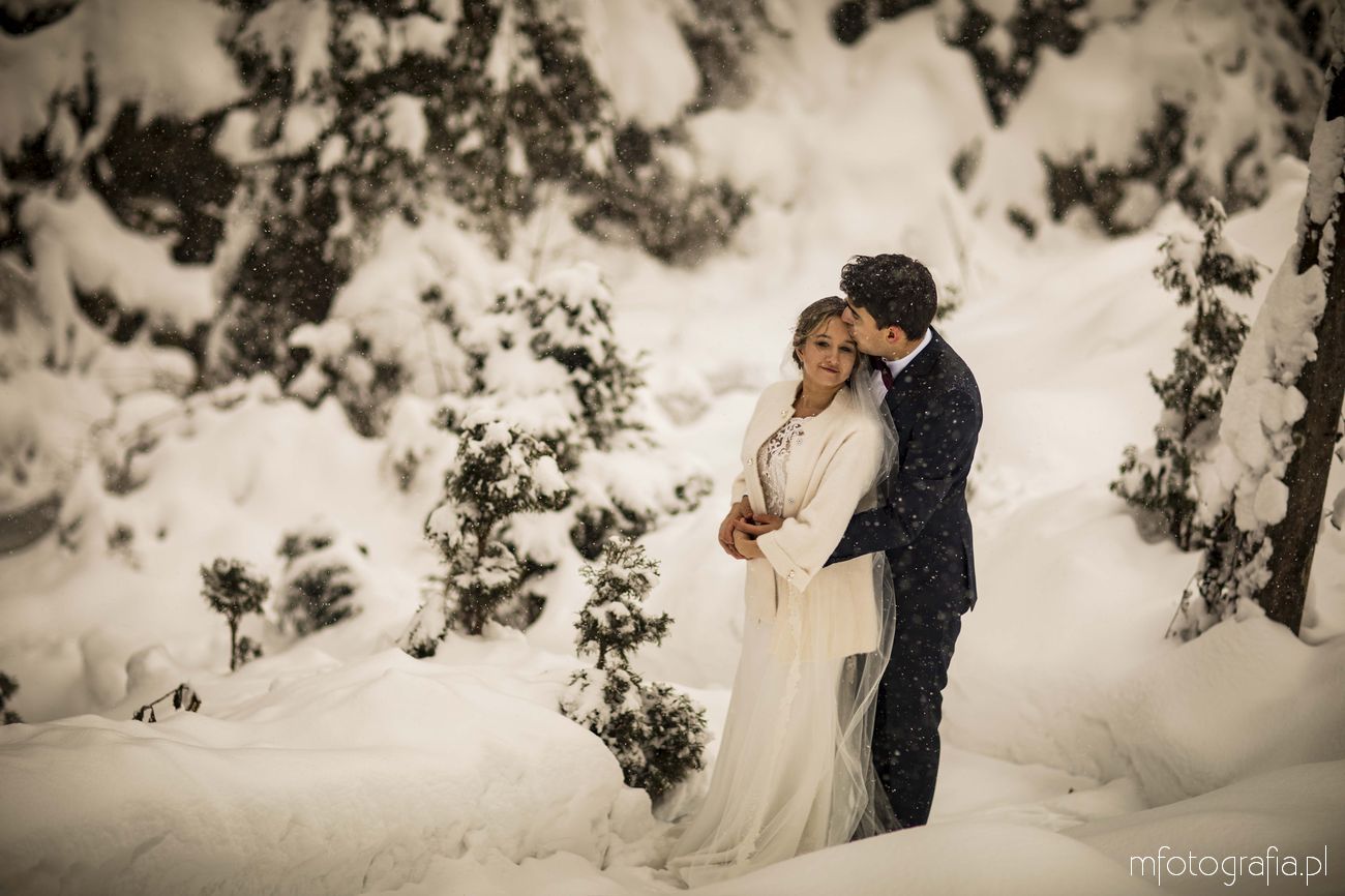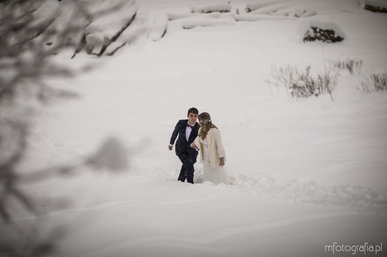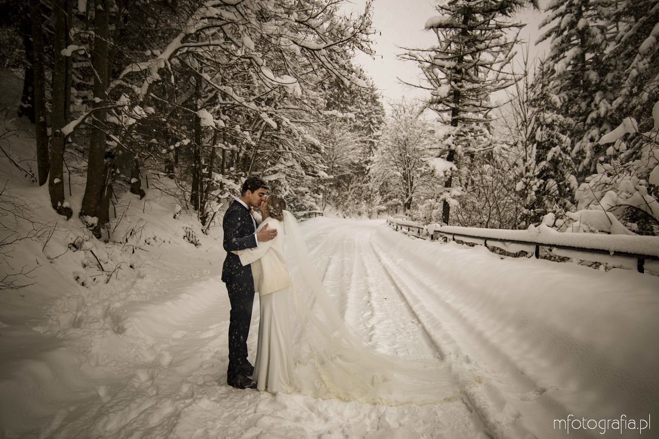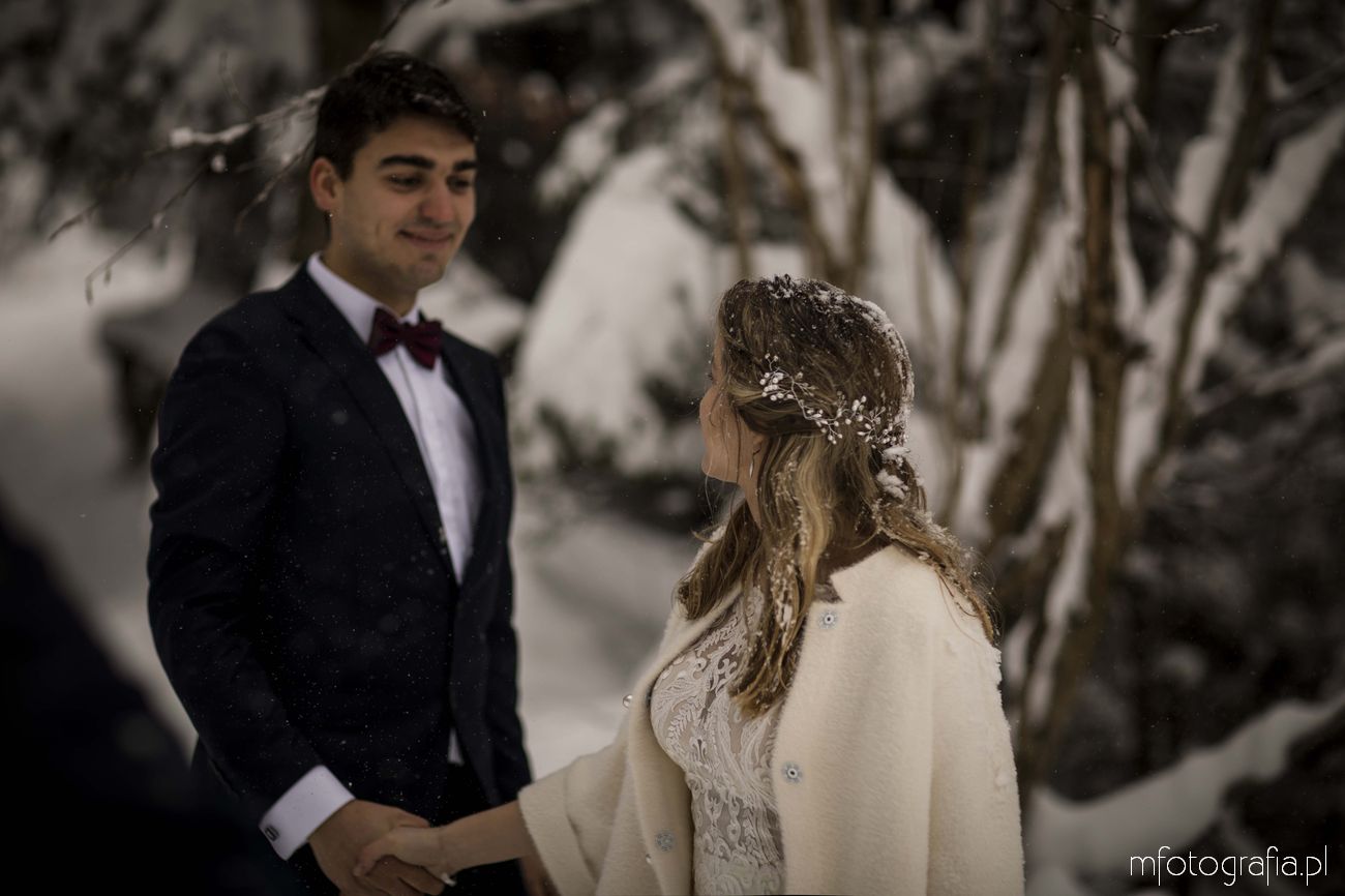 Dominika i Piotr pobrali się pod koniec listopada i postanowili, że ich sesję poślubną zrealizujemy w zimowej scenerii górskich Pienin. Śnieg dopisał aż nadto i warunki były dosyć trudne. Duża wilgotność i ciągłe opady śniegu nie pomagały w czasie dnia zdjęciowego. Nie poddaliśmy się jednak i powstały te oto piękne kadry.
