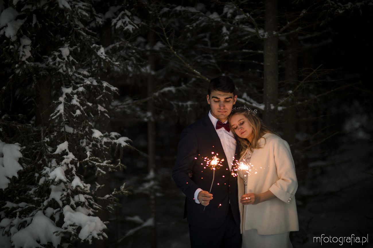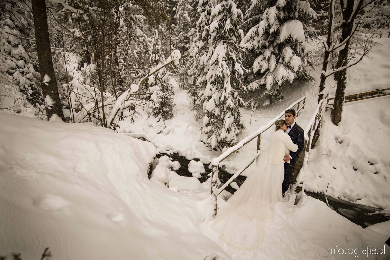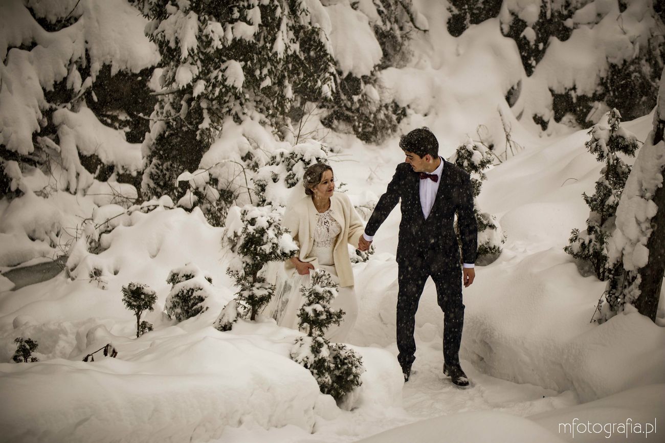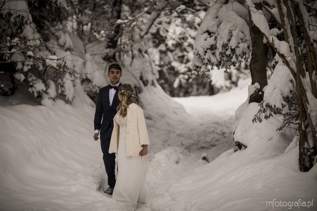 Dominika i Piotr pobrali się pod koniec listopada i postanowili, że ich sesję poślubną zrealizujemy w zimowej scenerii górskich Pienin. Śnieg dopisał aż nadto i warunki były dosyć trudne. Duża wilgotność i ciągłe opady śniegu nie pomagały w czasie dnia zdjęciowego. Nie poddaliśmy się jednak i powstały te oto piękne kadry.