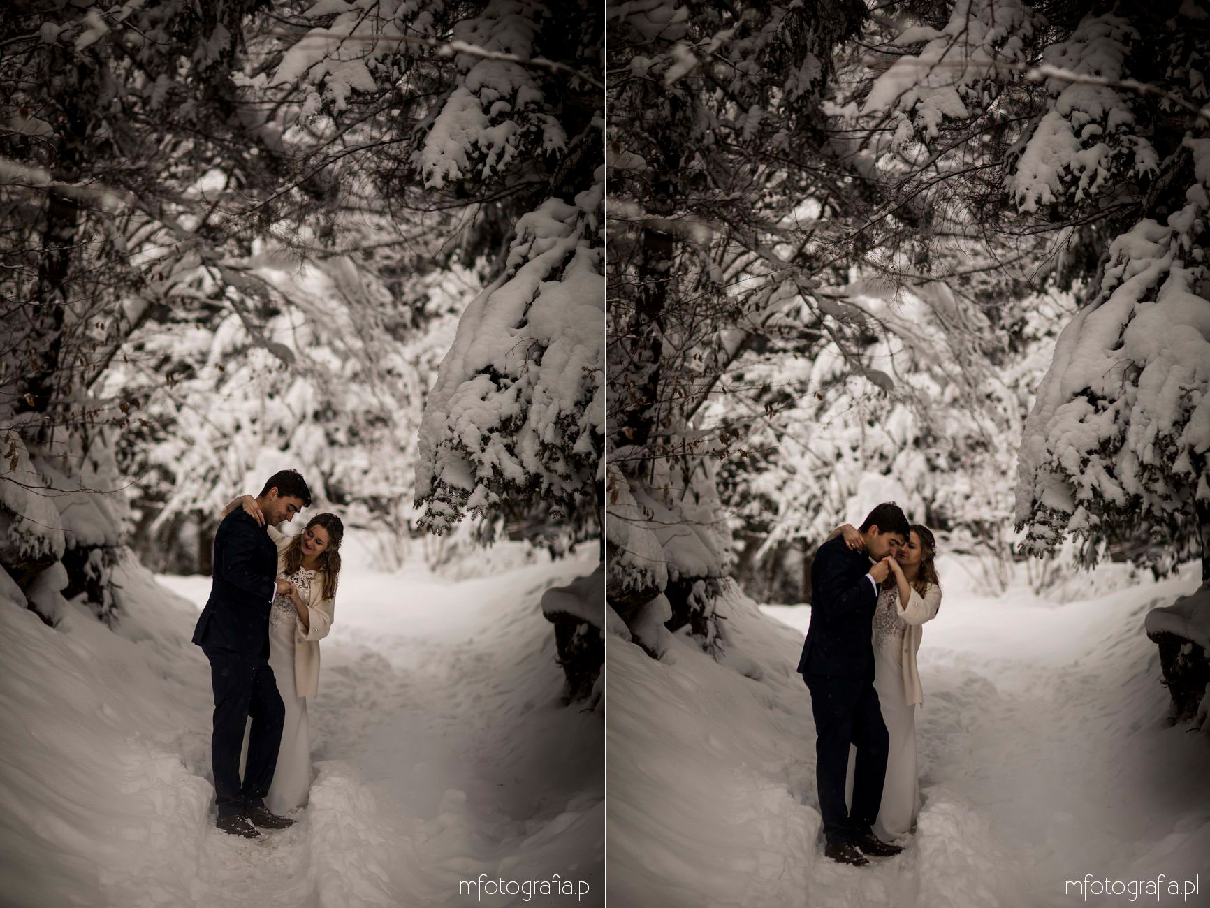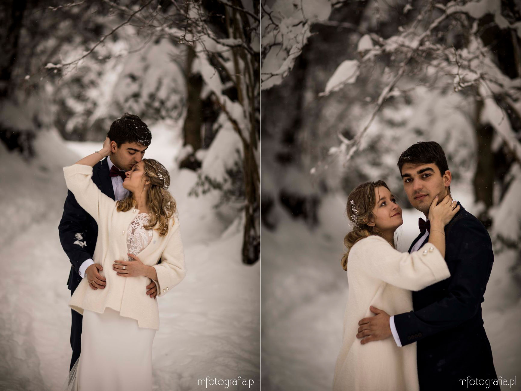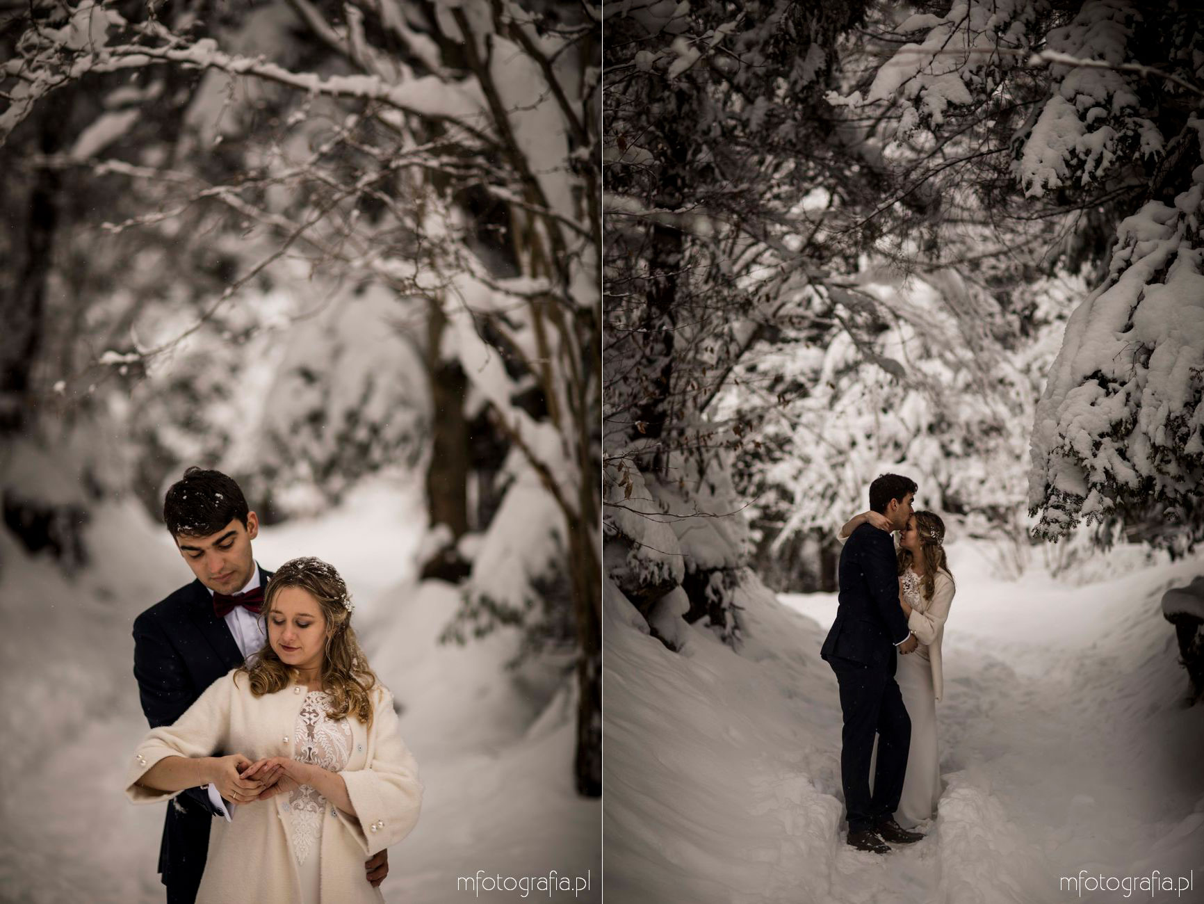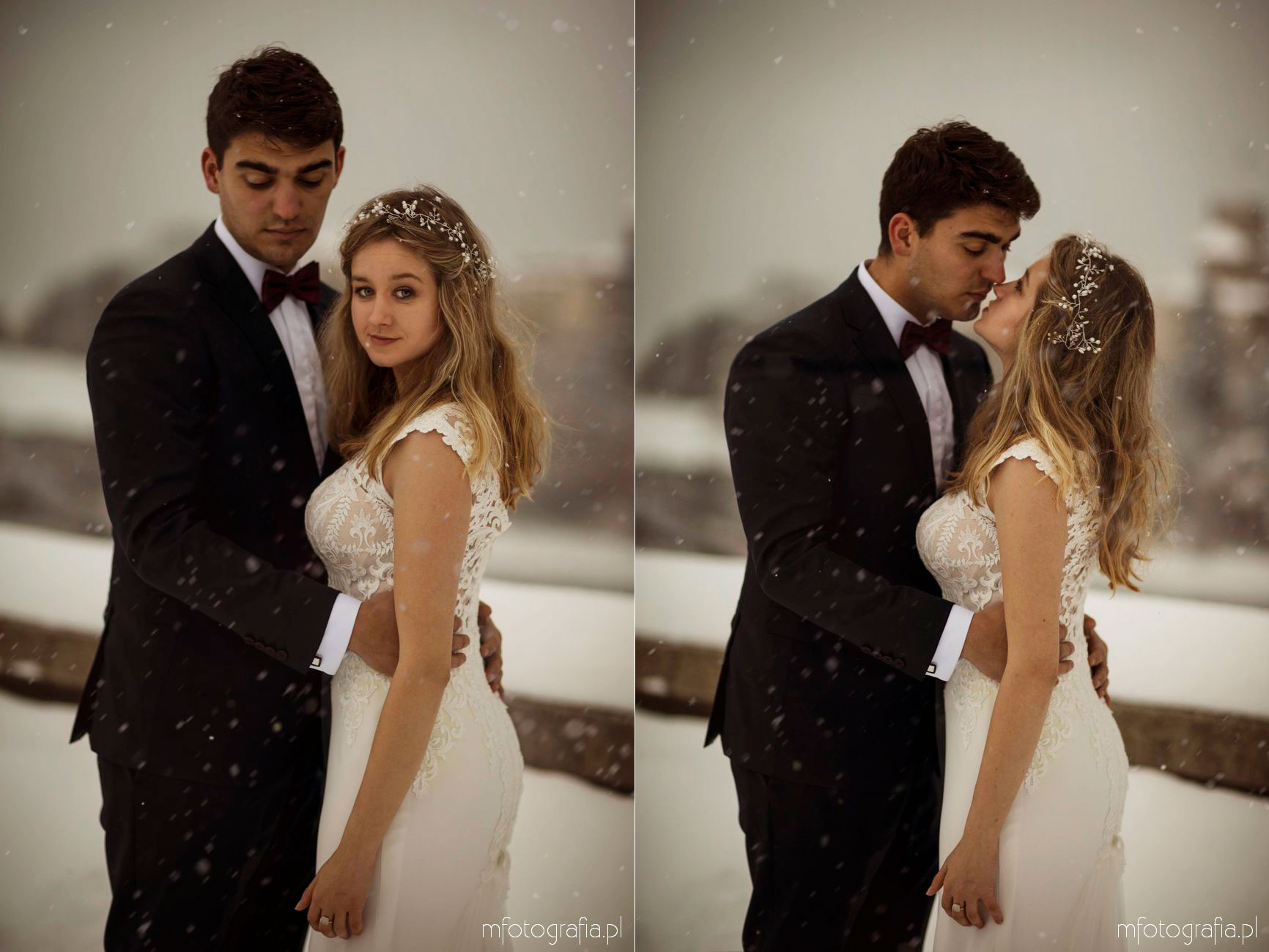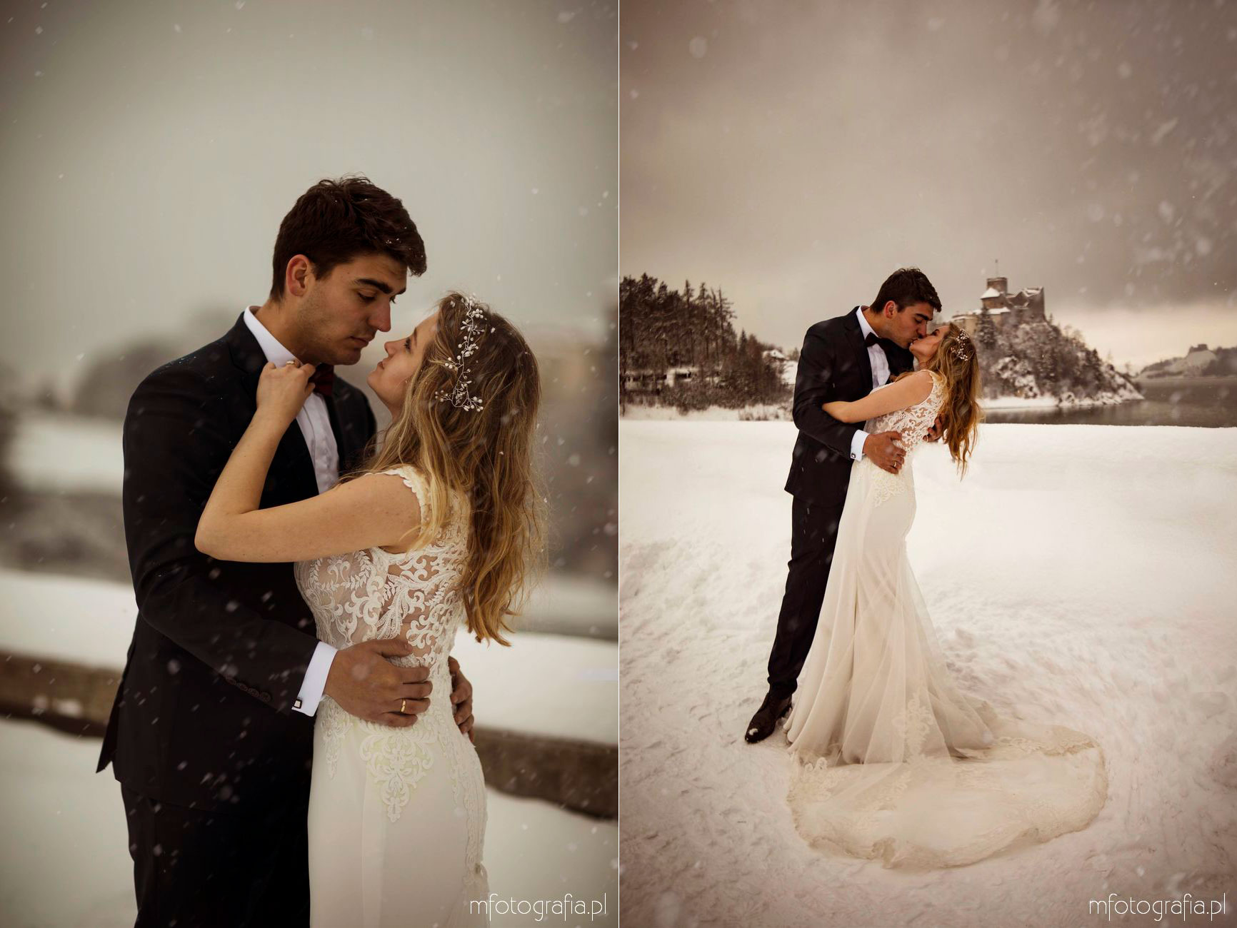 Dominika i Piotr pobrali się pod koniec listopada i postanowili, że ich sesję poślubną zrealizujemy w zimowej scenerii górskich Pienin. Śnieg dopisał aż nadto i warunki były dosyć trudne. Duża wilgotność i ciągłe opady śniegu nie pomagały w czasie dnia zdjęciowego. Nie poddaliśmy się jednak i powstały te oto piękne kadry.