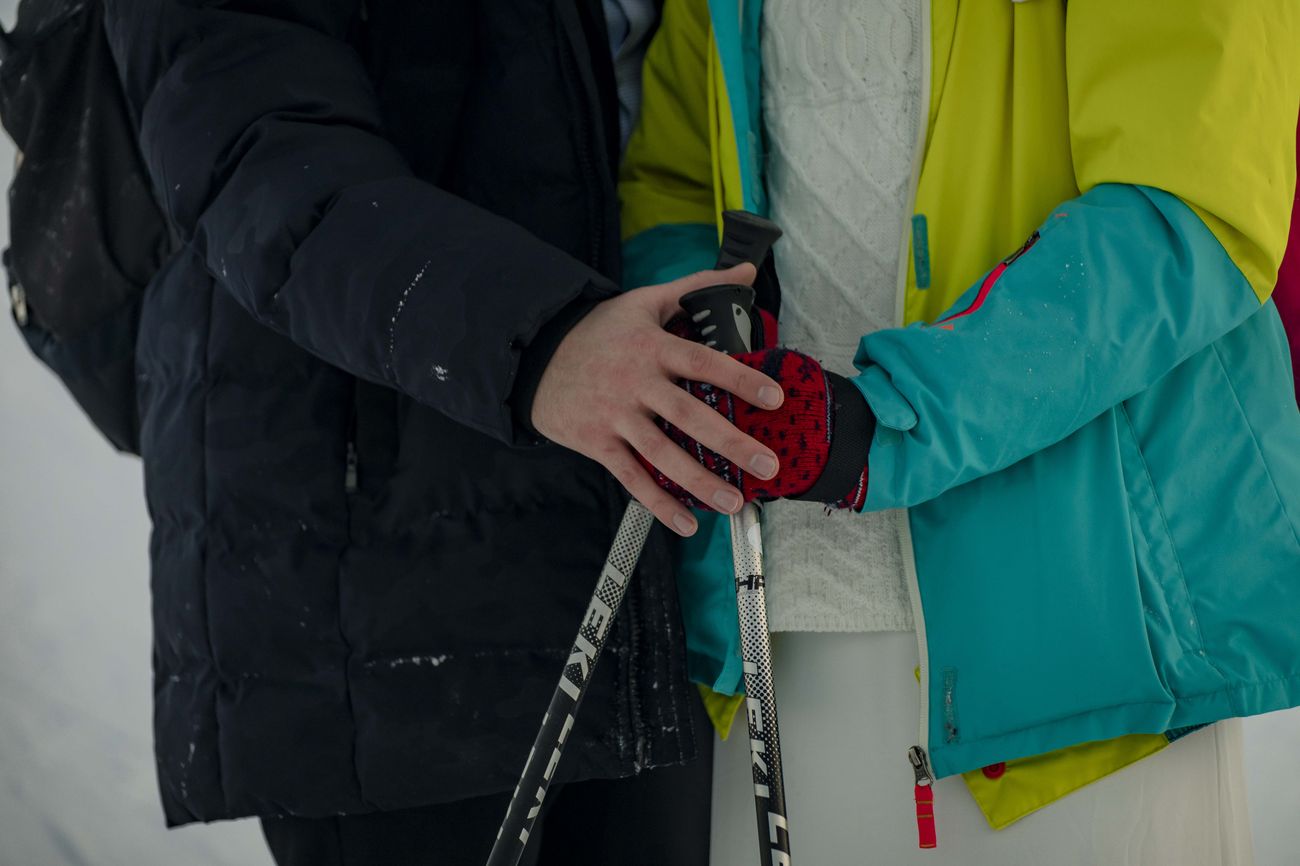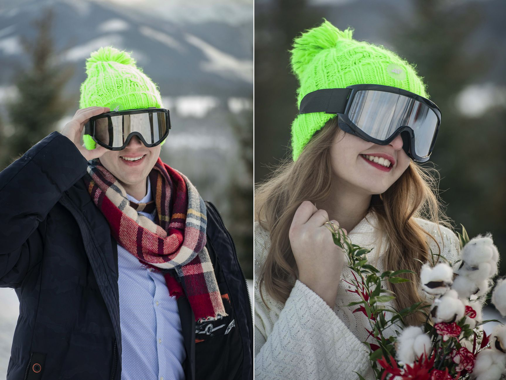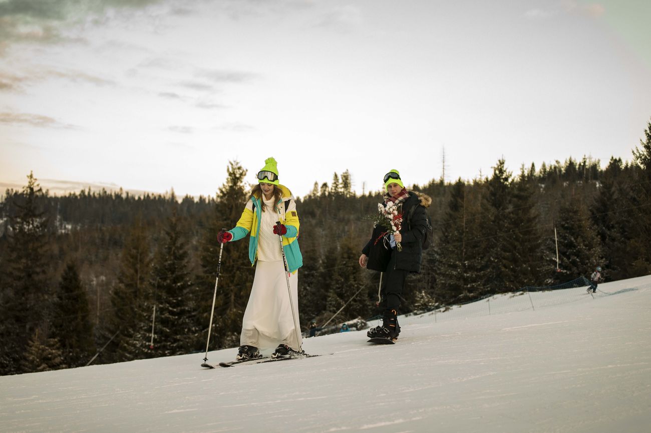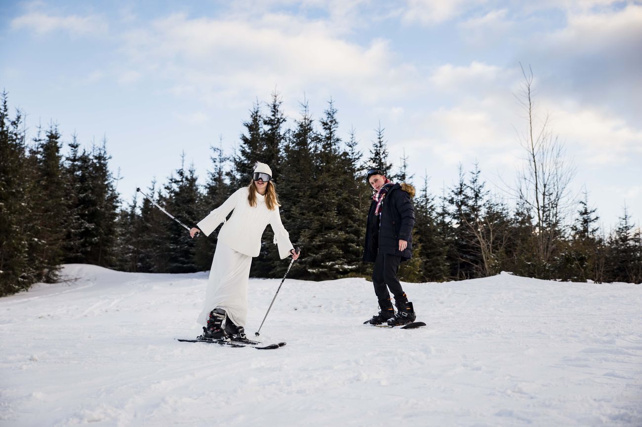 Aj było zimno! Aj mieliśmy tłumy gapiów. Aj pogoda płatała figle. Ale wiecie co? Udało się! 🙂 Po ponad 3 godzinnym oczekiwaniu w samochodzie pod stokiem, aż przejdzie burza śnieżna, dostrzegliśmy szansę na przejaśnienie. Ochoczo wpadliśmy na stok i wjechaliśmy na samą górę. Wtedy to wyszło nawet piękne słońce. Warunki idealne, pomyślałam! Lecimy z zimową sesją. Zobaczcie co poczyniłam:)