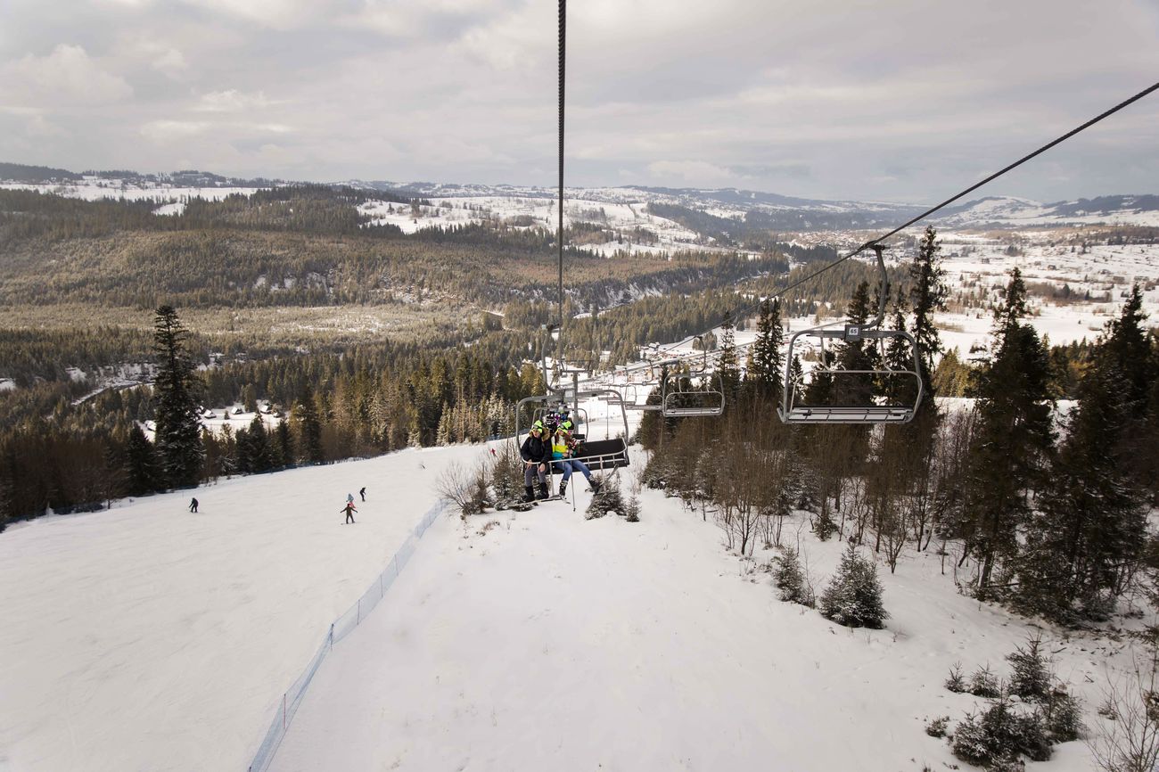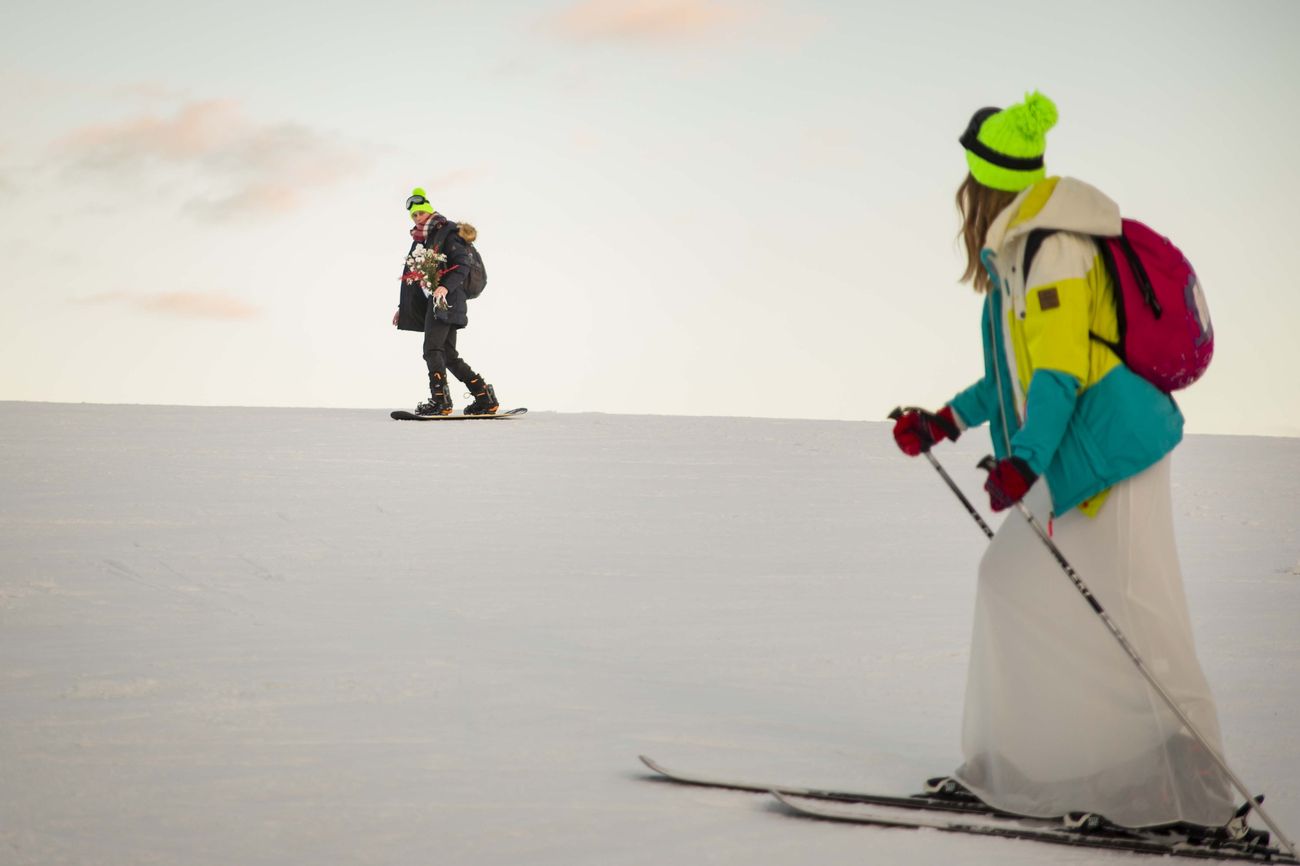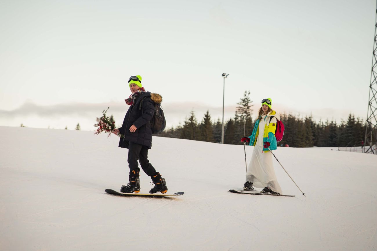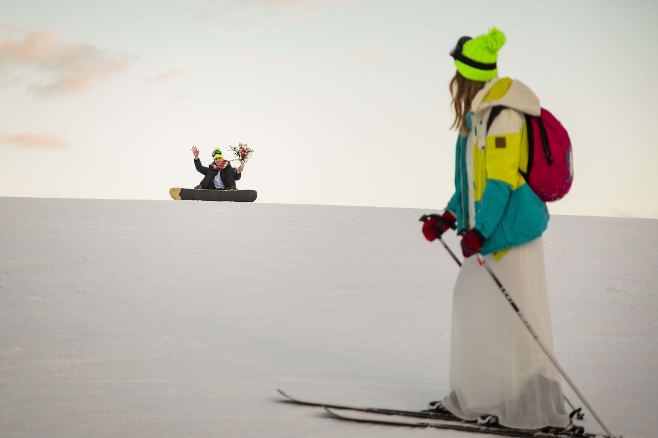 Aj było zimno! Aj mieliśmy tłumy gapiów. Aj pogoda płatała figle. Ale wiecie co? Udało się! 🙂 Po ponad 3 godzinnym oczekiwaniu w samochodzie pod stokiem, aż przejdzie burza śnieżna, dostrzegliśmy szansę na przejaśnienie. Ochoczo wpadliśmy na stok i wjechaliśmy na samą górę. Wtedy to wyszło nawet piękne słońce. Warunki idealne, pomyślałam! Lecimy z zimową sesją. Zobaczcie co poczyniłam:)